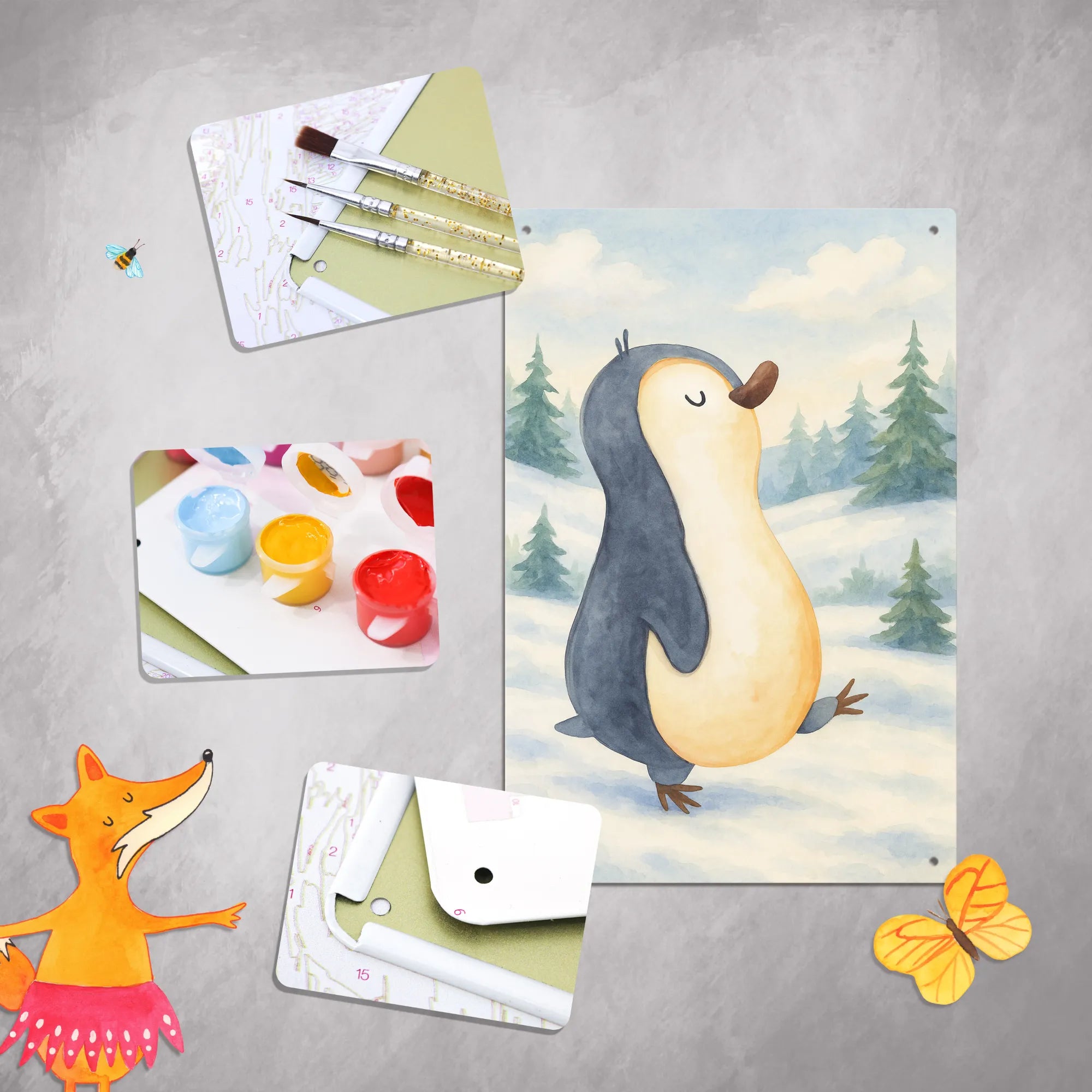 Metalowy szyld do malowania po numerach Pingwin maszerować Design Pinguin