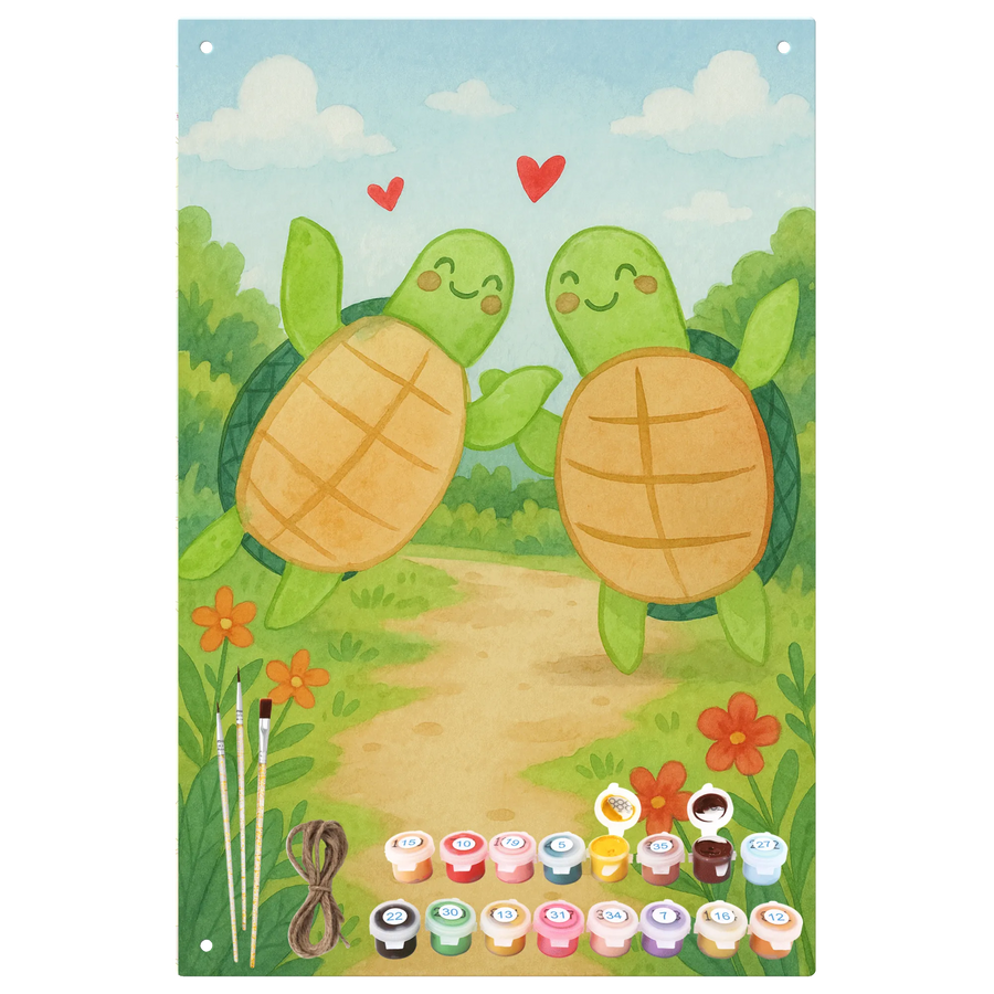 Metalowy szyld do malowania po numerach żółwie para Design Miłość, partner, przyjaciel, przyjaciółka, mąż, żona, wesele, zaręczyny, prośba o rękę, prezent miłosny, rocznica, dzień ślubu