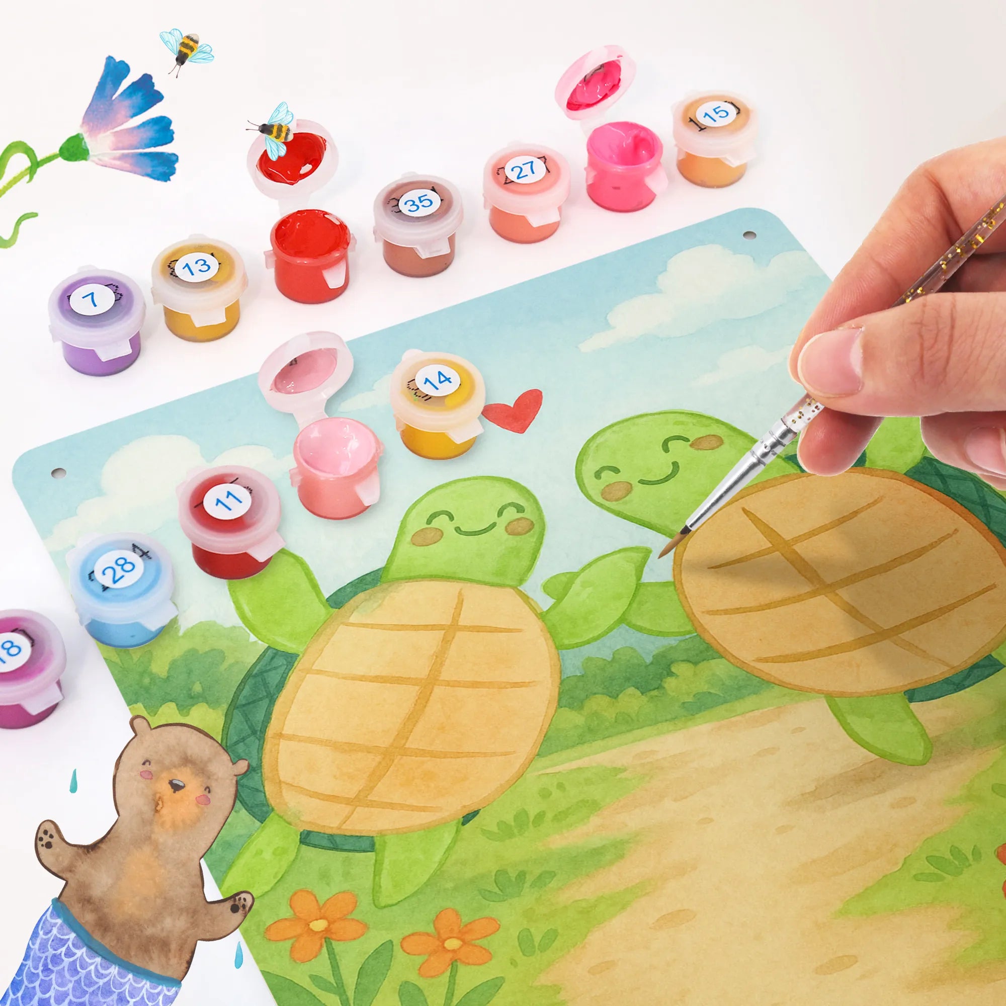 Metalowy szyld do malowania po numerach żółwie para Design – Mr. & Mrs. Panda
