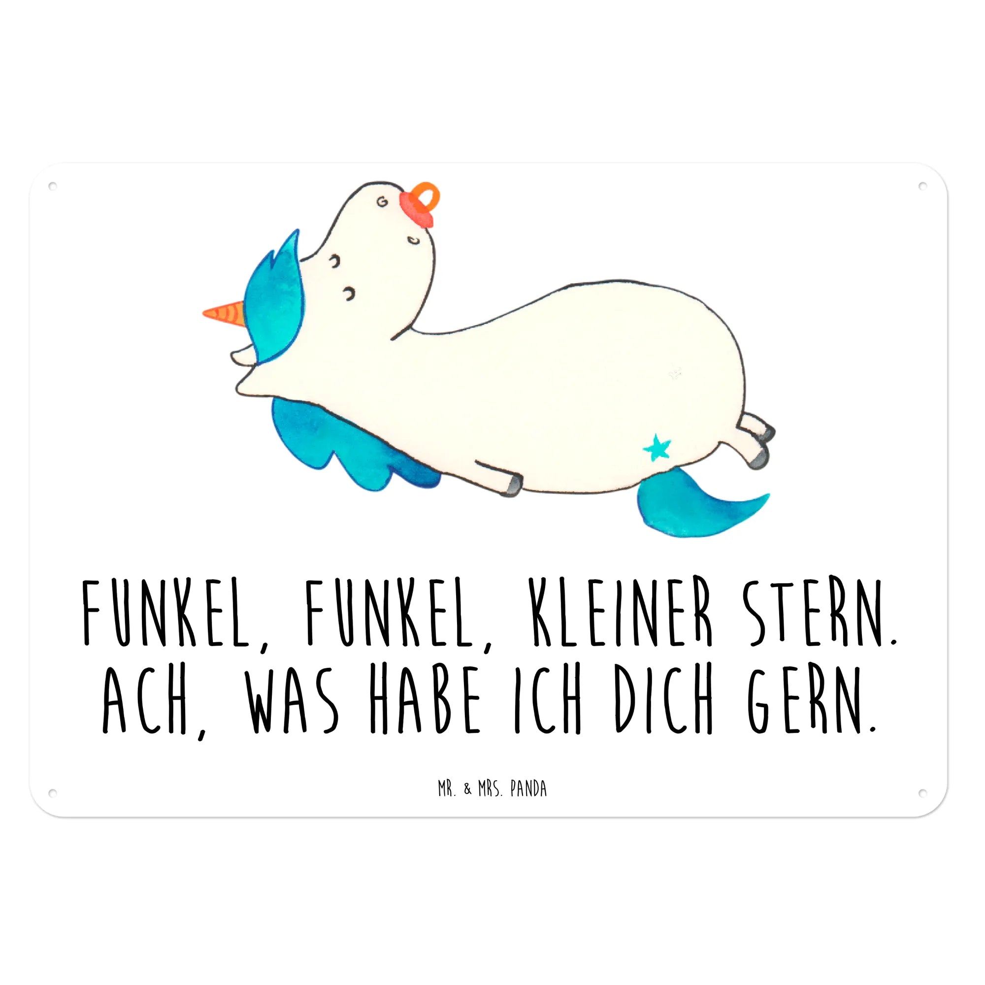 Entdecke das zauberhafte Blechschild aus der liebevoll gestalteten Einhorn-Kollektion von Mr. & Mrs. Panda! Dieses wunderschöne und edle Blechschild ist ein absolutes Must-Have für alle Einhorn-Fans und eignet sich perfekt als Geschenkschild zur Geburt oder zum Geburtstag eines kleinen Wunders. Es zeigt ein süßes Einhorn-Baby mit einem Schnuller, das friedlich schläft. Jeder, der die Magie der Einhörner liebt, wird von diesem Design verzaubert sein!