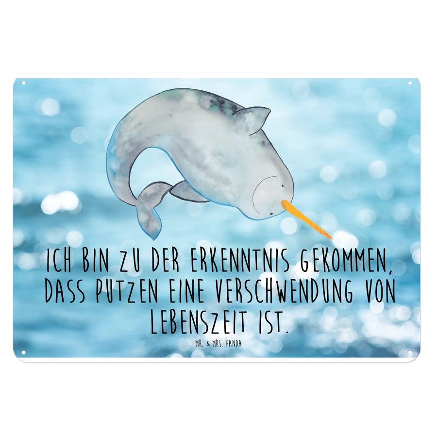 Das edle Blechschild mit dem bezaubernden Narwal-Motiv aus der Meerestiere-Kollektion von Mr. & Mrs. Panda ist das perfekte Geschenk für alle, die das Meer lieben.