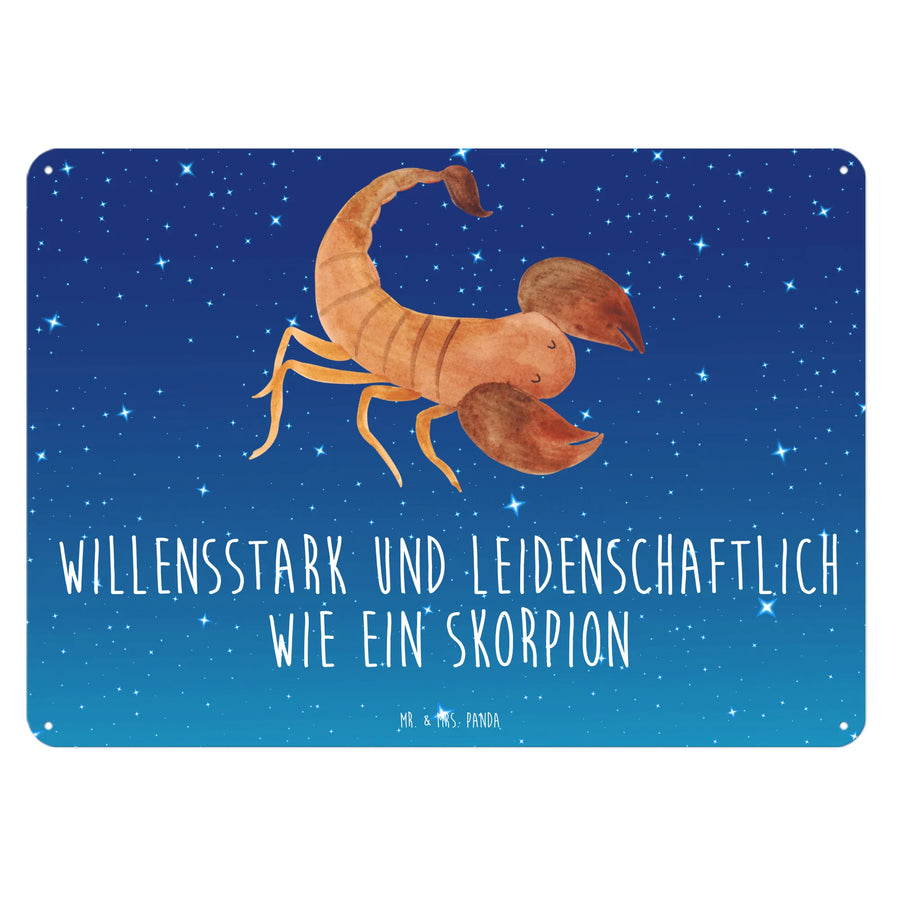 Wenn du auf der Suche nach einem besonderen Geschenk für Skorpion-Fans bist, dann ist unser edles Blechschild mit dem Motiv "Sternzeichen Skorpion" von Mr. & Mrs. Panda genau das Richtige für dich! Mit liebevollen Details und dem Slogan "Willensstark und leidenschaftlich wie ein Skorpion" ist dieses Schild das perfekte Accessoire, um die Wände eines jeden Skorpion-Geborenen zu verschönern.