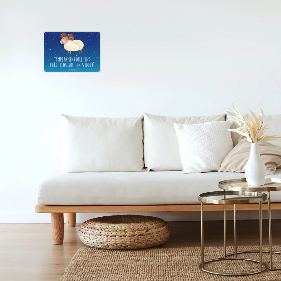 Entdecke das bezaubernde Blechschild im Motiv Sternzeichen Widder von Mr. & Mrs. Panda! Dieses edle und langlebige Schild bringt das temperamentvolle und furchtlose Wesen des Widders direkt in dein Zuhause.