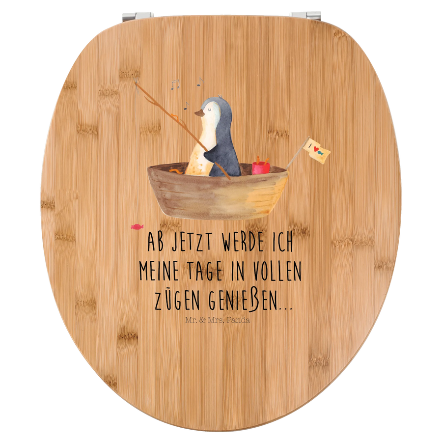 Motiv WC deska sedesowa pingwin łódka wędkarska - z napisem - Bambus - Przezroczysty