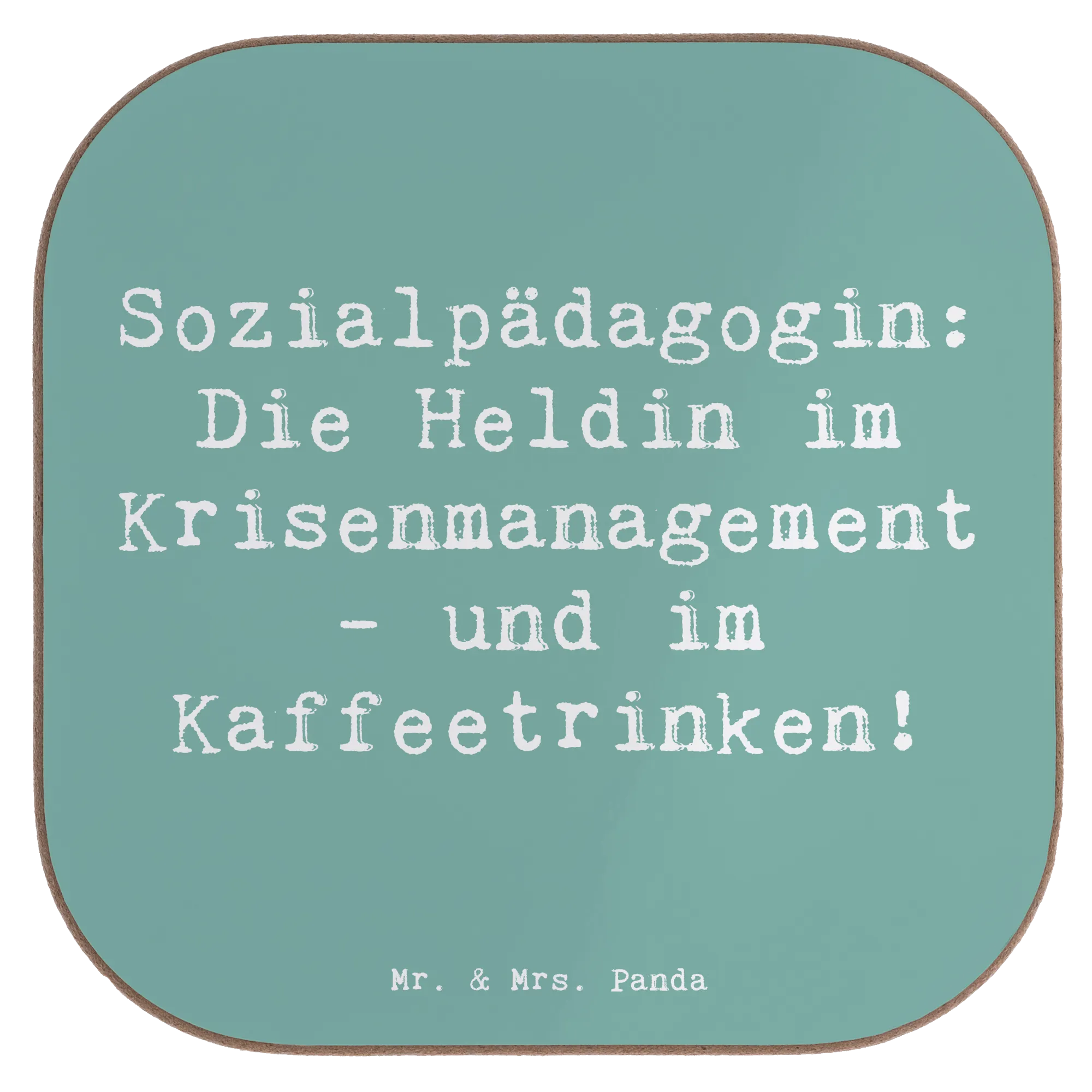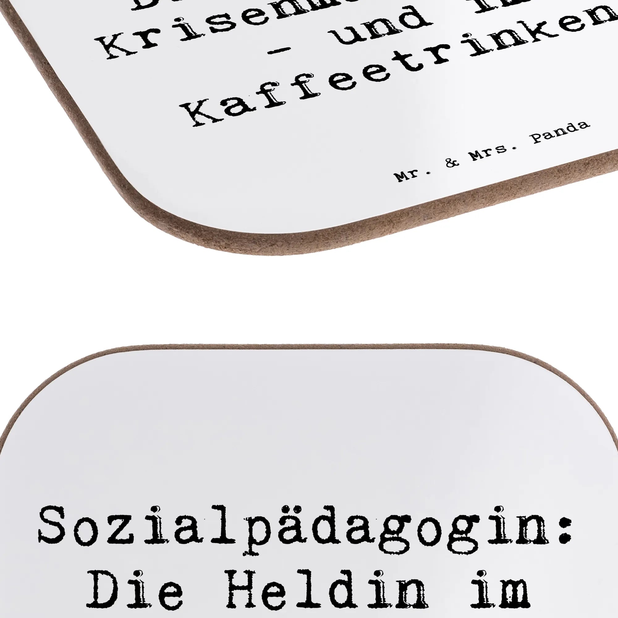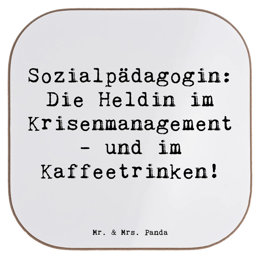 Untersetzer Spruch Sozialpädagogin: Die Heldin im Krisenmanagement - und im Kaffeetrinken! - Weiß