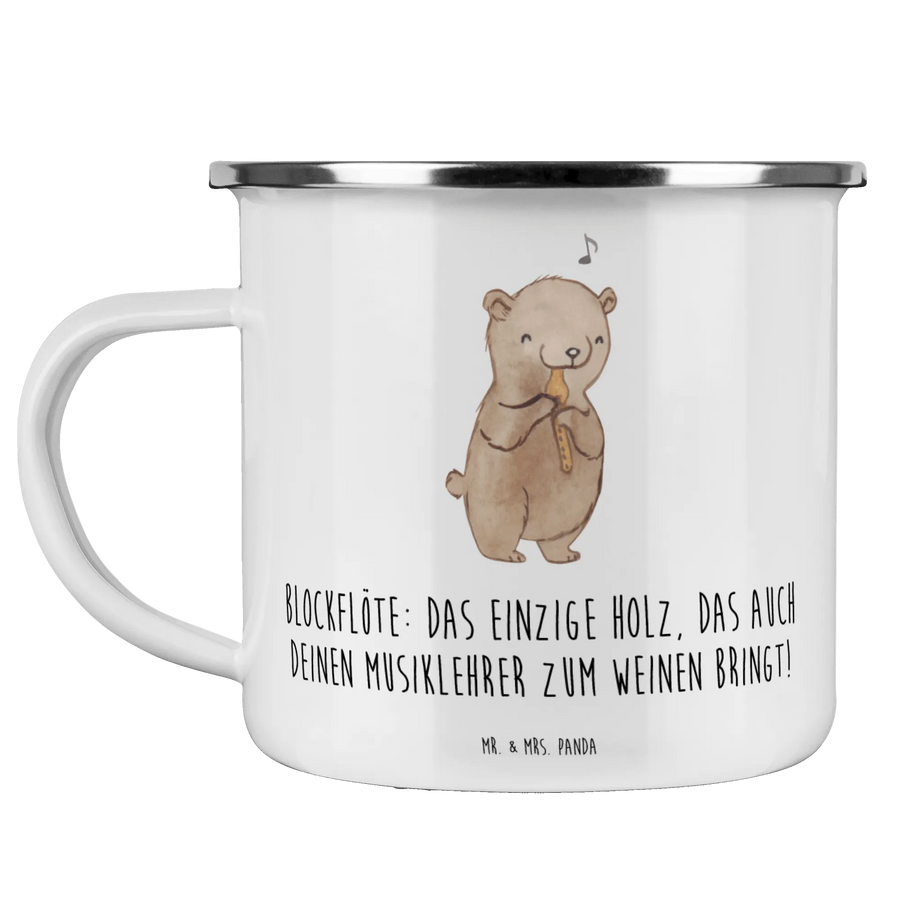 Die wunderschöne Camping Emaille Tasse von Mr. & Mrs. Panda mit dem liebevoll gestalteten Blockflöten-Motiv ist der perfekte Begleiter für jeden Abenteuerliebhaber und Musikenthusiasten!