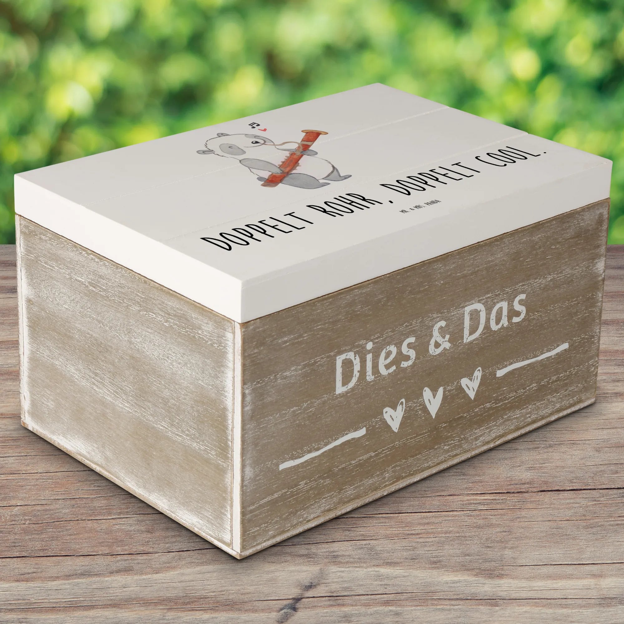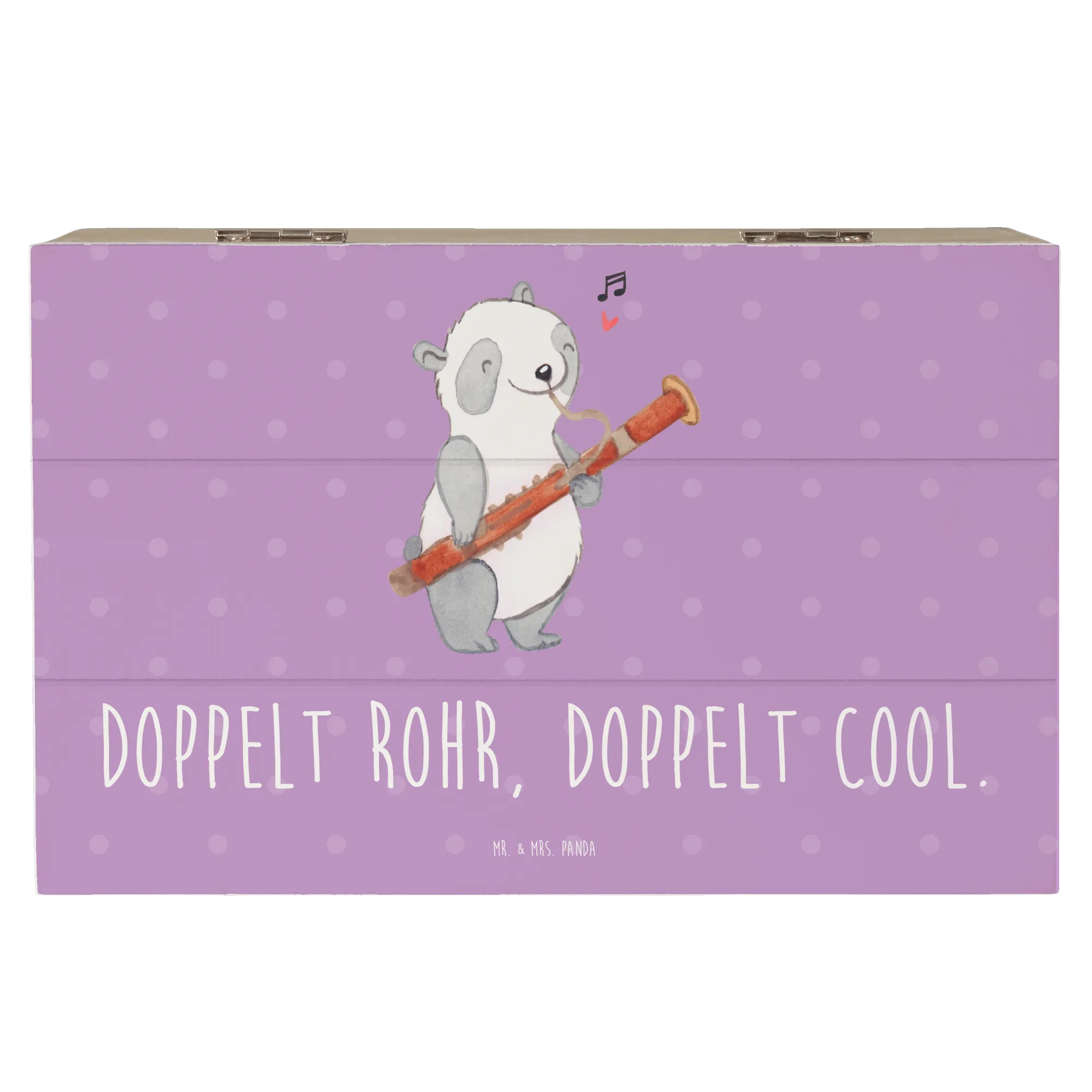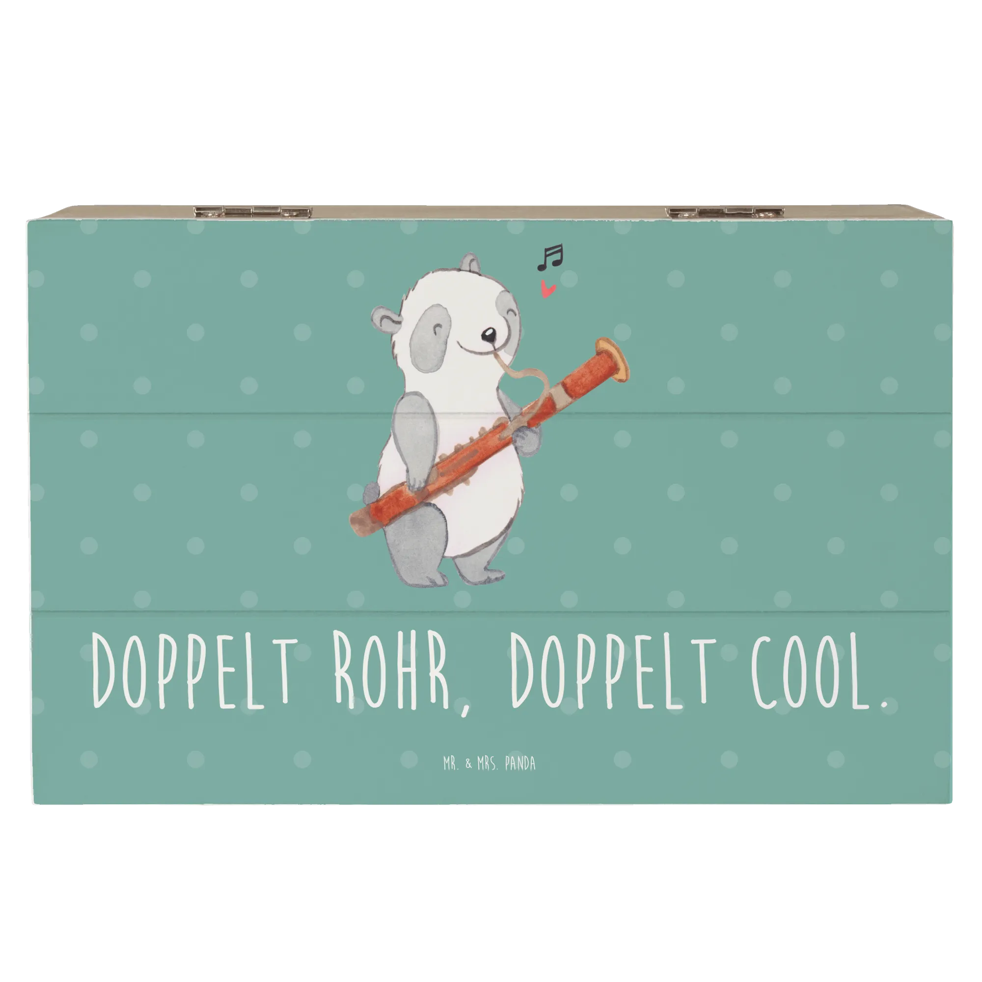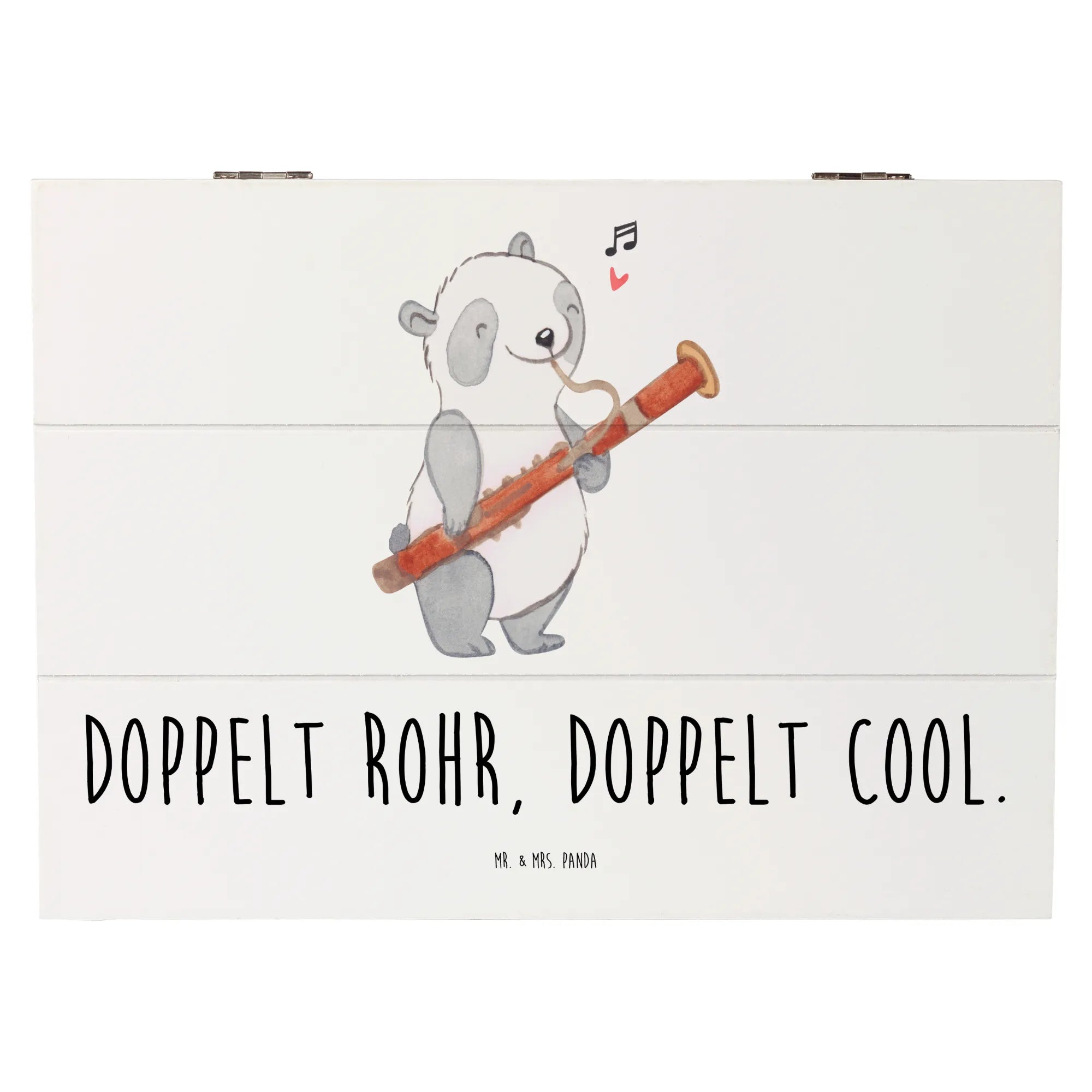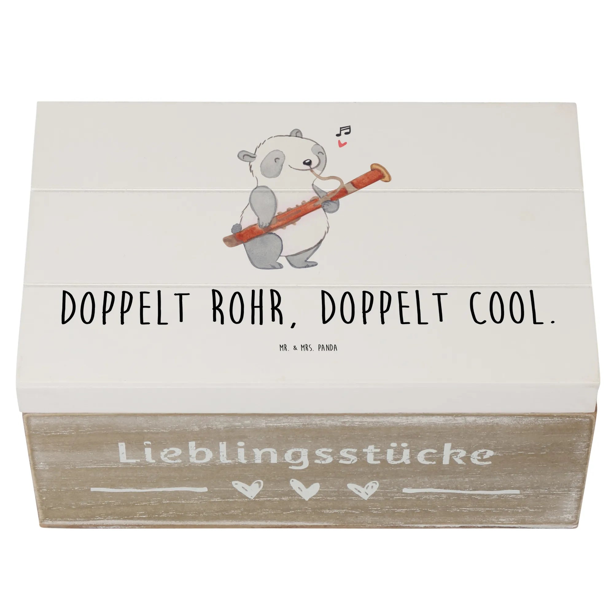 Die Holzkiste von Mr. & Mrs. Panda mit dem zauberhaften Fagott-Motiv aus der Kollektion 'Musizieren & Instrumente' ist das perfekte Geschenk für Musikliebhaber, ob jung oder alt.