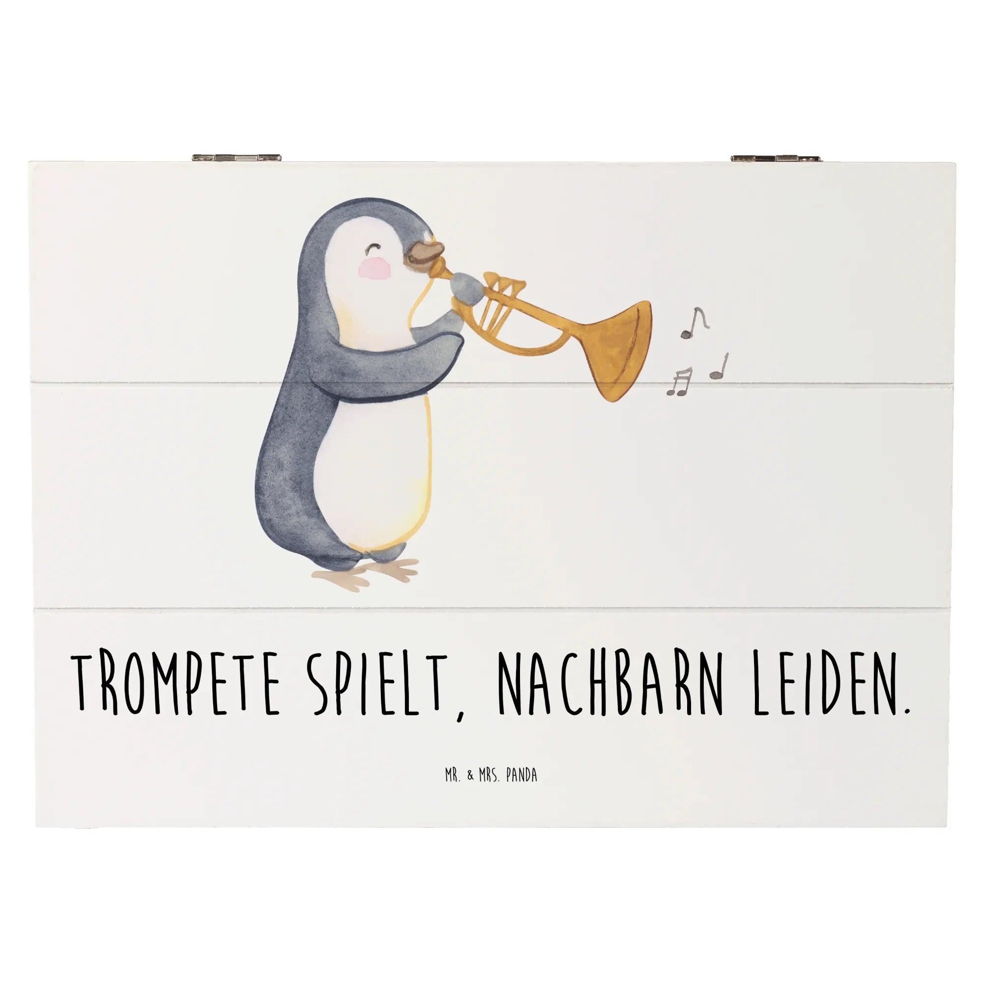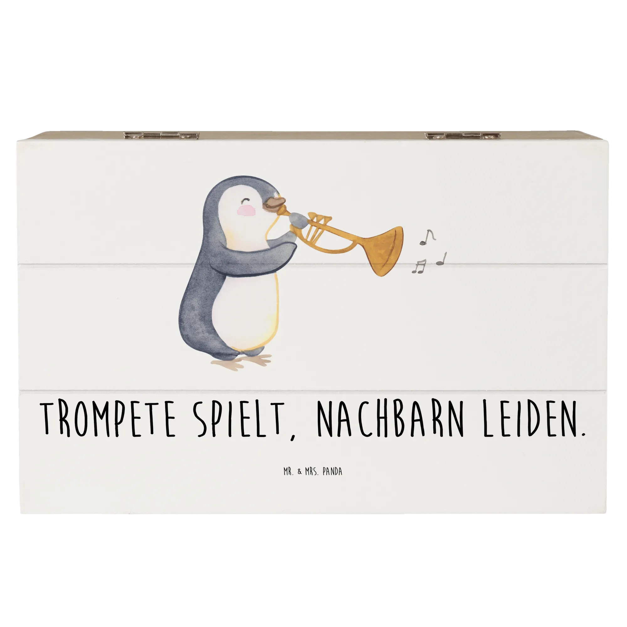 Die wunderschöne Holzkiste von Mr. & Mrs. Panda mit dem aufregenden Trompetenmotiv ist das perfekte Geschenk für alle Musikliebhaber und angehende Musiker!