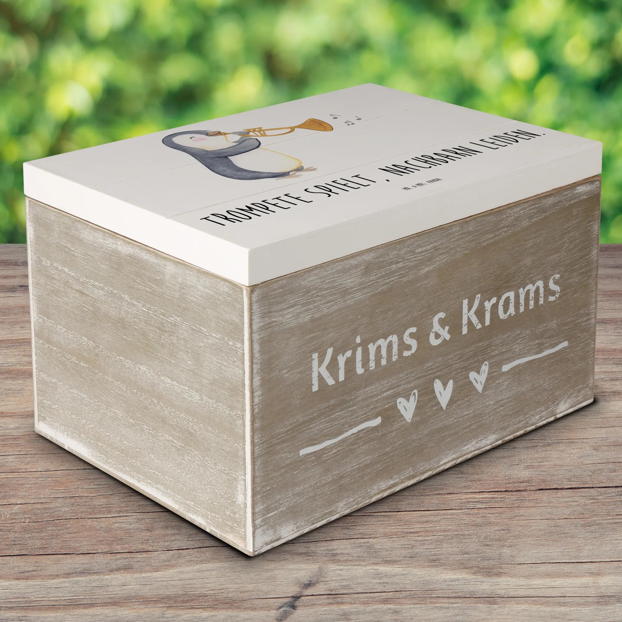Die entzückende Holzkiste von Mr. & Mrs. Panda mit dem fröhlichen Trompetenmotiv ist der ideale Begleiter für alle Musiker und Musikliebhaber. Egal, ob du selbst ein leidenschaftlicher Trompeter bist oder einen besonderen Menschen in deinem Leben hast, der die Musik liebt - diese Kiste ist ein liebevolles Geschenk.