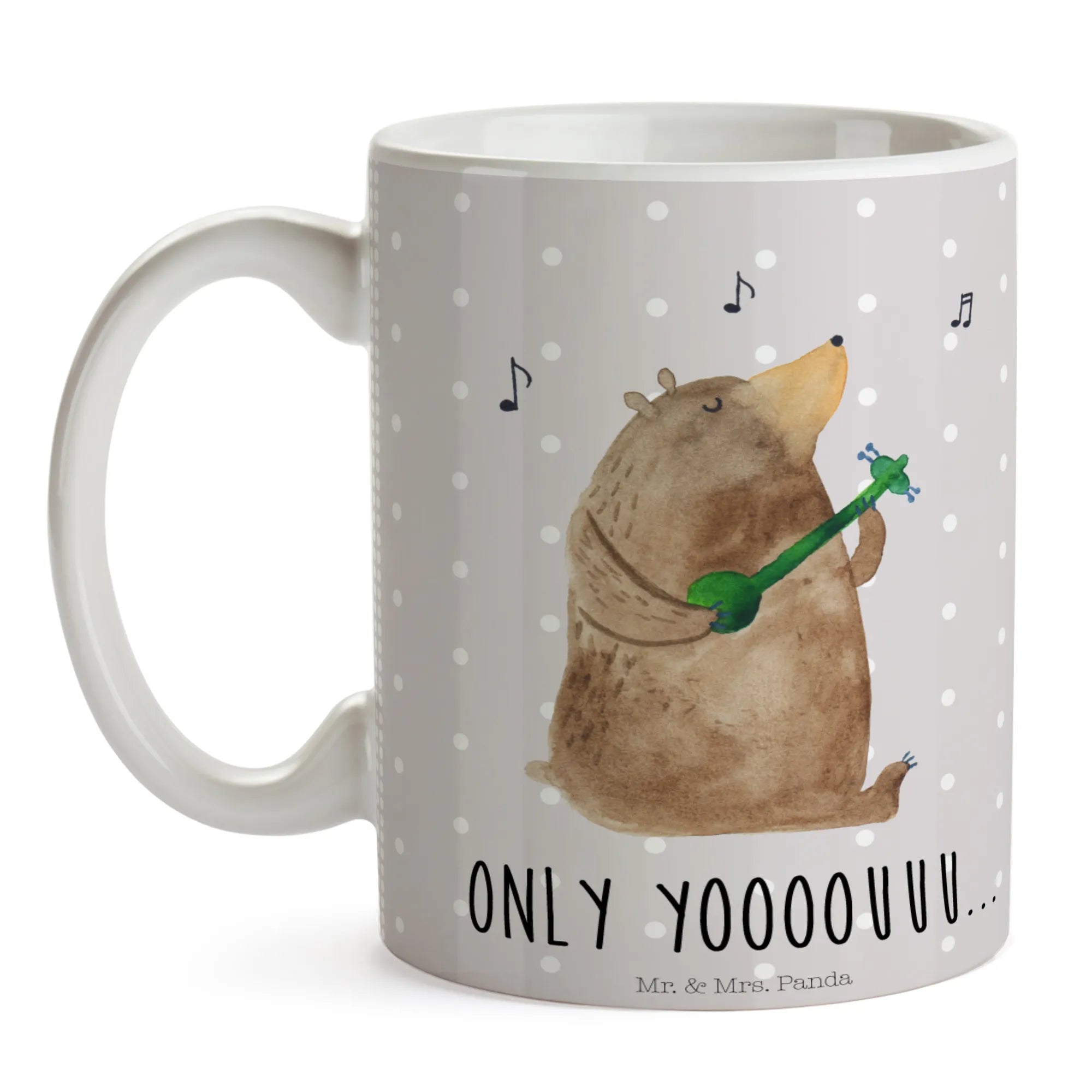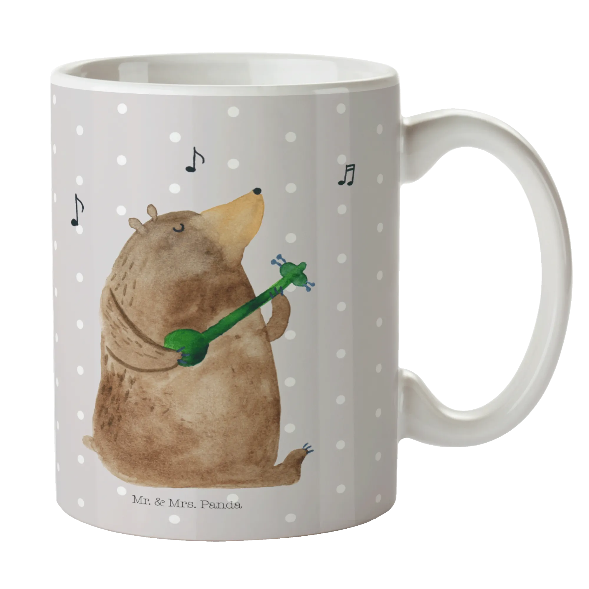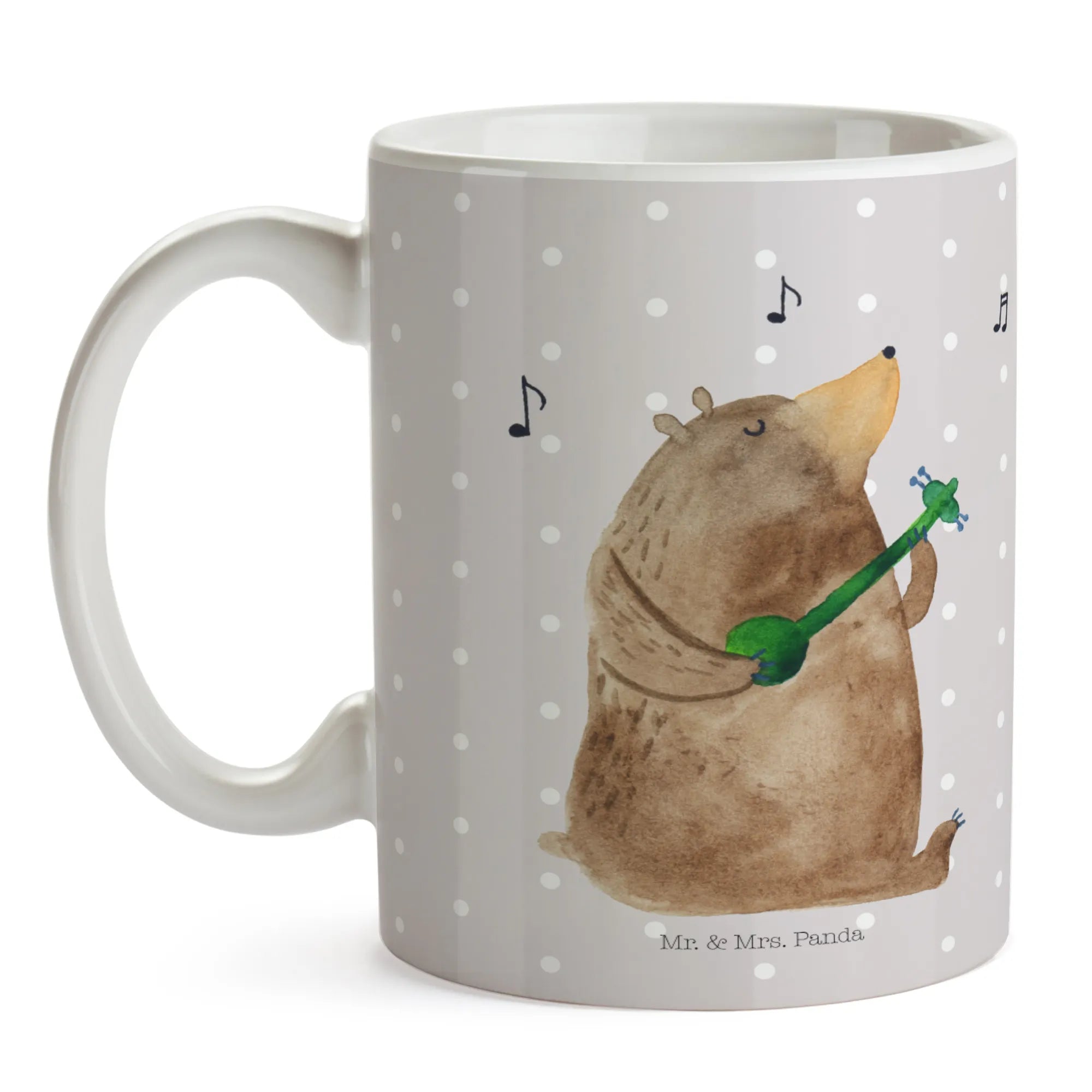 Kubek niedźwiedź Gitara - z napisem - Ceramika - Pastelowy szary