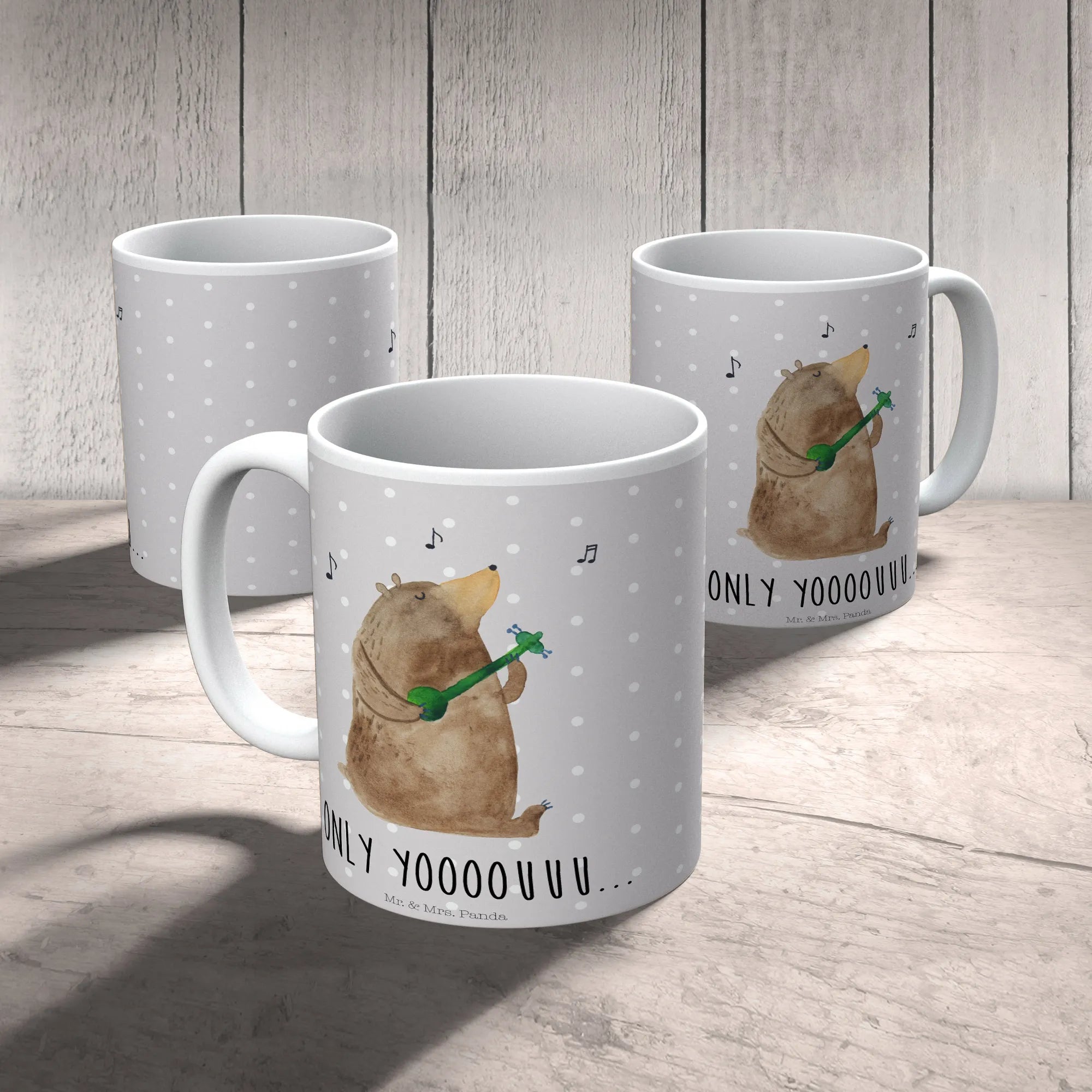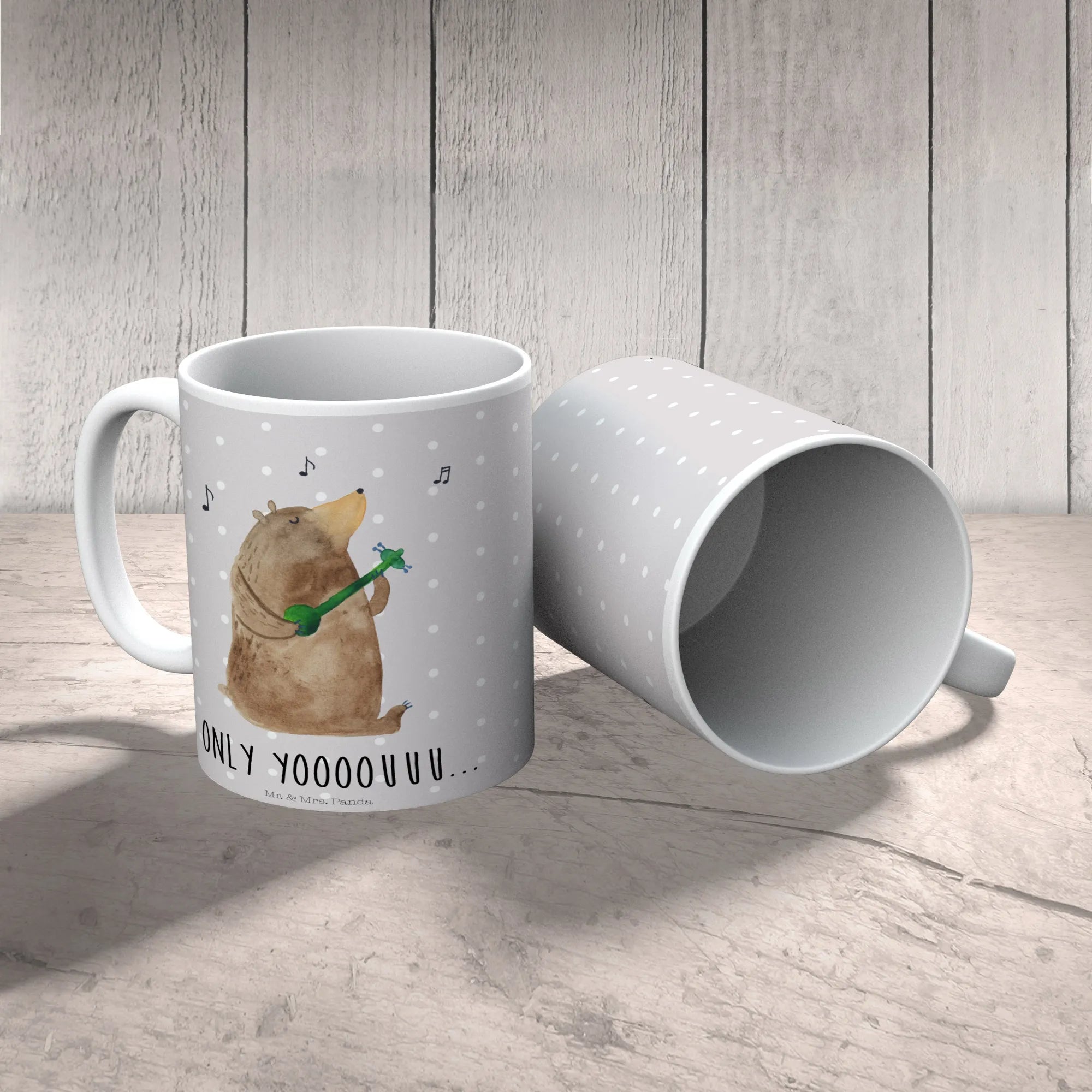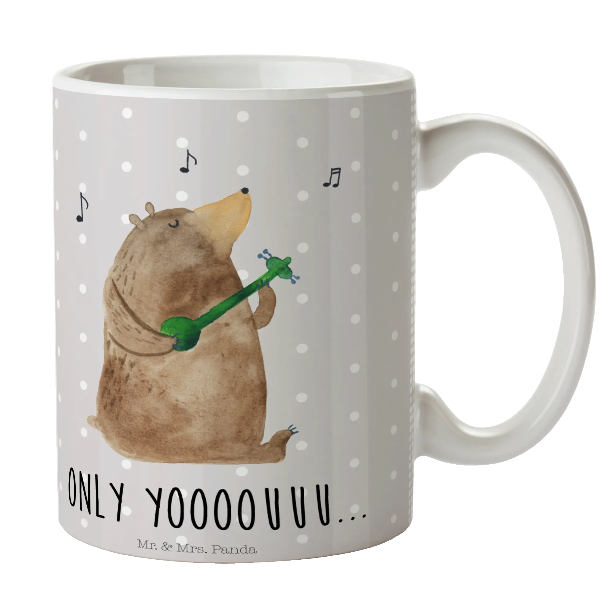 Kubek niedźwiedź Gitara - z napisem - Ceramika - Pastelowy szary
