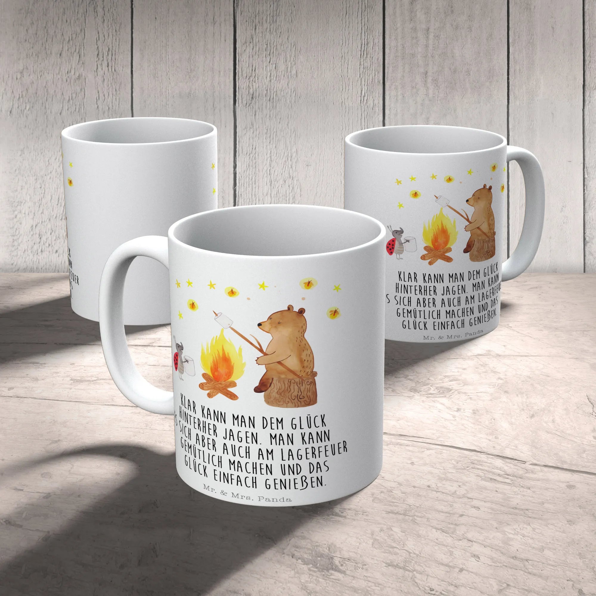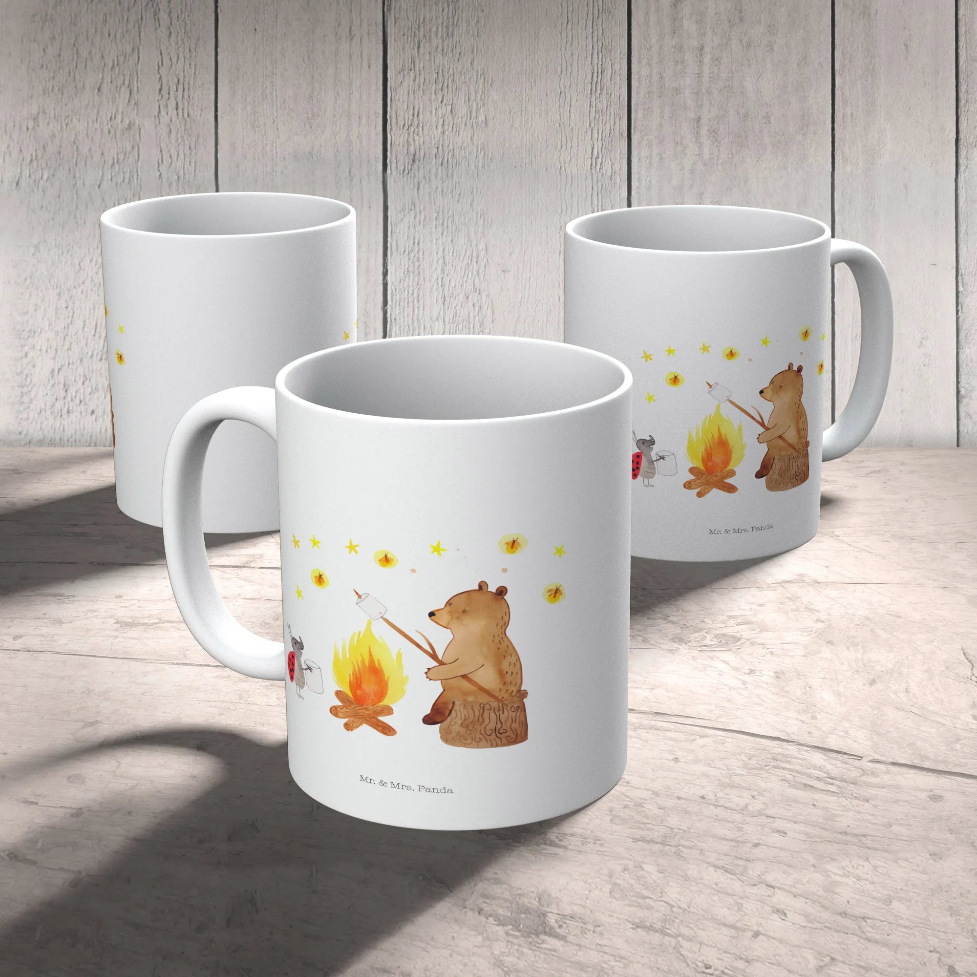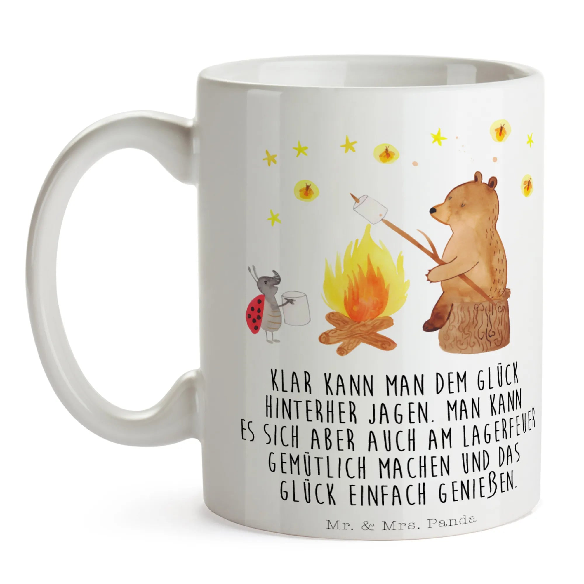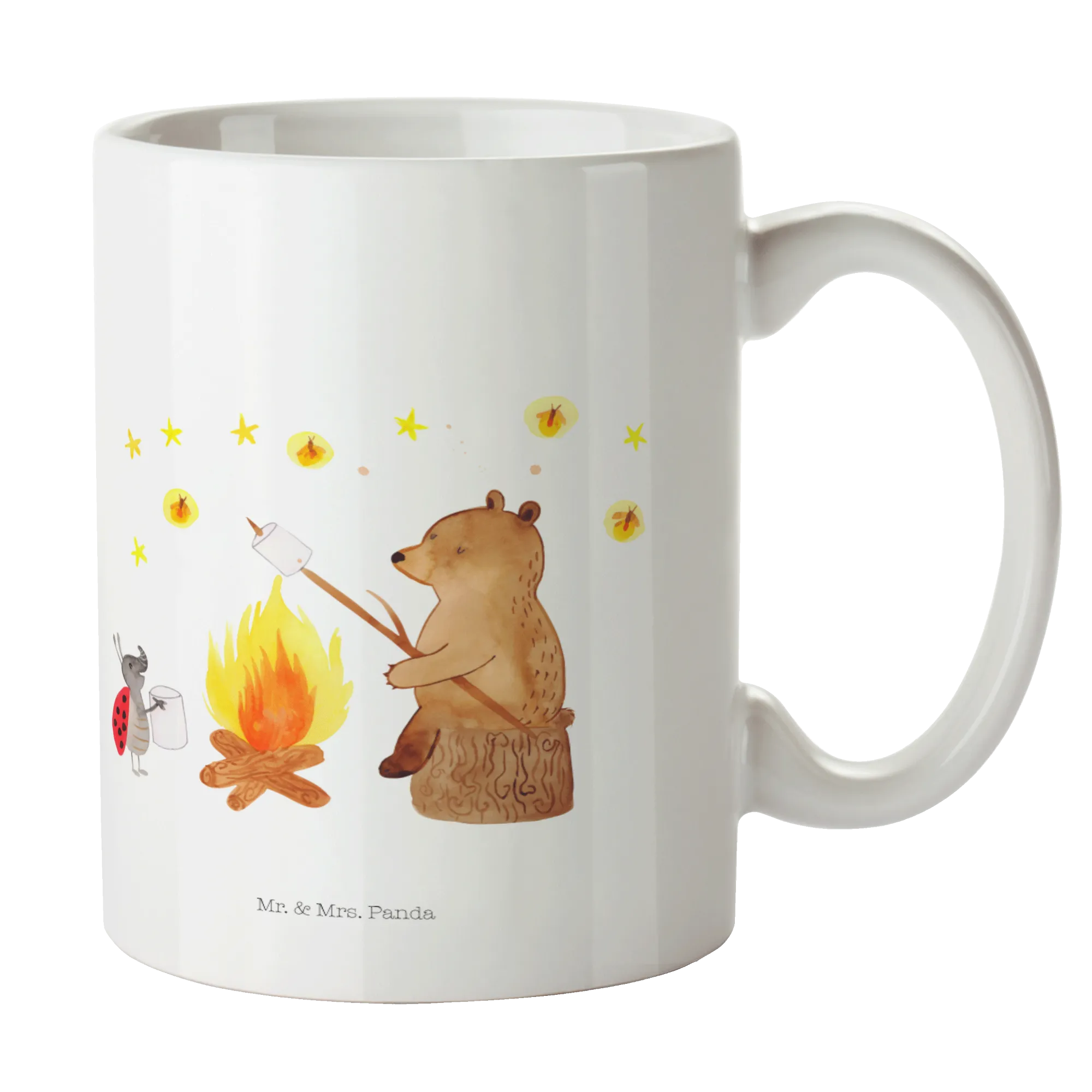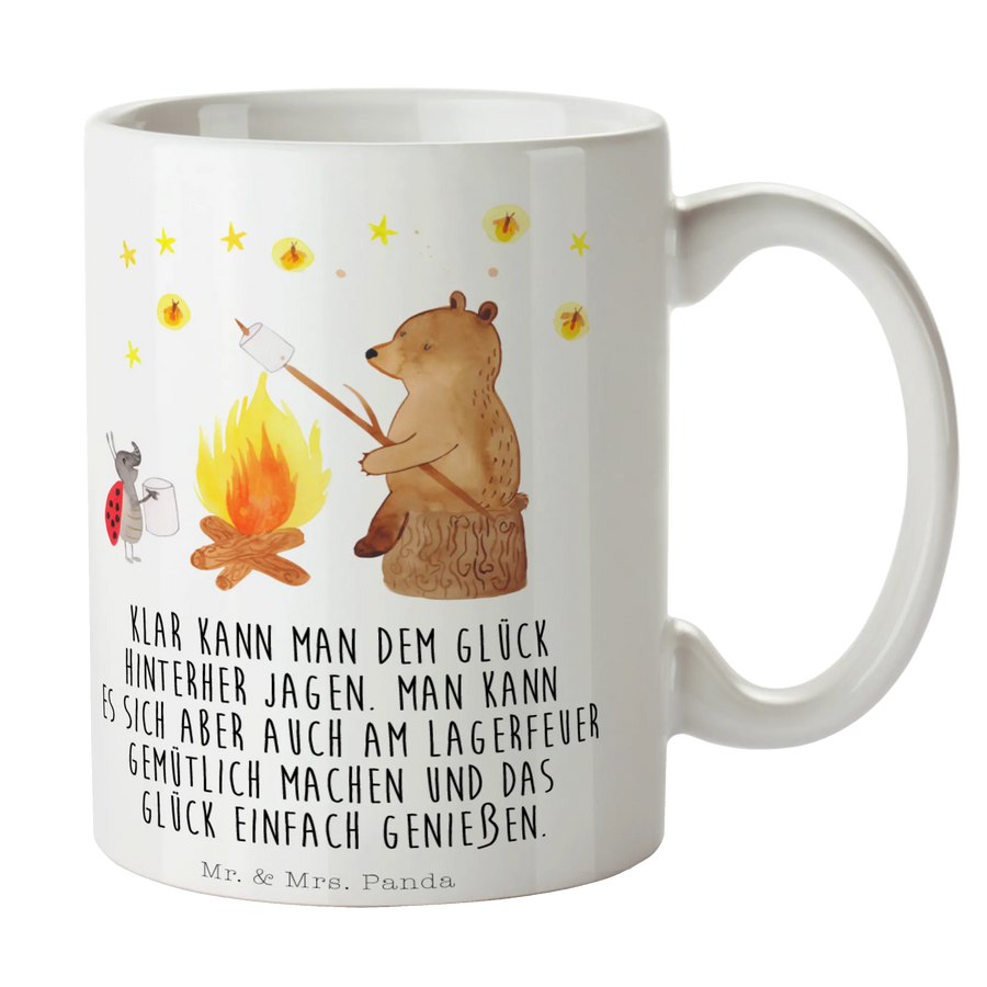 Kubek Niedźwiedź i biedronka przy ognisku - z napisem - Ceramika - biały