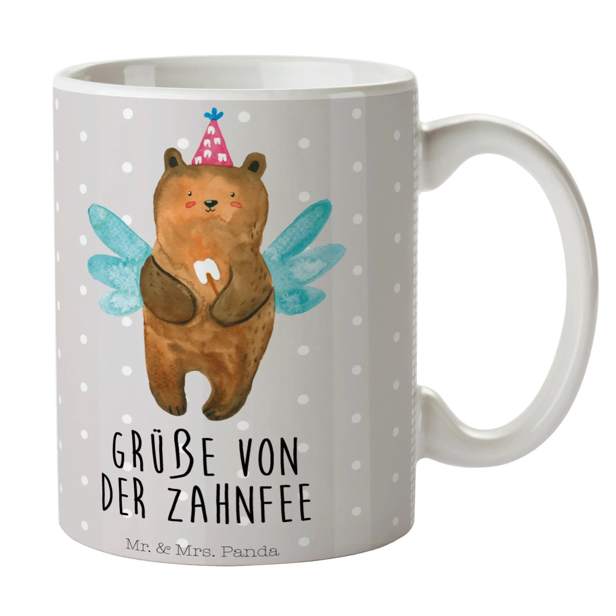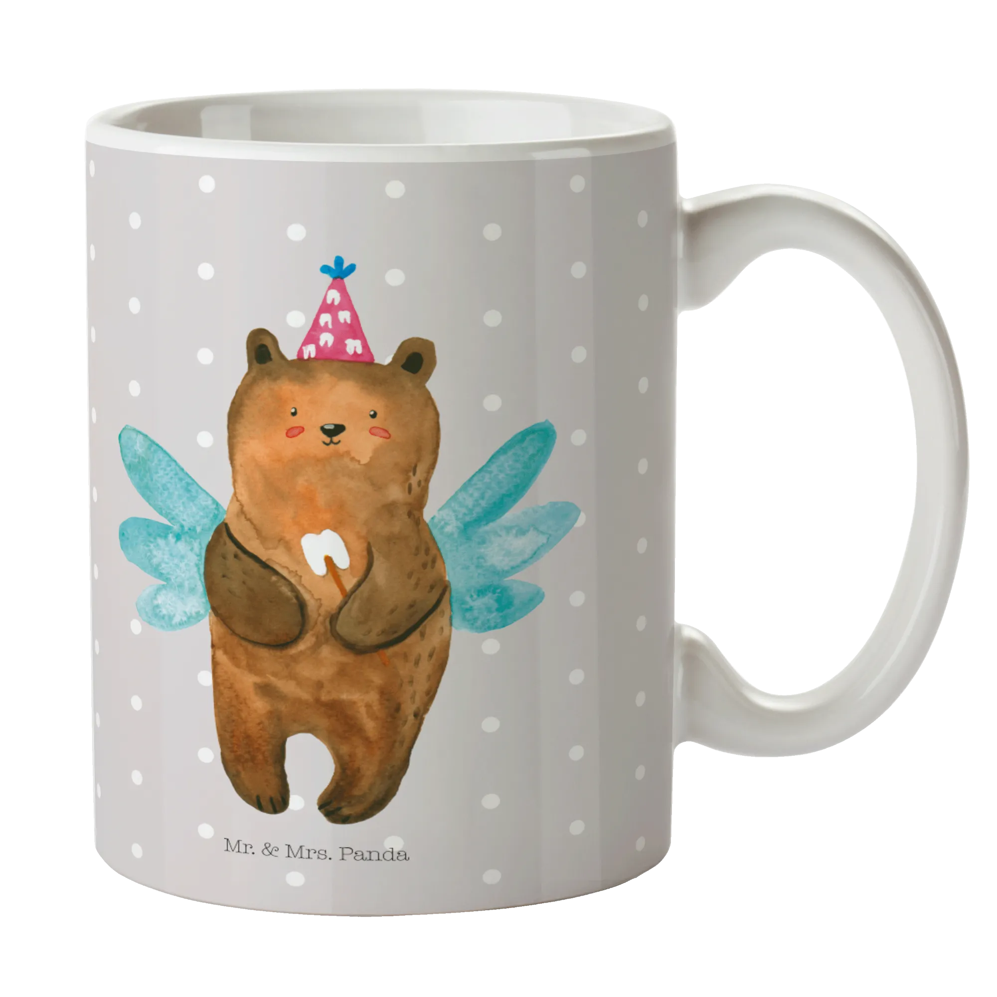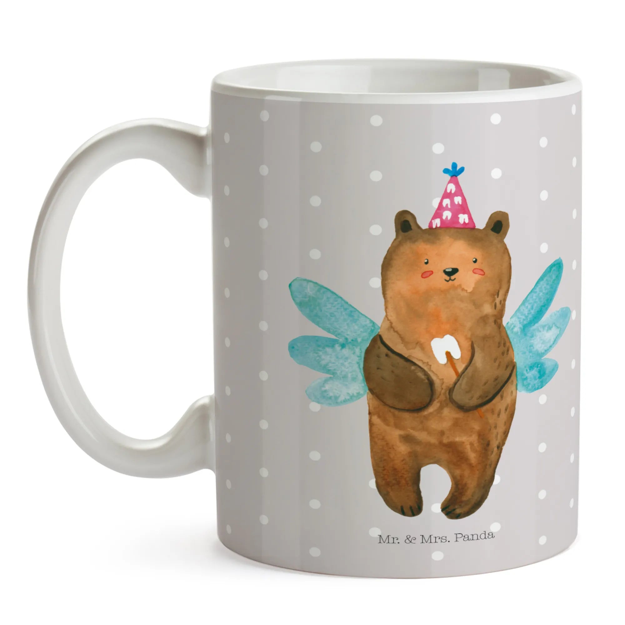 Kubek niedźwiedź Wróżka zębów - z napisem - Ceramika - Szary Pastel