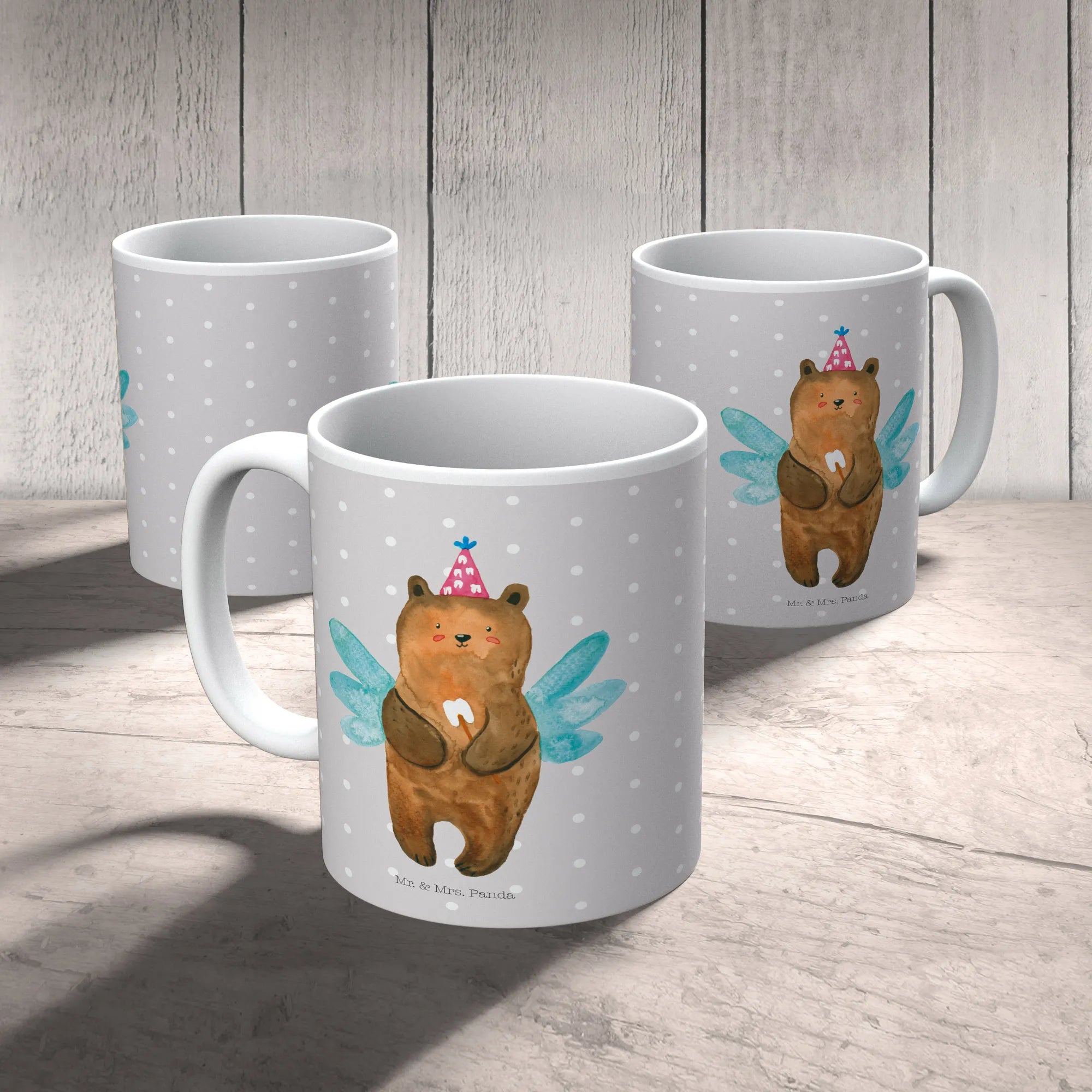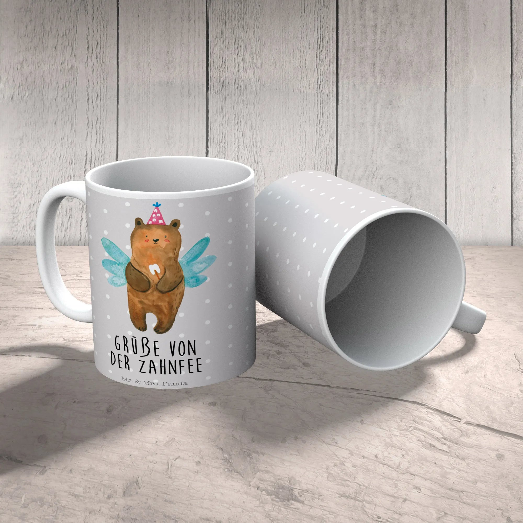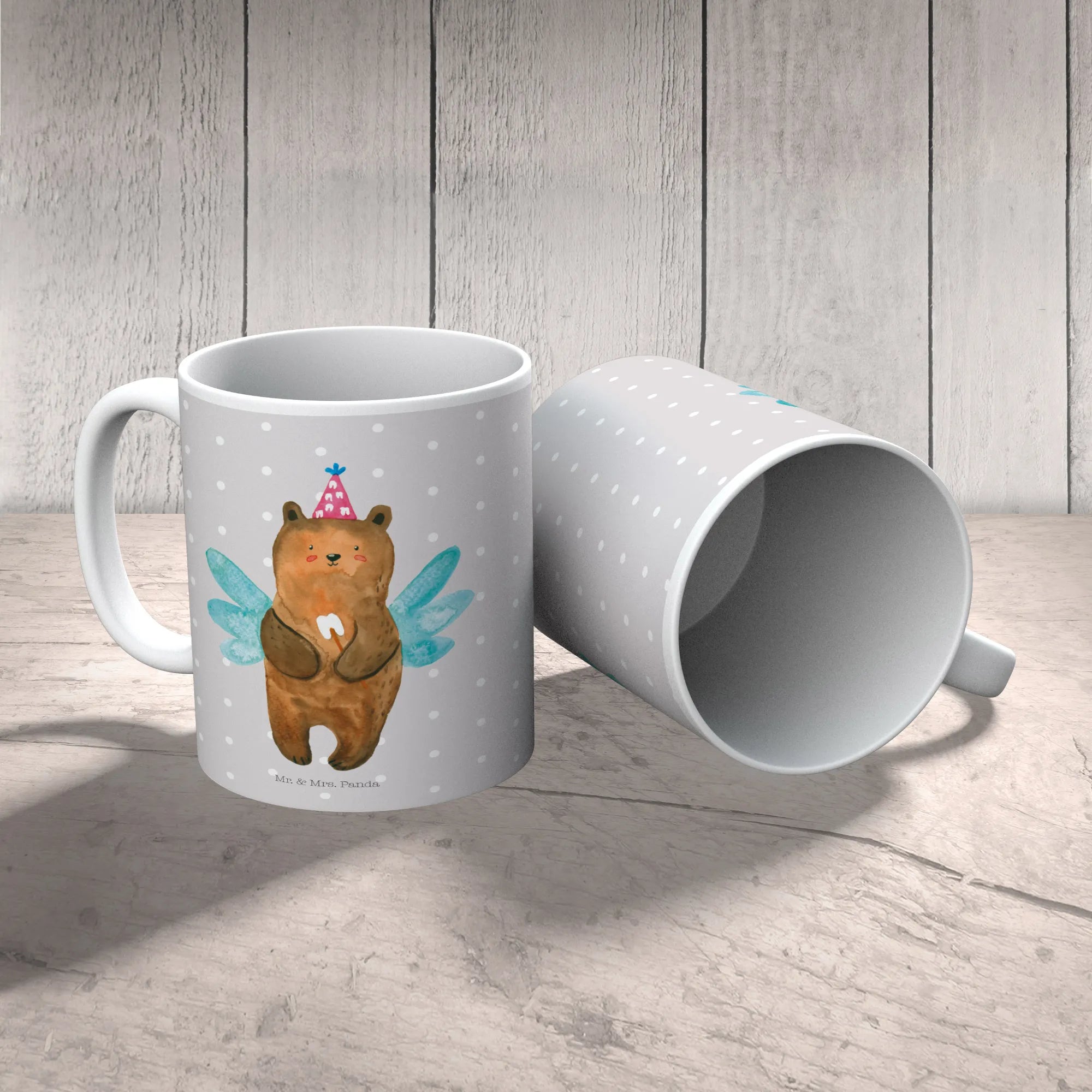 Kubek niedźwiedź Wróżka zębów - z napisem - Ceramika - Szary Pastel