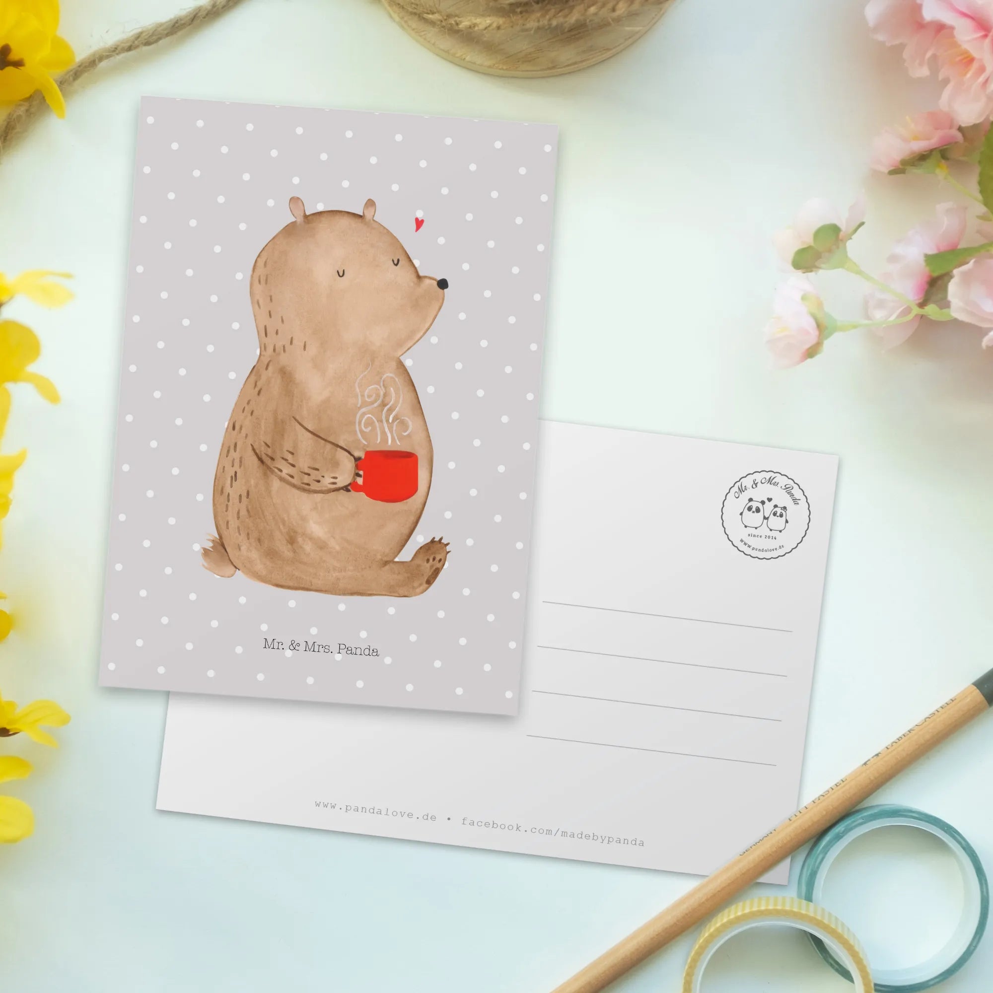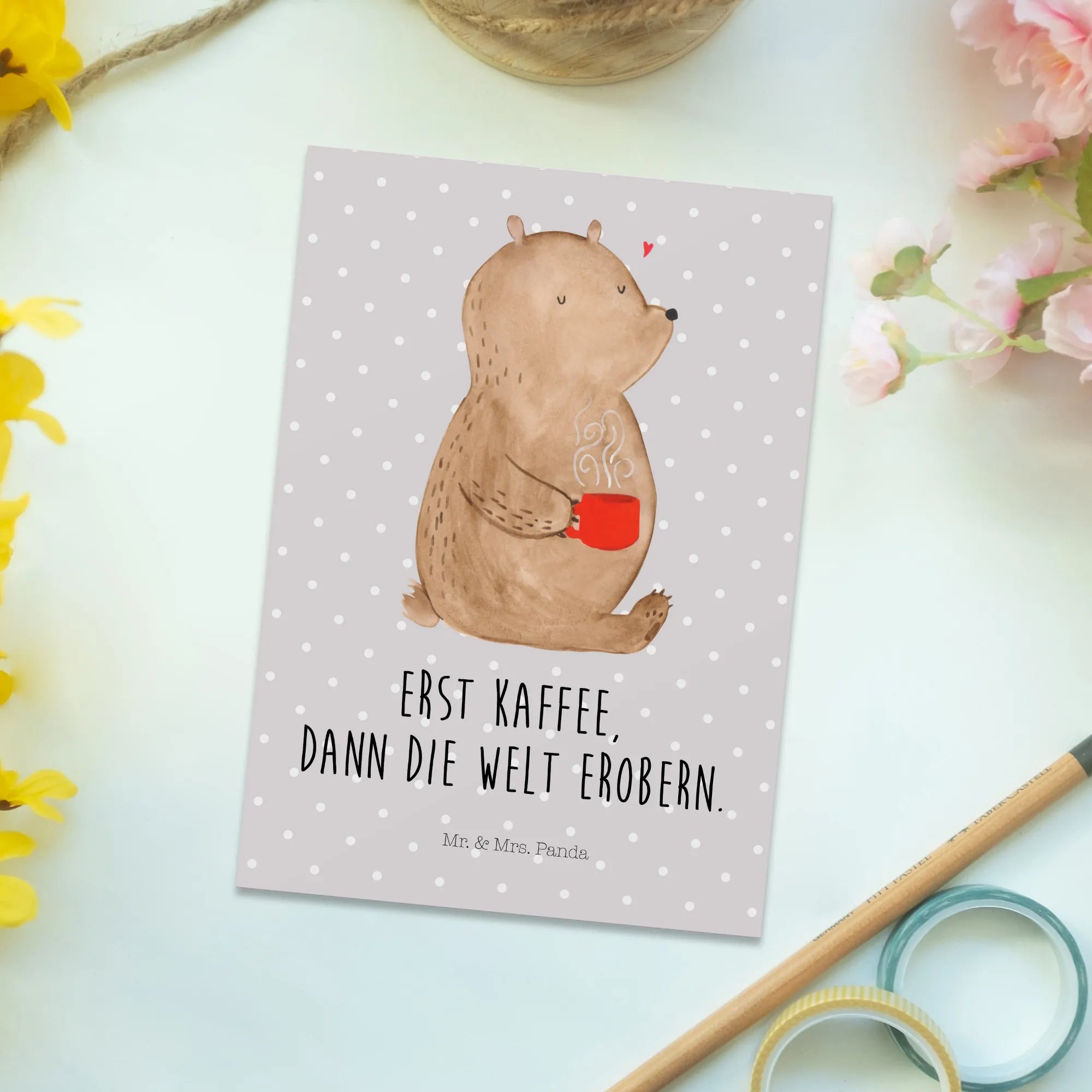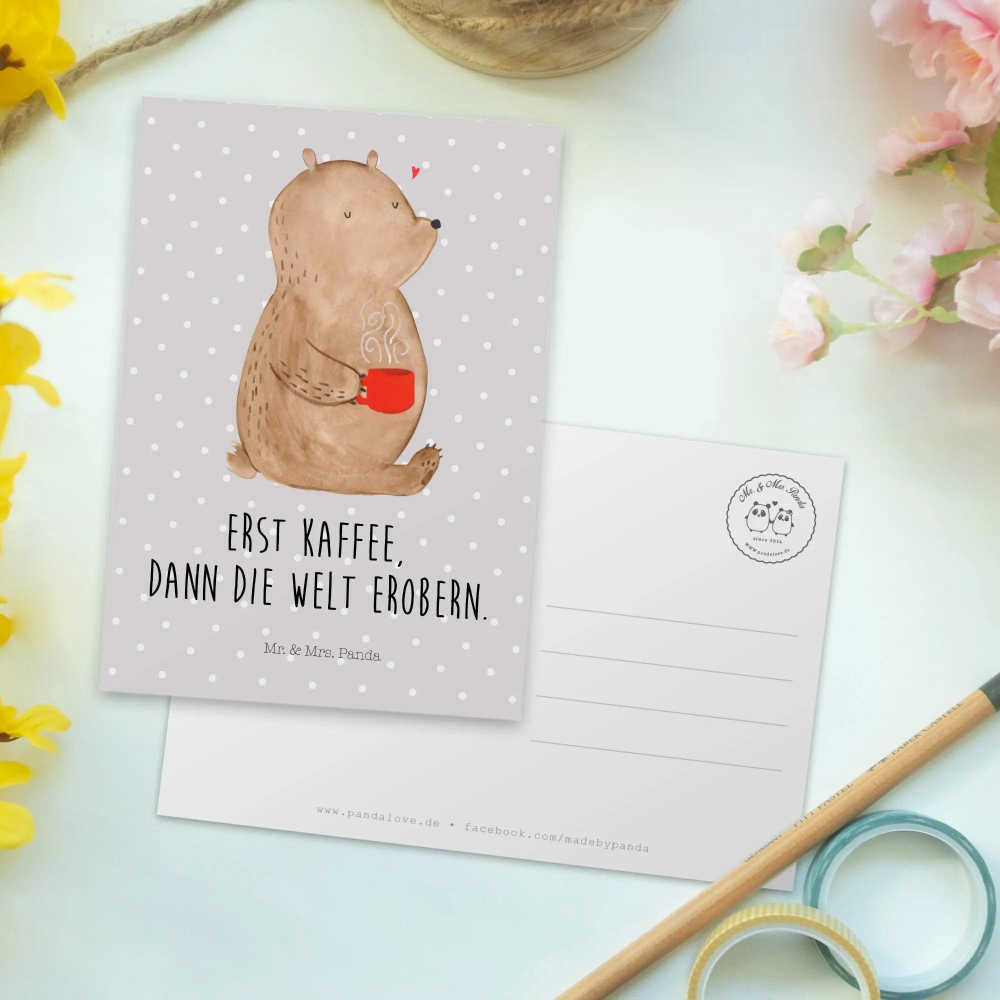 Pocztówka Niedźwiedź kawa - z napisem - biały