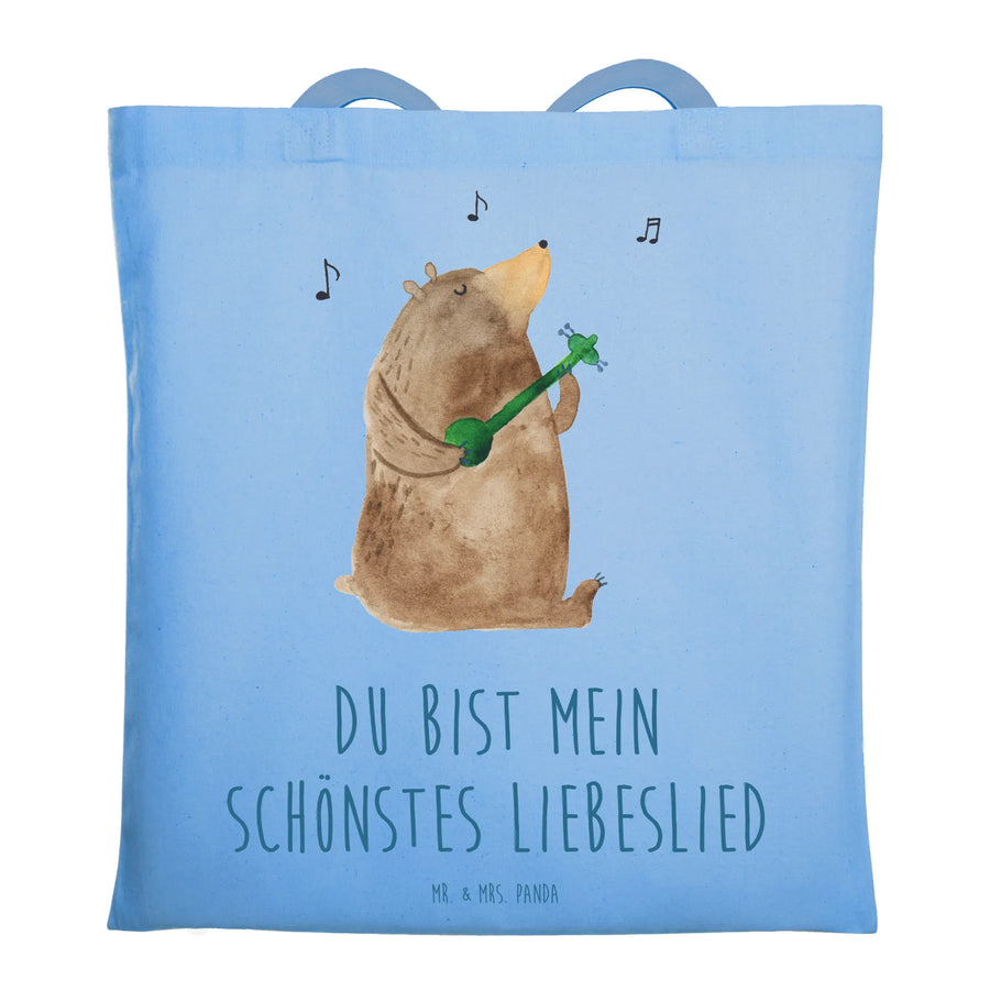 Mr. & Mrs. Panda Tragetasche „Bär Lied“ – ein kleines Liebeslied für den Alltag. Unser süßer Bär spielt auf seiner Gitarre und schenkt dir mit dem Spruch „Du bist mein schönstes Liebeslied“ eine liebevolle Botschaft, die perfekt als Geschenk für Freundin, Frau oder Partner passt. Diese Einkaufstasche vereint handgezeichnetes Design aus der Bär Kollektion mit praktischer Funktionalität.