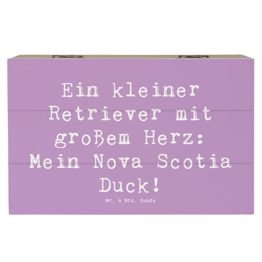 Entdecke die zauberhafte Holzkiste mit dem Motiv "Nova Scotia Duck" aus der Hunderassen-Kollektion von Mr. & Mrs. Panda! Diese wunderschöne Kiste ist nicht nur ein perfekter Aufbewahrungsort für all deine wertvollen Erinnerungen, sondern auch ein ganz besonderes Geschenk für alle Hundeliebhaber. Mit den liebevollen Illustrationen und dem charmanten Spruch "Ein kleiner Retriever mit großem Herz: Mein Nova Scotia Duck!" zaubert sie jedem ein Lächeln ins Gesicht.
