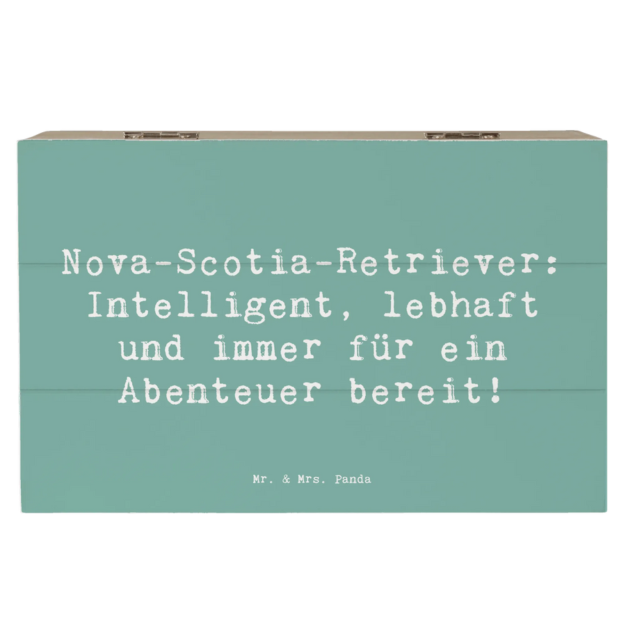 Die Kiste ist mit einem liebevollen Motiv des Nova Scotia Duck Tolling Retrievers versehen, der für seine Intelligenz und Lebensfreude bekannt ist. Der Slogan „Nova-Scotia-Retriever: Intelligent, lebhaft und immer für ein Abenteuer bereit!“ ziert die Kiste und bringt das wunderbare Wesen dieser Hunderasse perfekt zum Ausdruck.