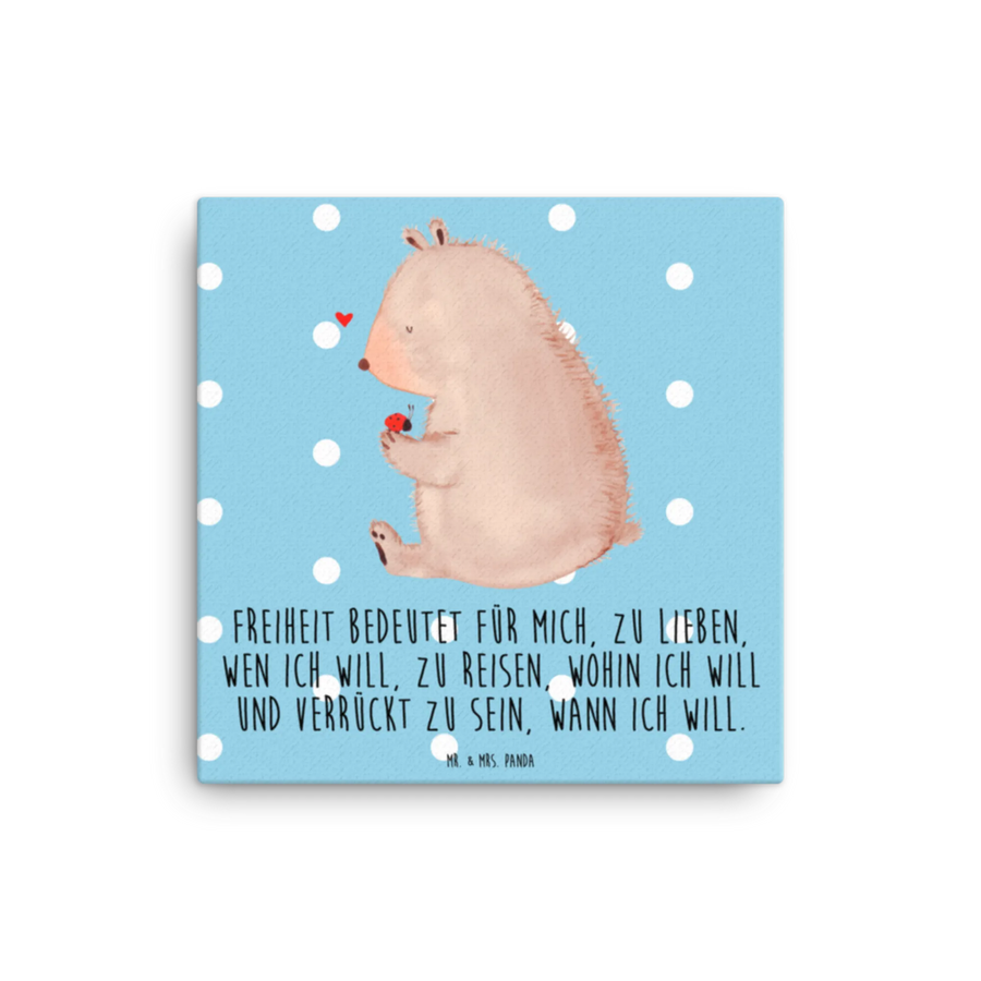 Leinwand Bild Bär Marienkäfer - 30 x 30 cm - mit Spruch - Blau Pastell