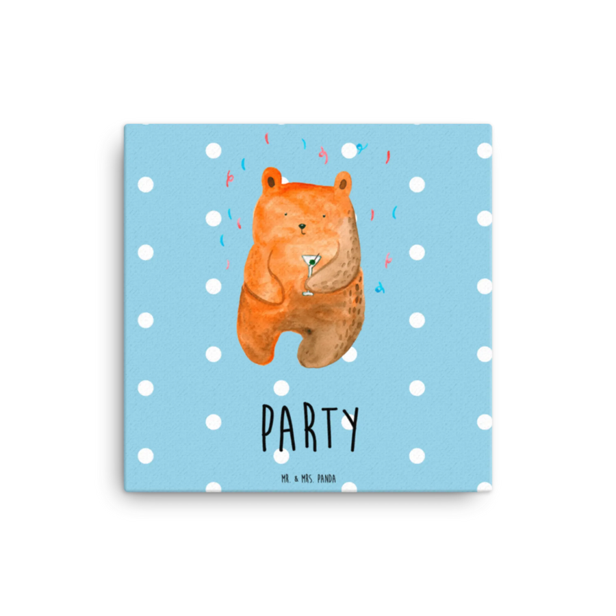 Leinwand Bild Bär Party - 40 x 40 cm - mit Spruch - Blau Pastell