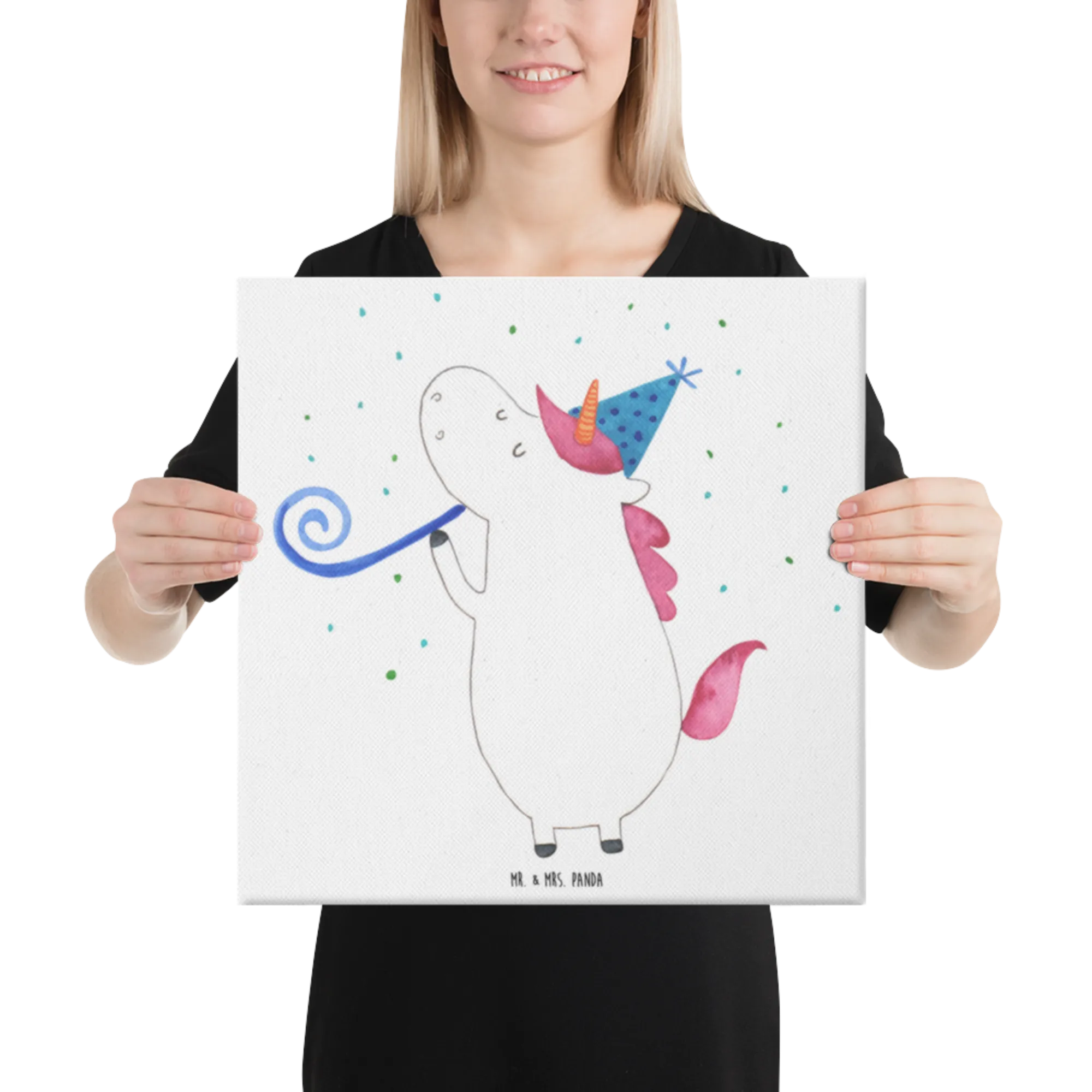 Leinwand Bild Einhorn Party - 40 x 40 cm - mit Spruch