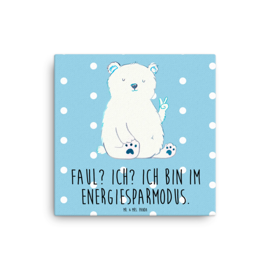 Leinwand Bild Eisbär Faul - 40 x 40 cm - mit Spruch - Blau Pastell