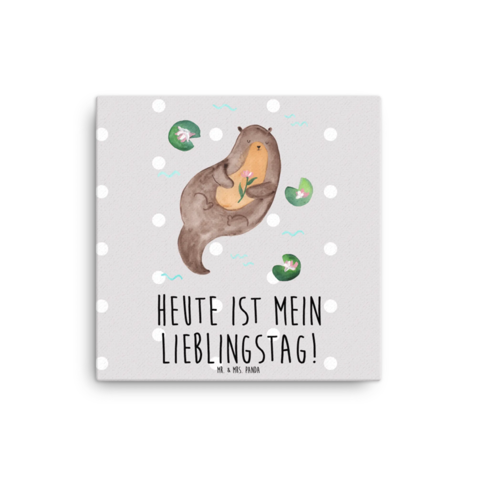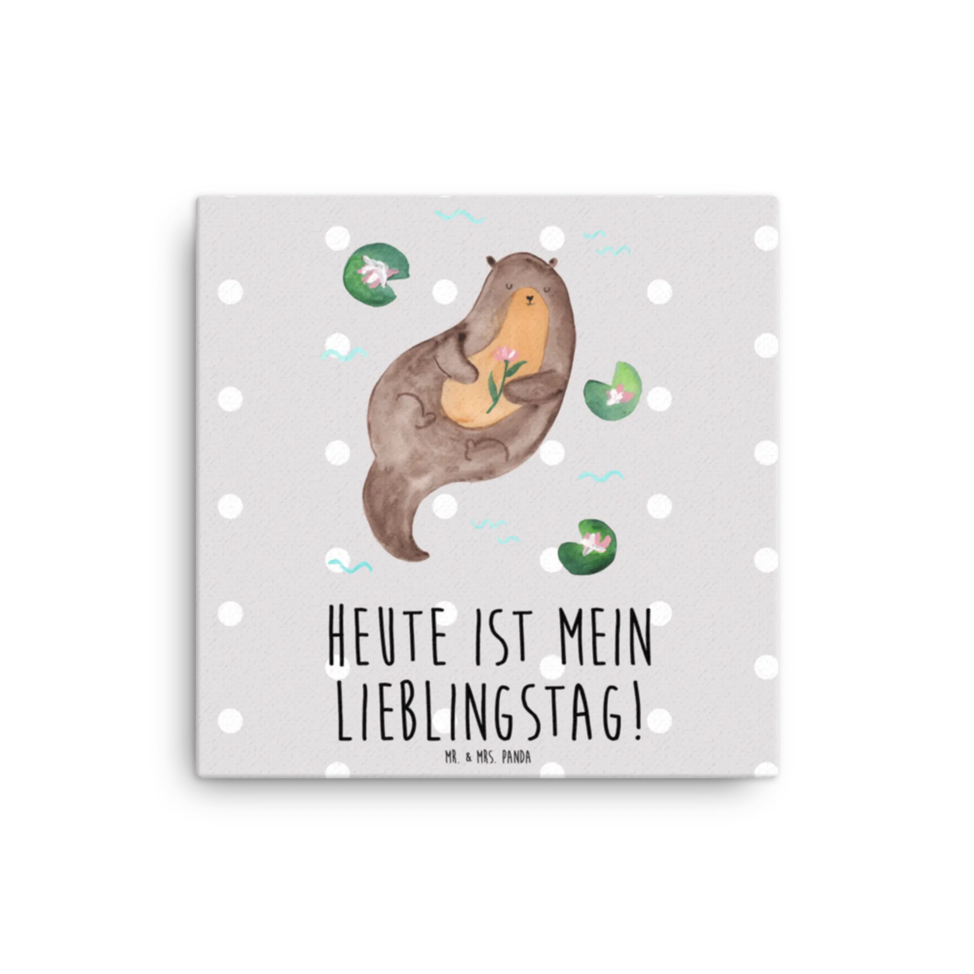 Leinwand Bild Otter Seerose - 40 x 40 cm - mit Spruch - Grau Pastell