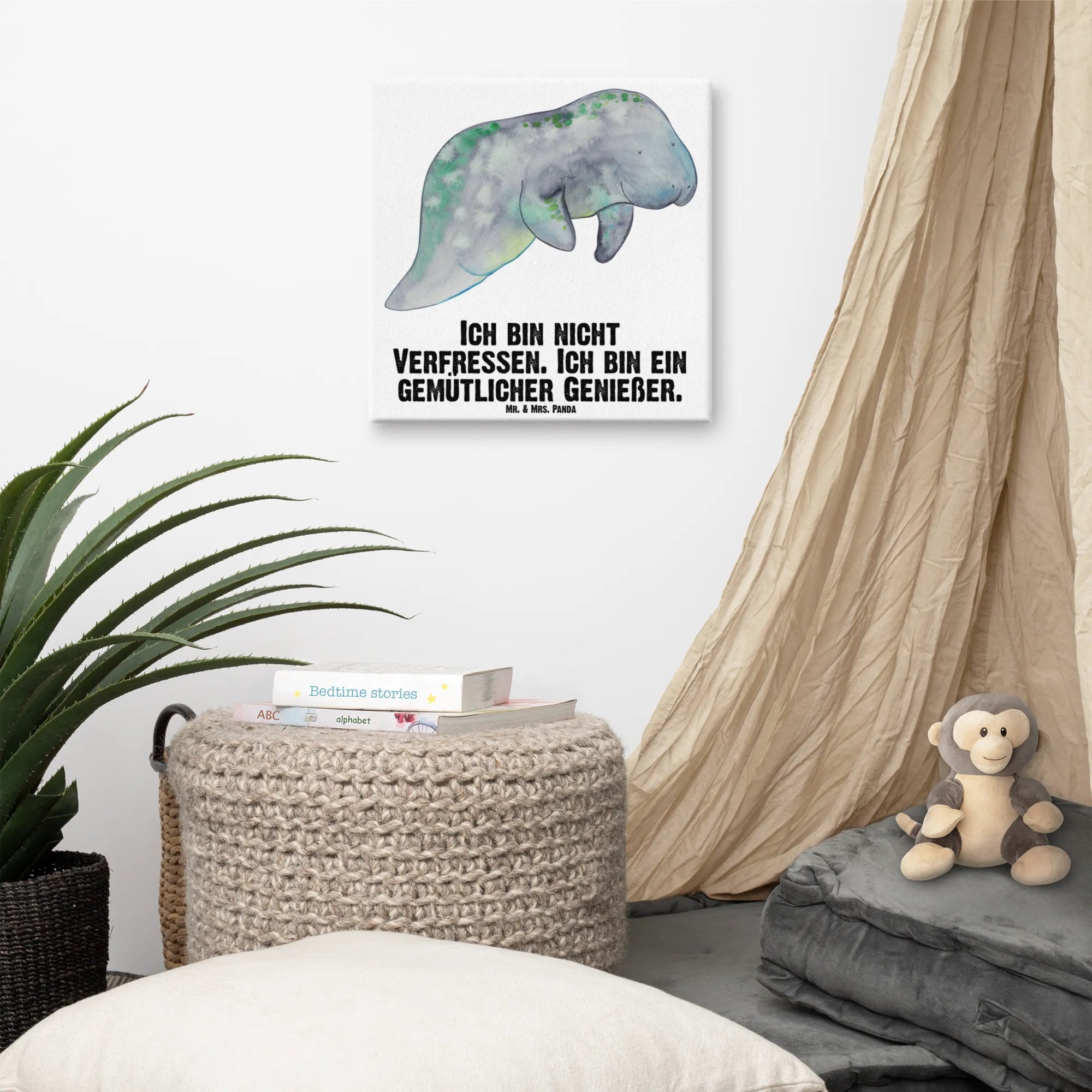 Leinwand Bild Seekuh chillt - 40 x 40 cm - mit Spruch - Weiß