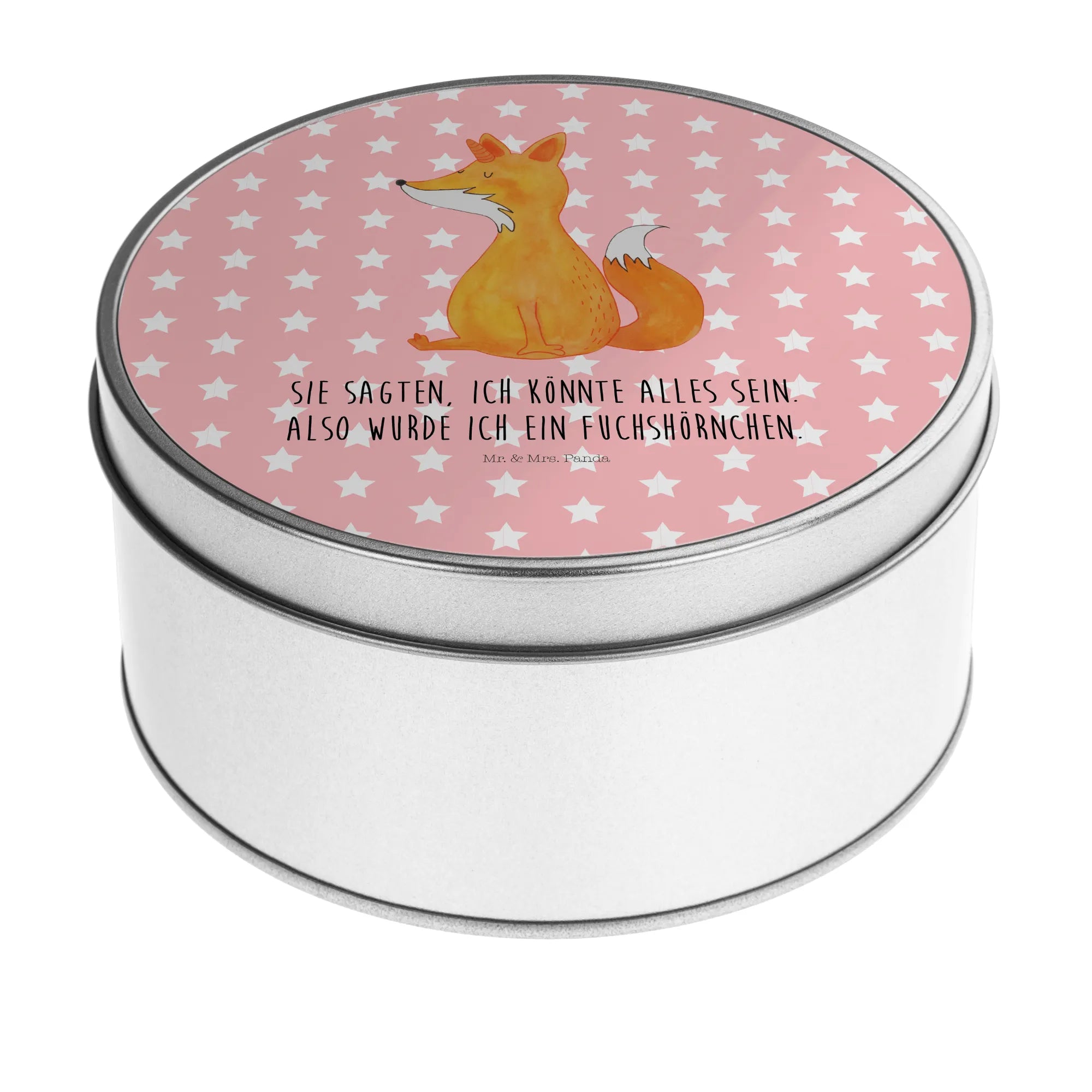 okrągła puszka z blachy Jednorożec lis - z napisem