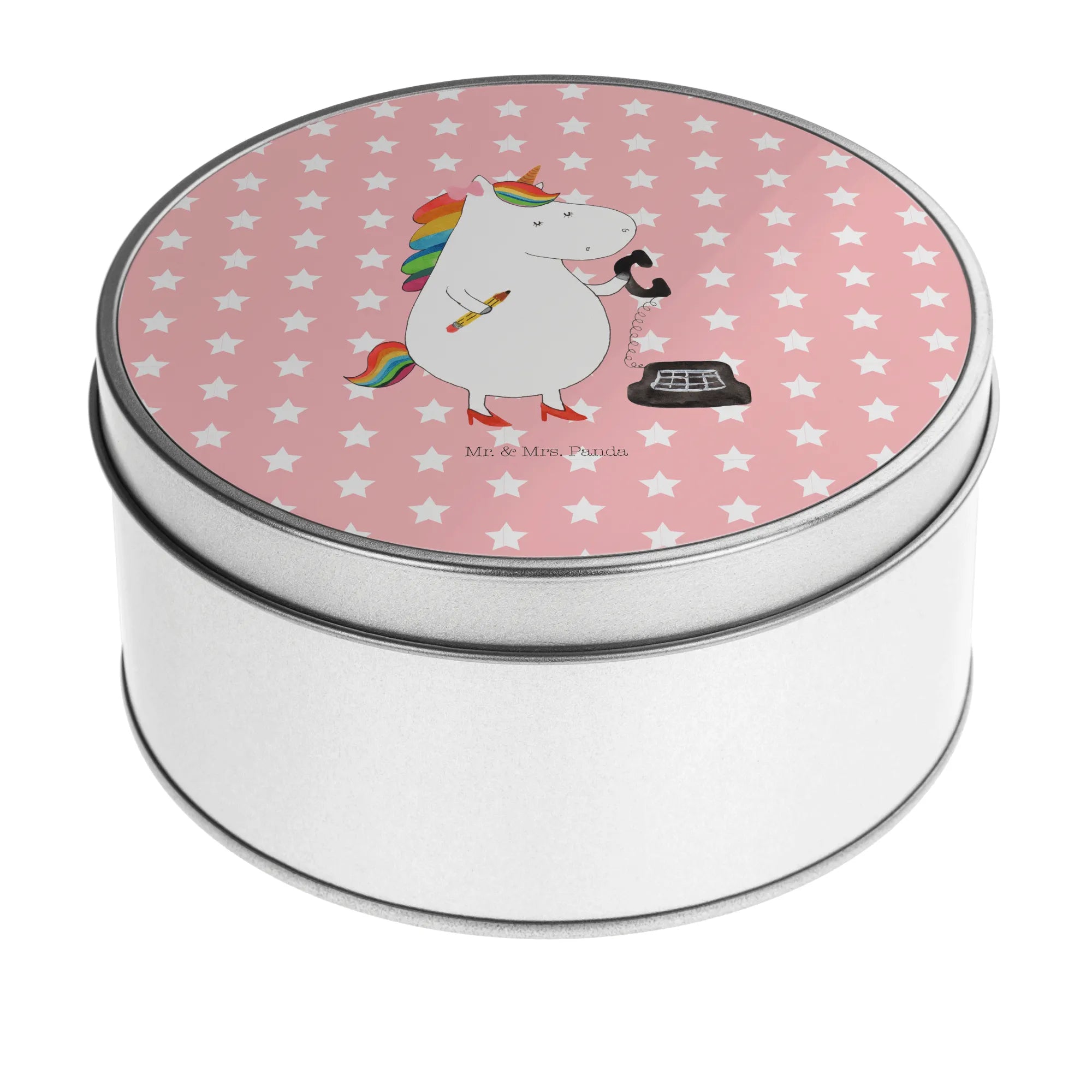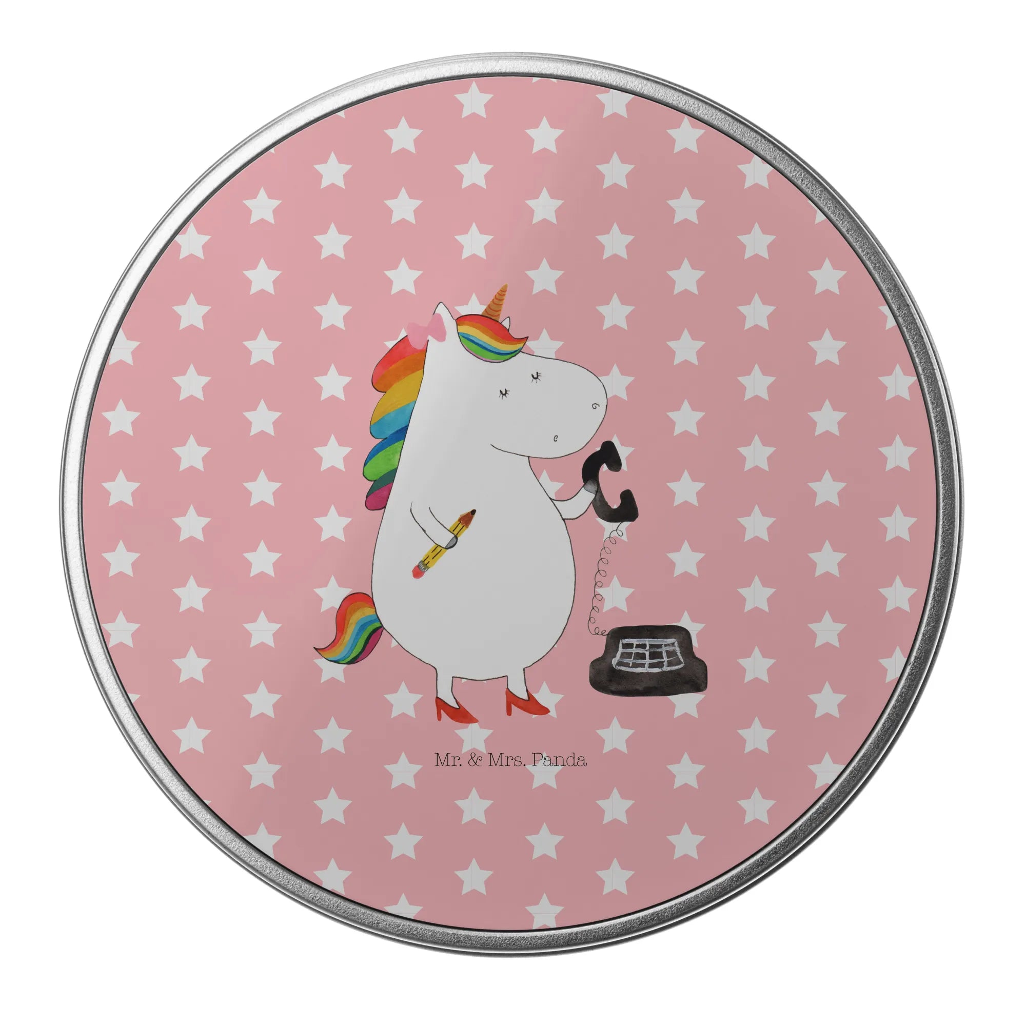 okrągła puszka z blachy Jednorożec sekretarka - z napisem