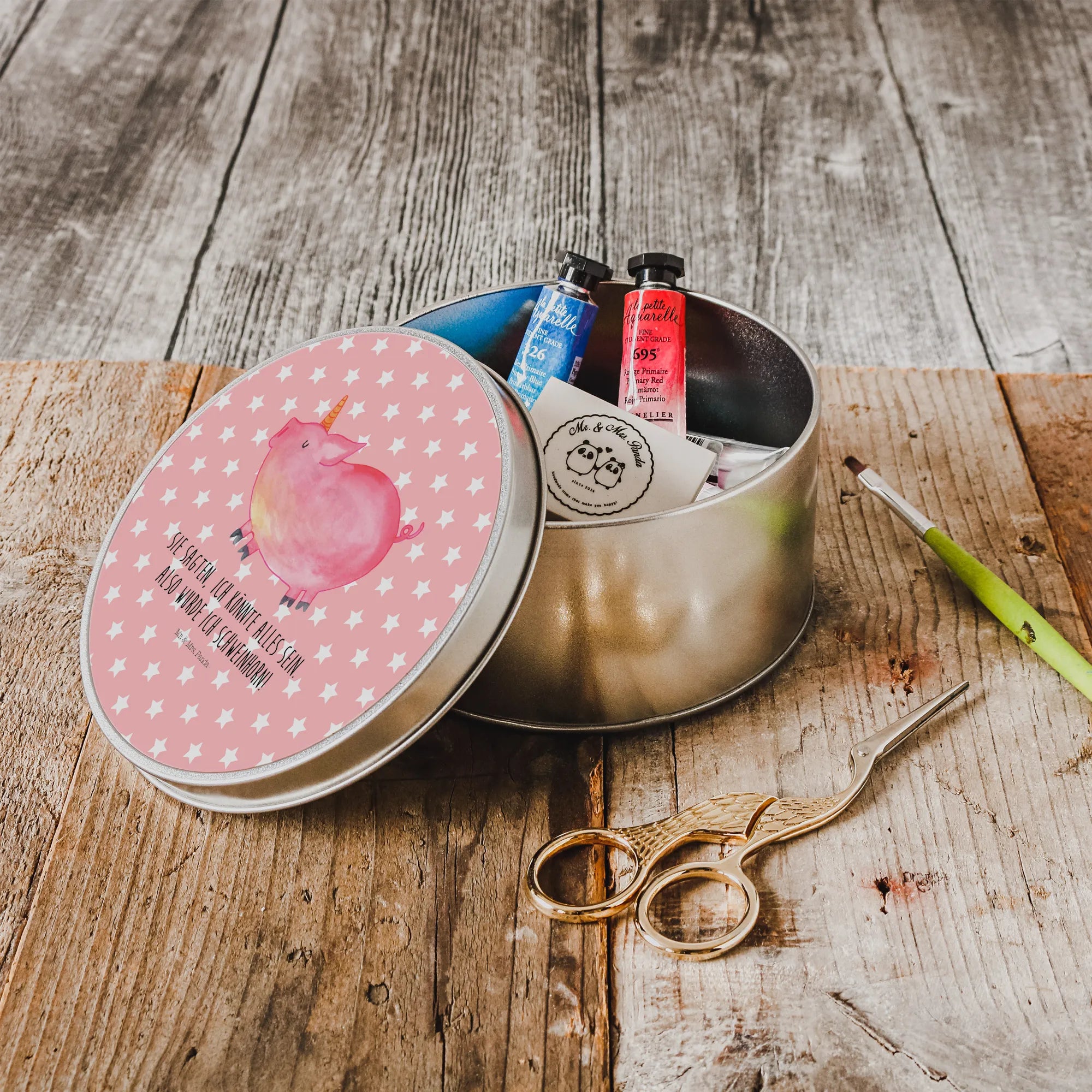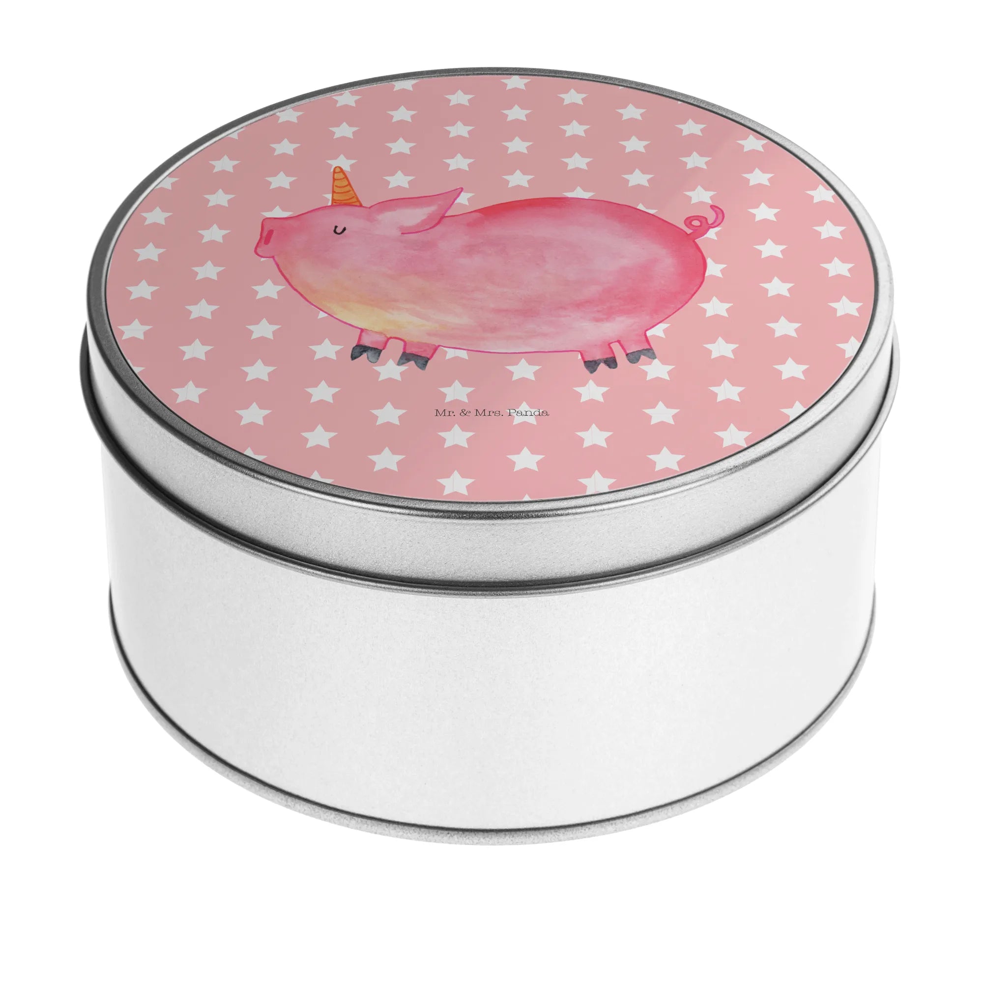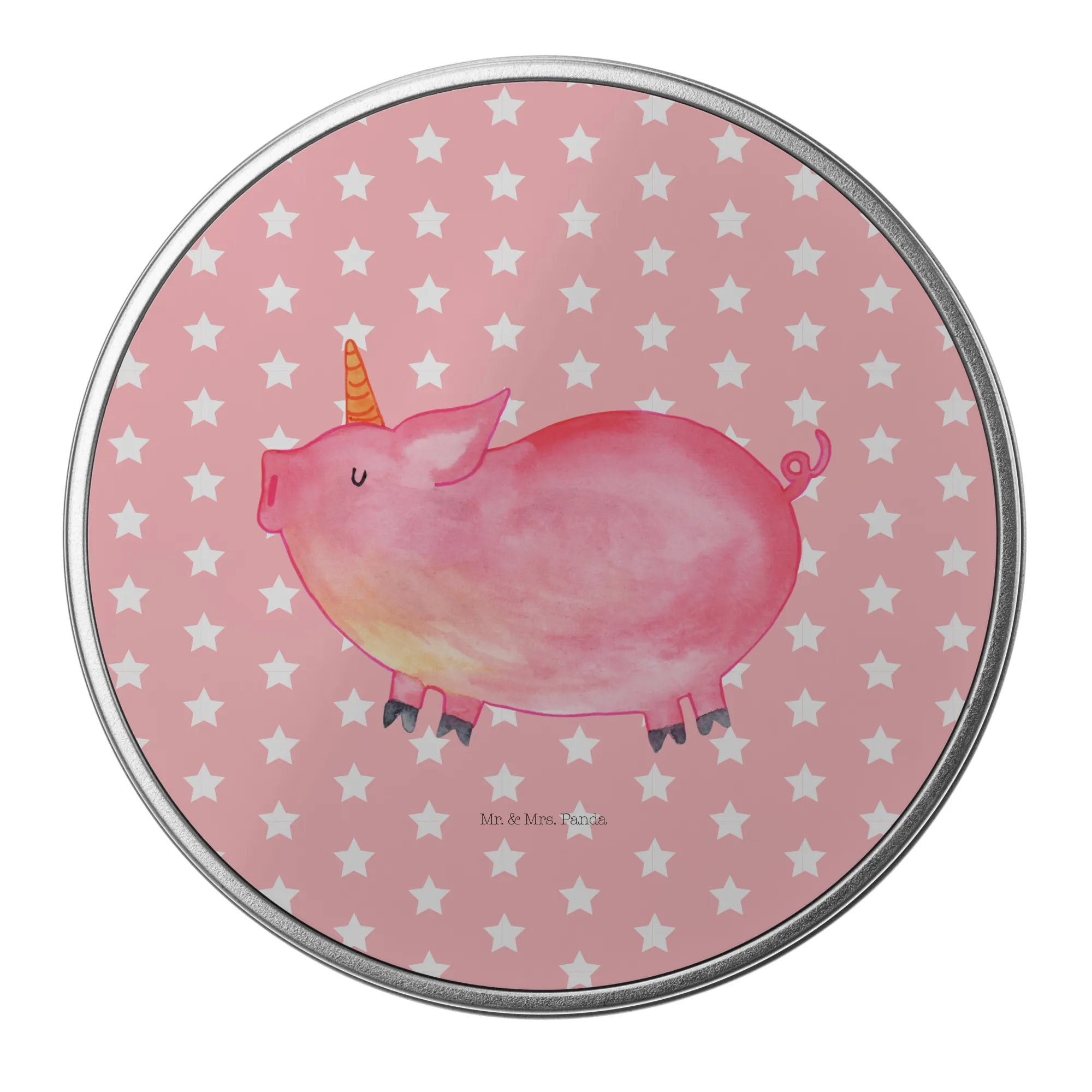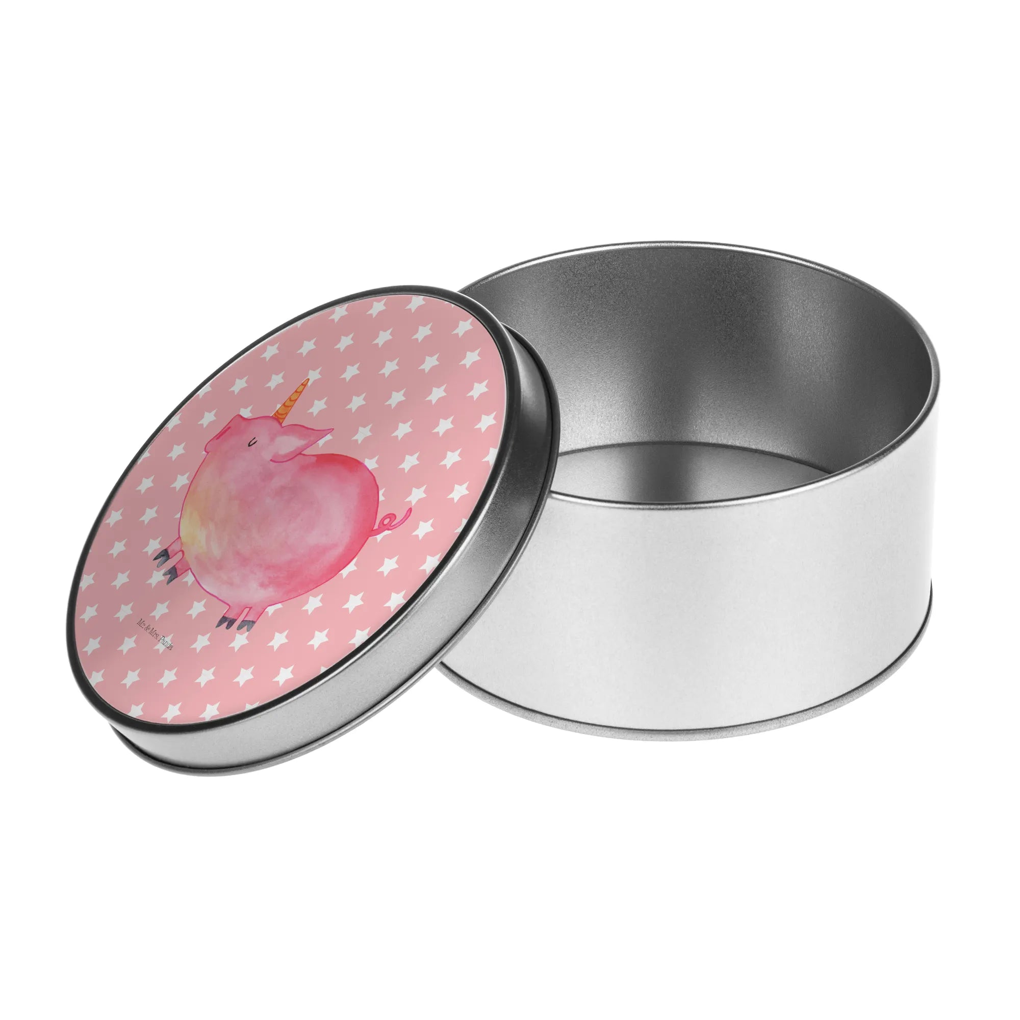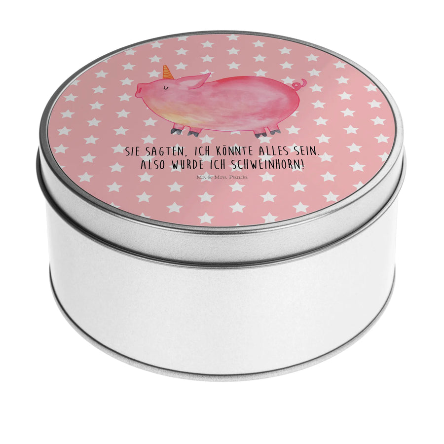 okrągła puszka z blachy jednorożec świnia - z napisem