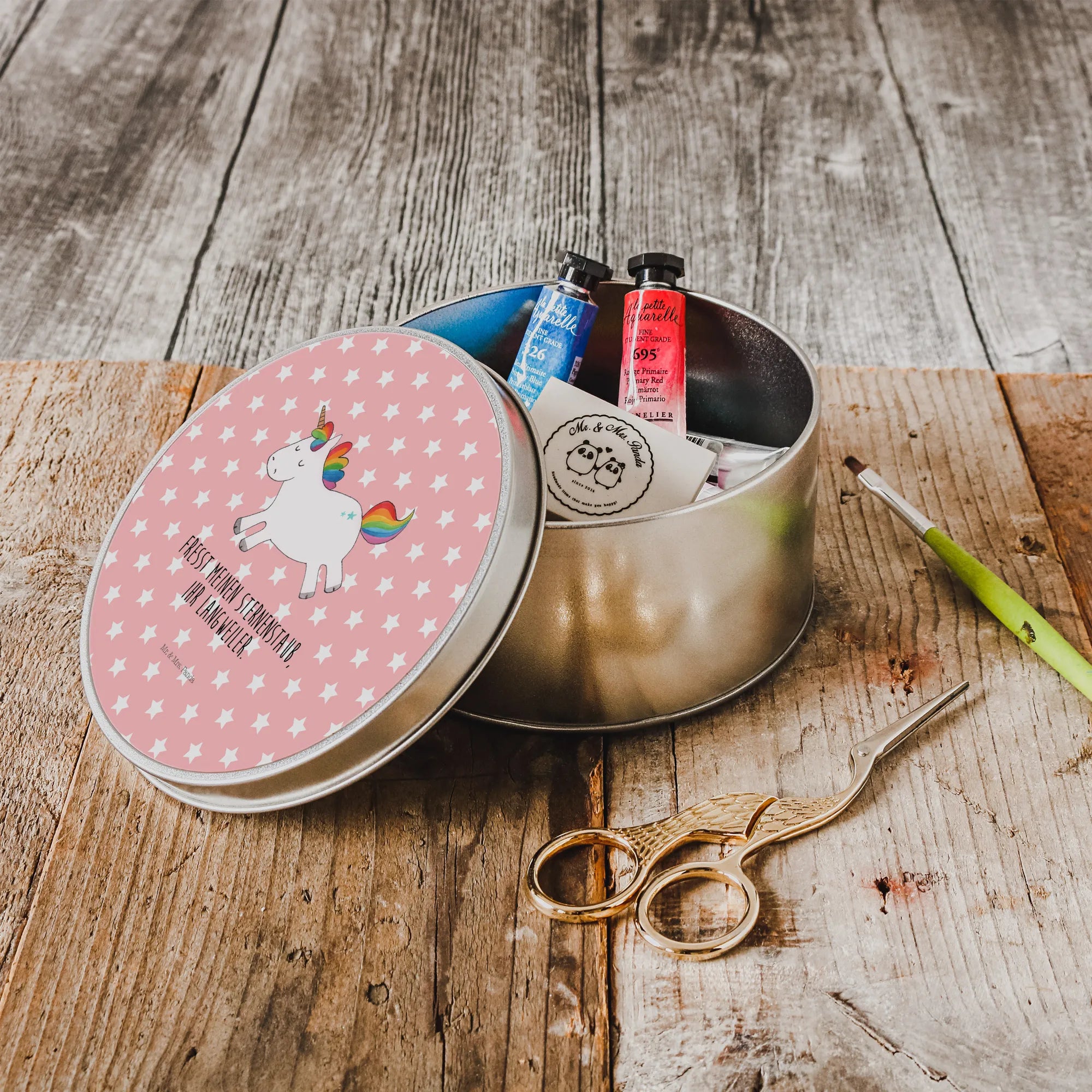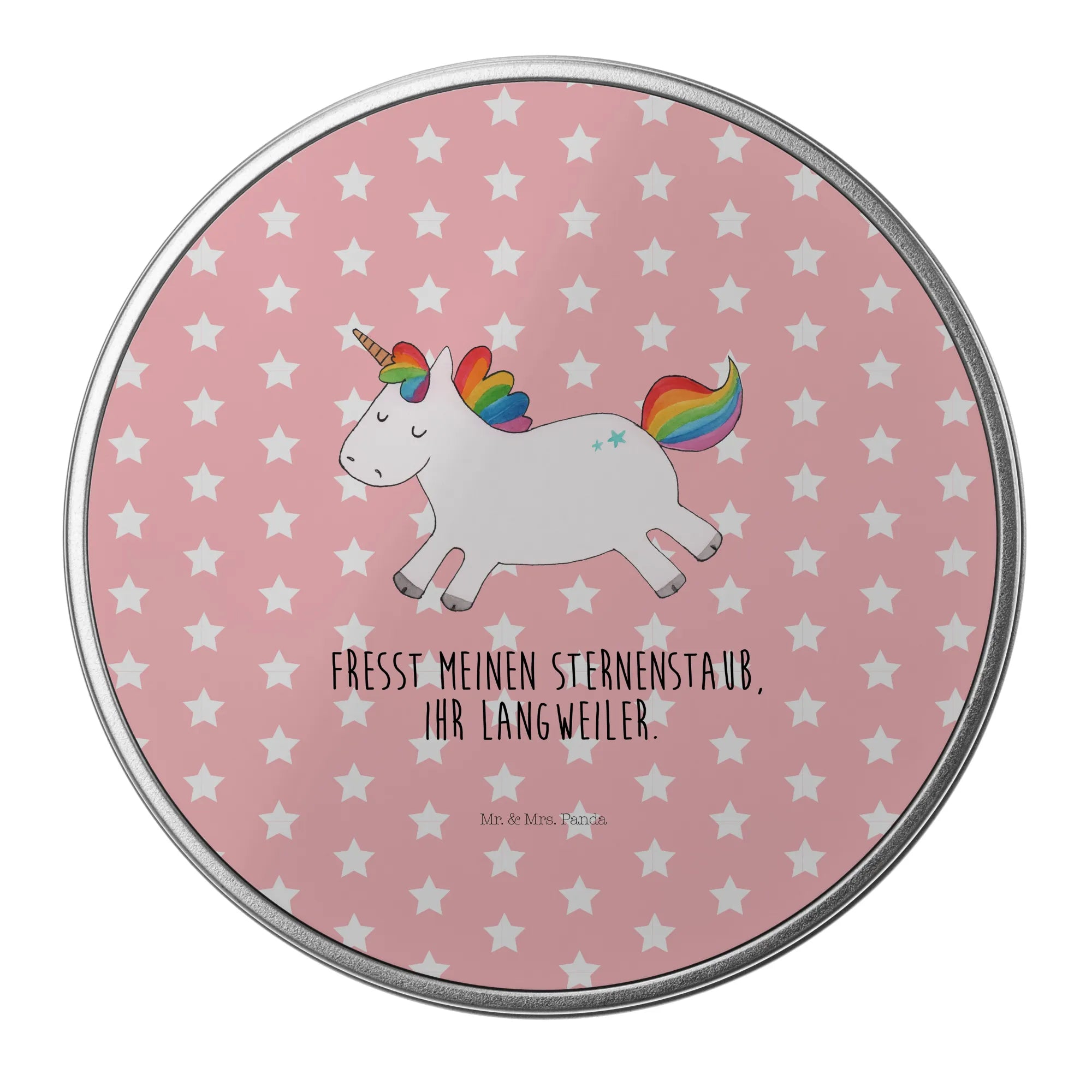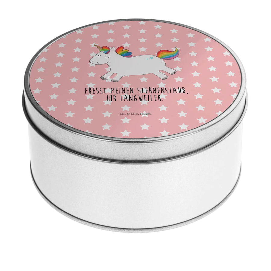 okrągła puszka z blachy Jednorożec Szczęśliwy - z napisem