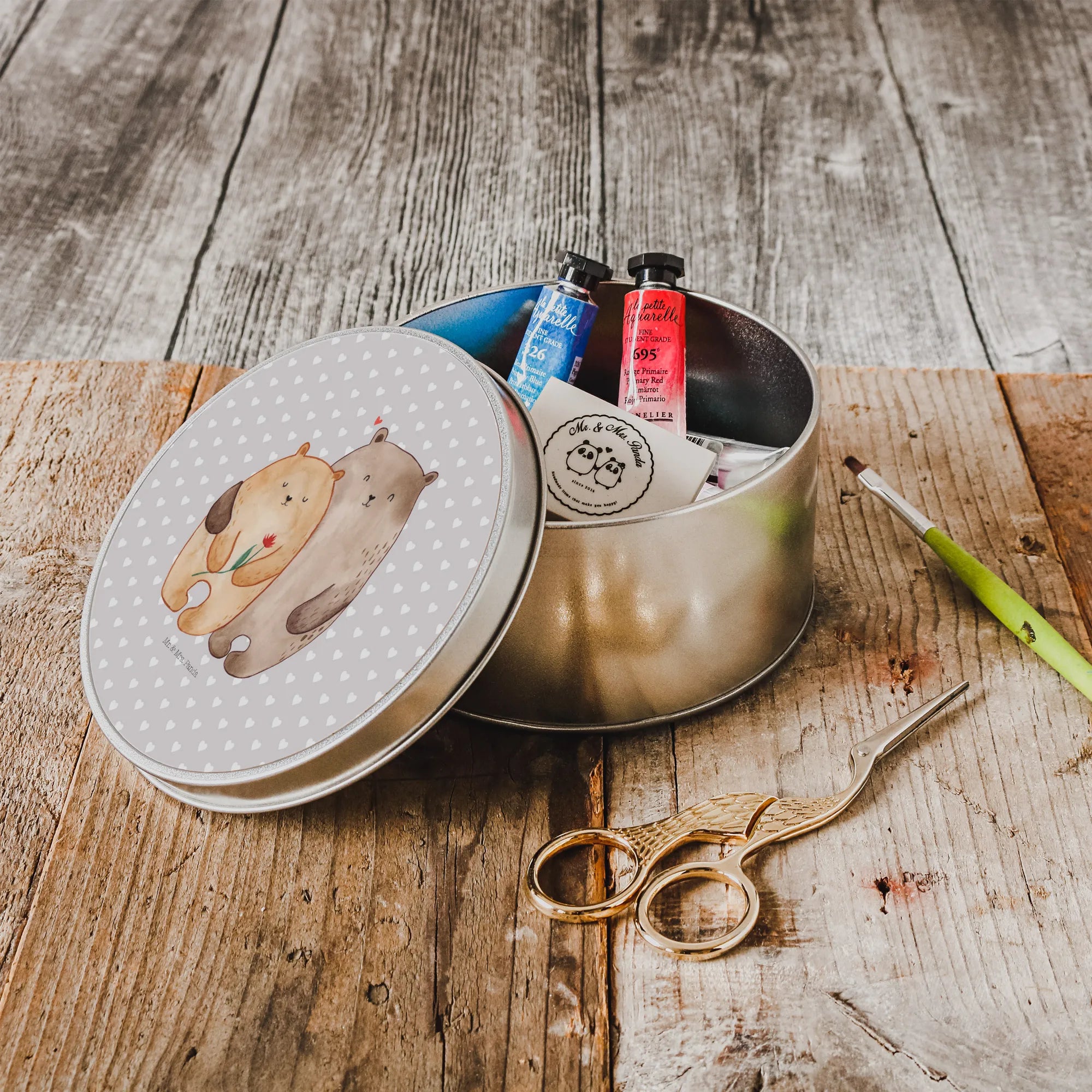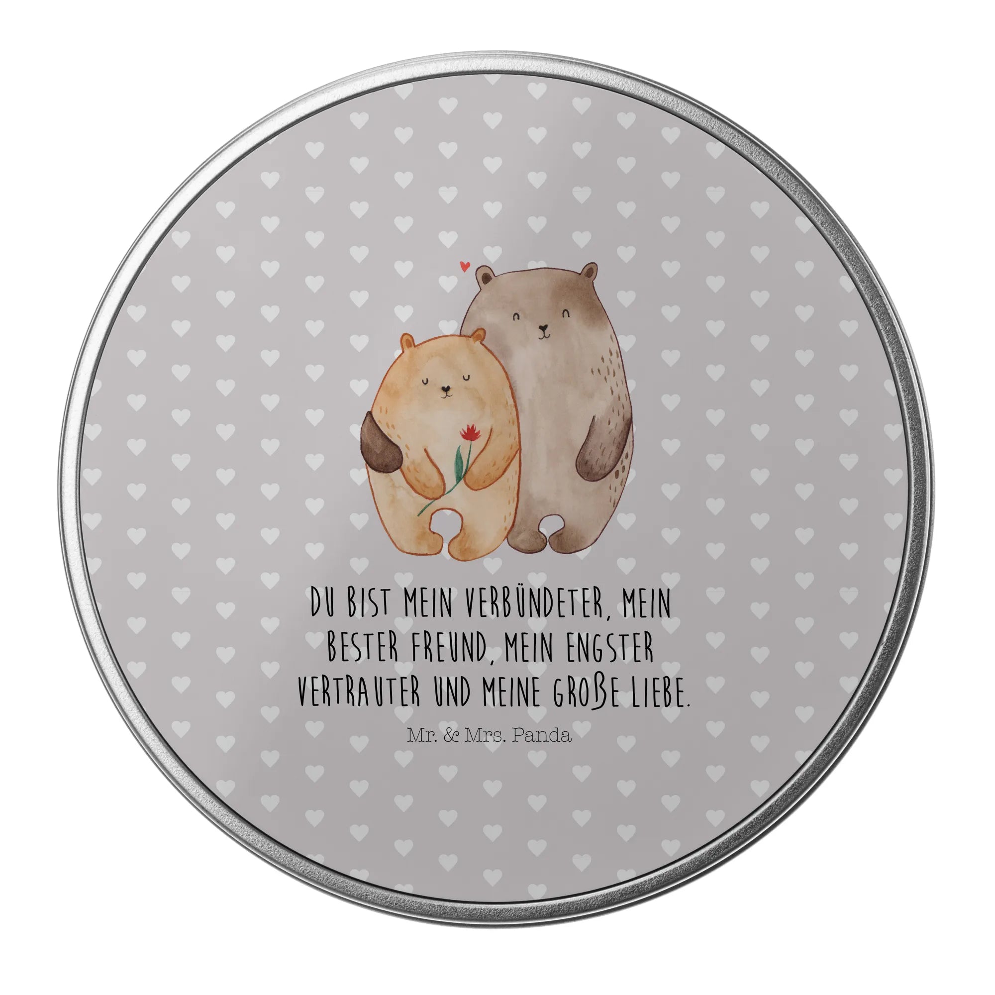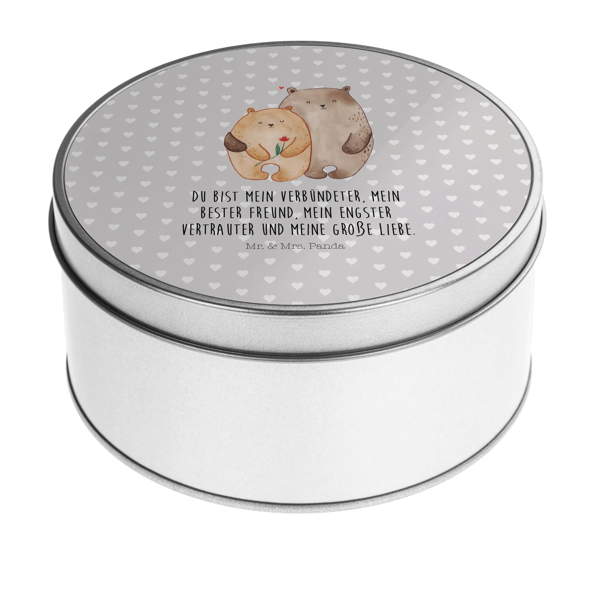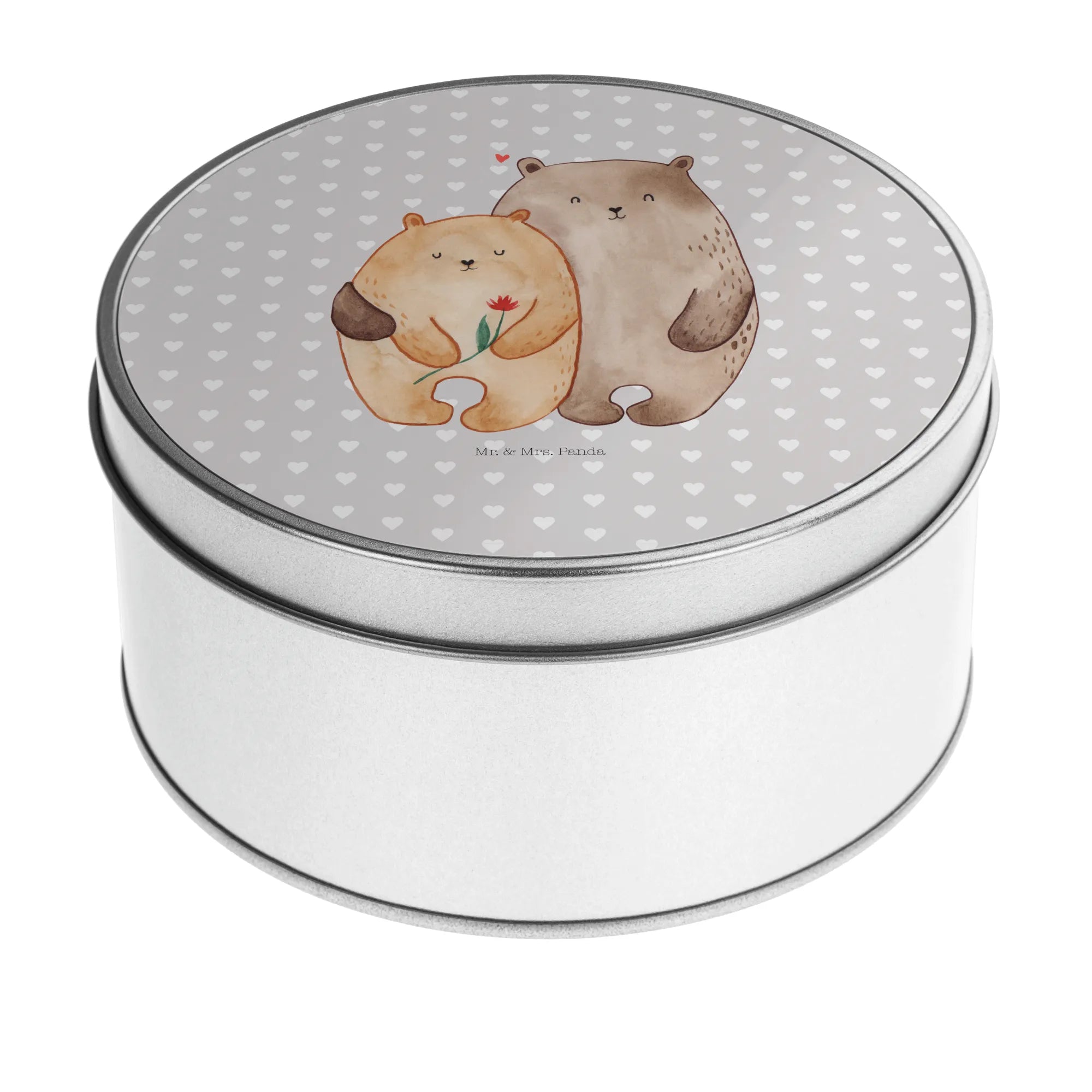 okrągła puszka z blachy Miłość niedźwiedzi - z napisem