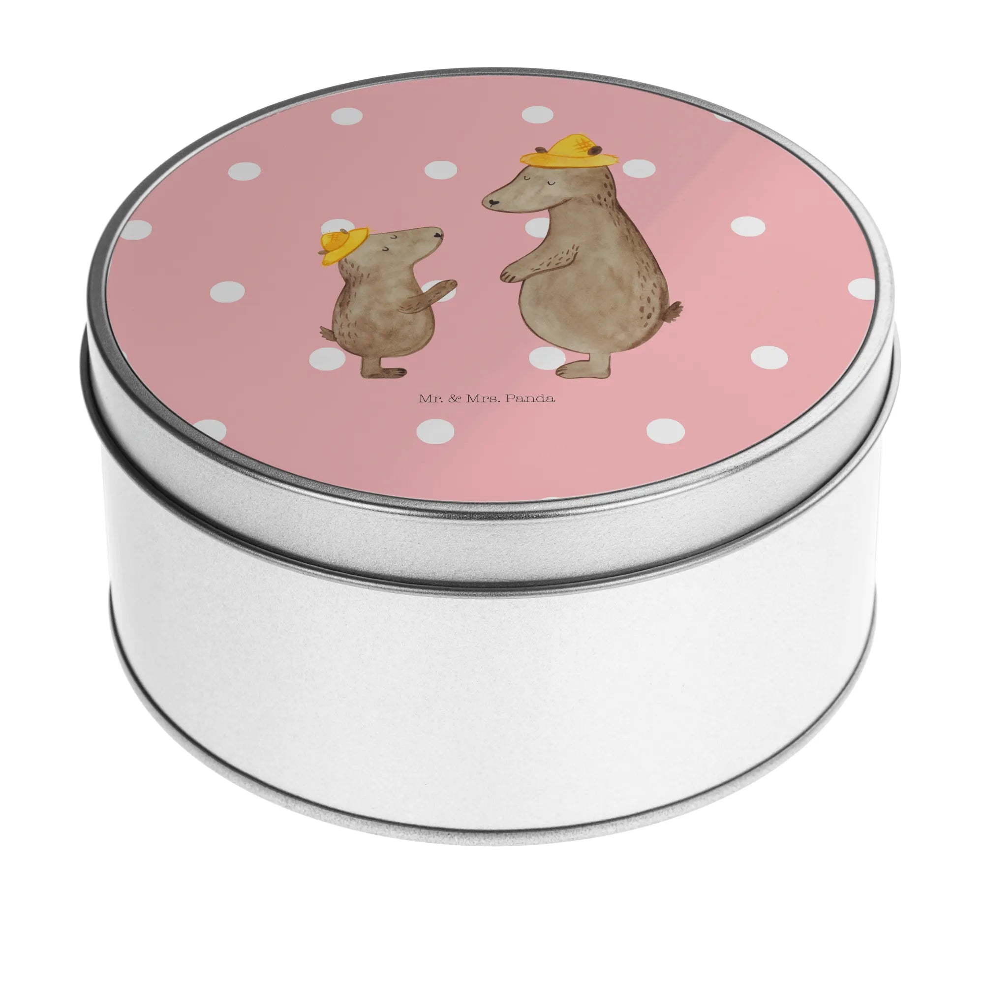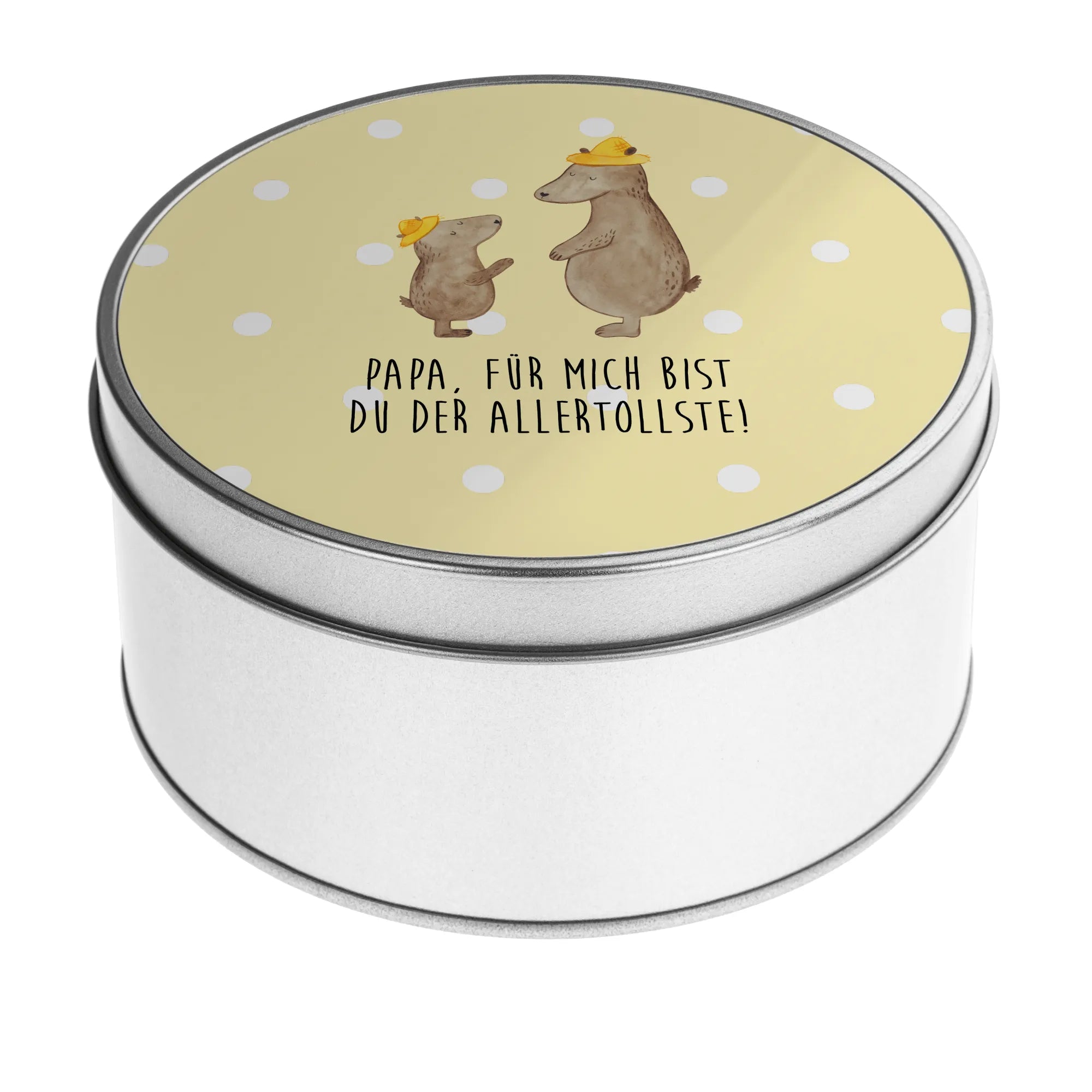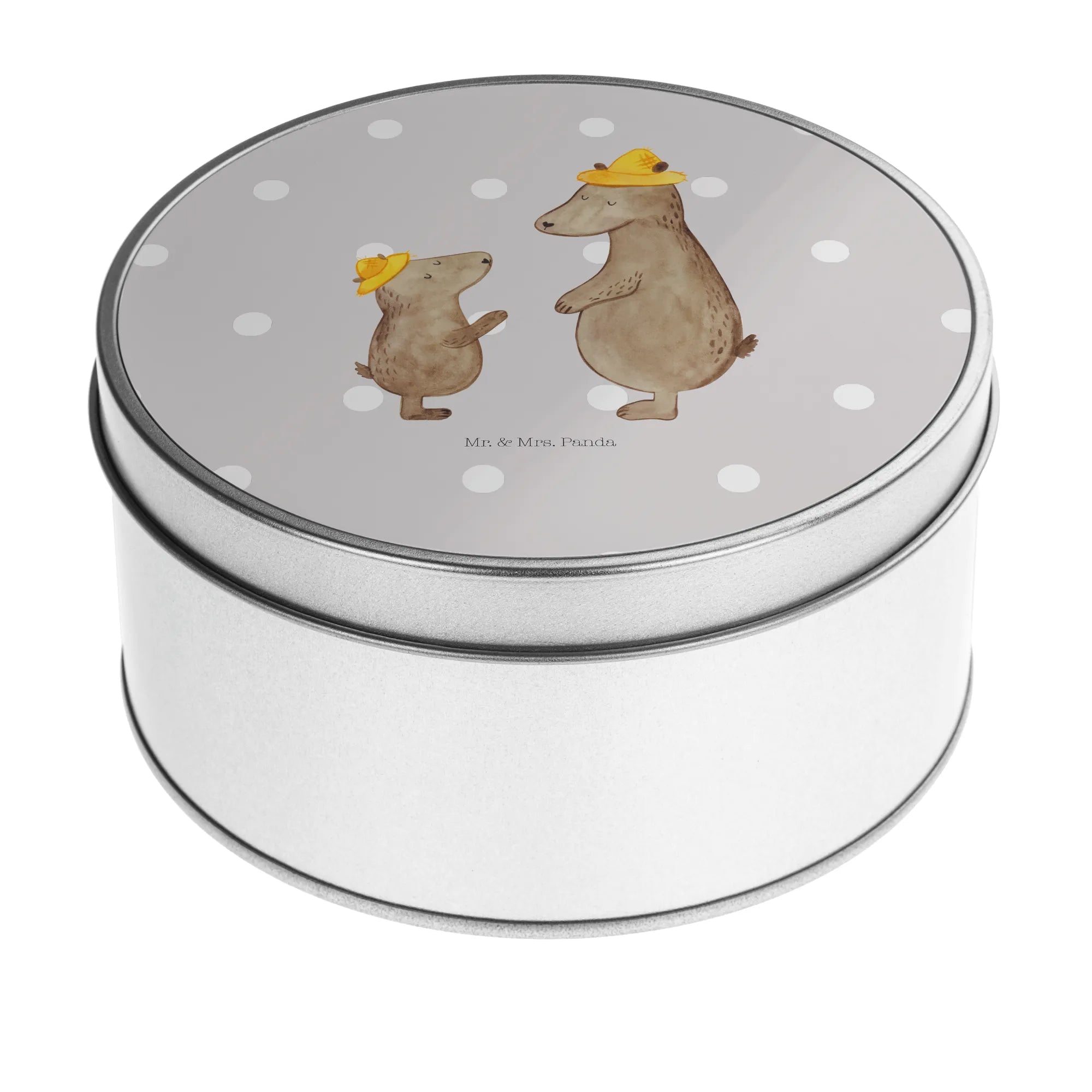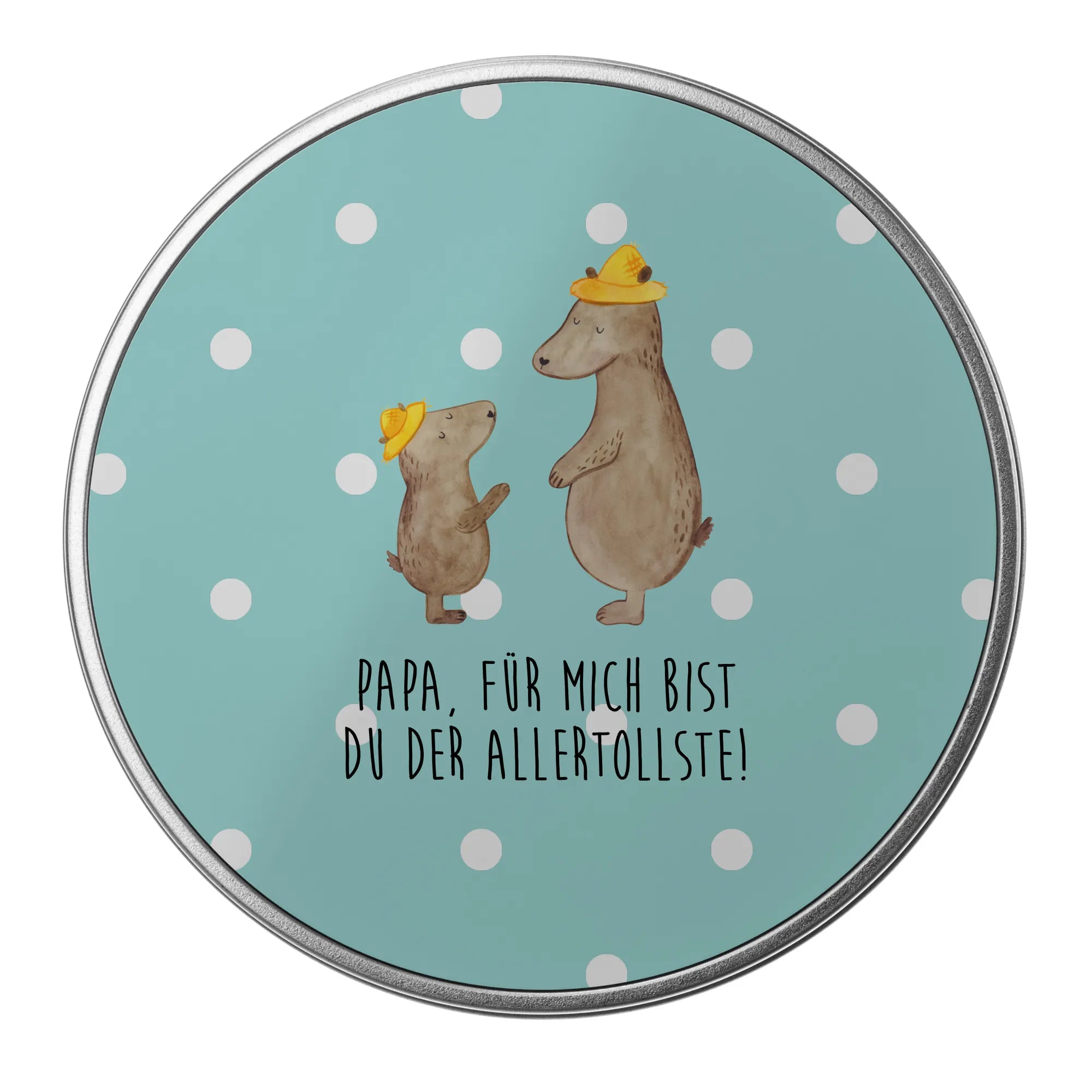 okrągła puszka z blachy Niedźwiedzie z kapeluszami - z napisem - Niebieski Pastel