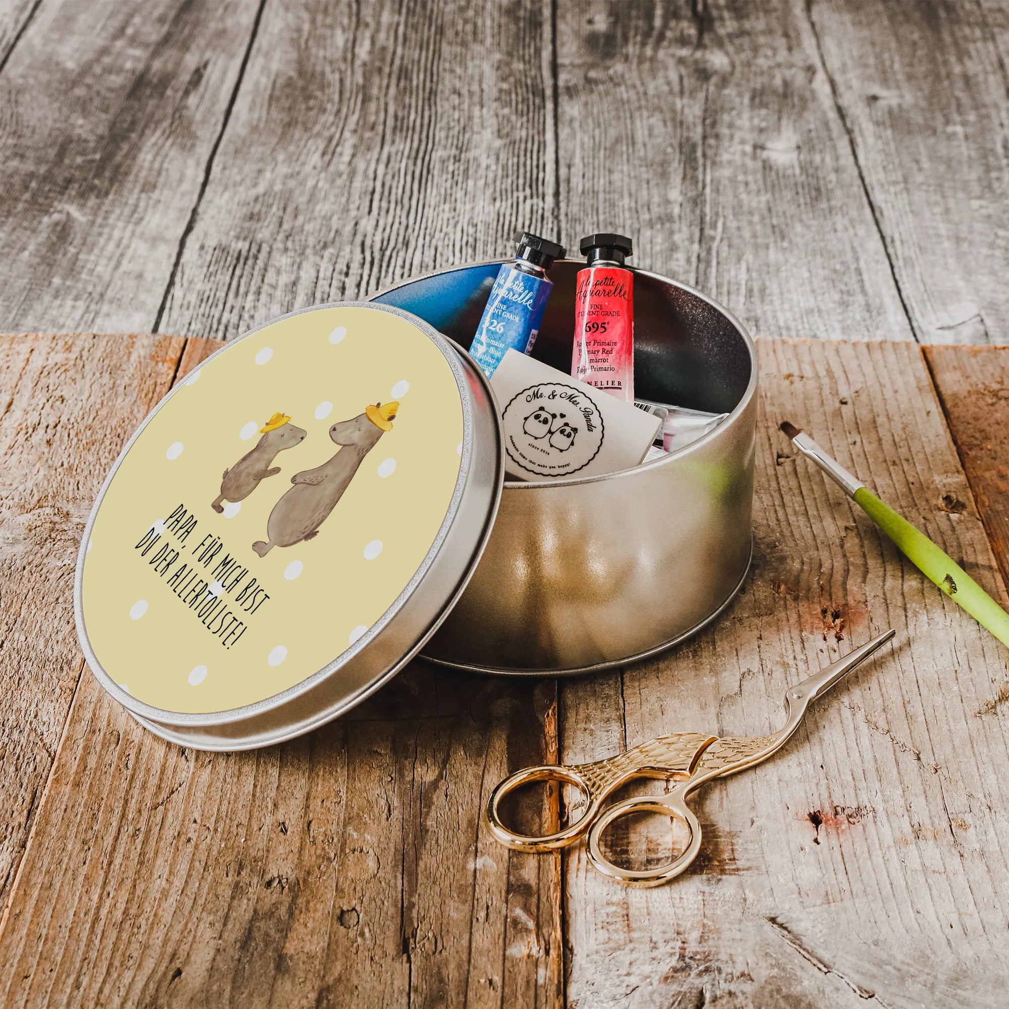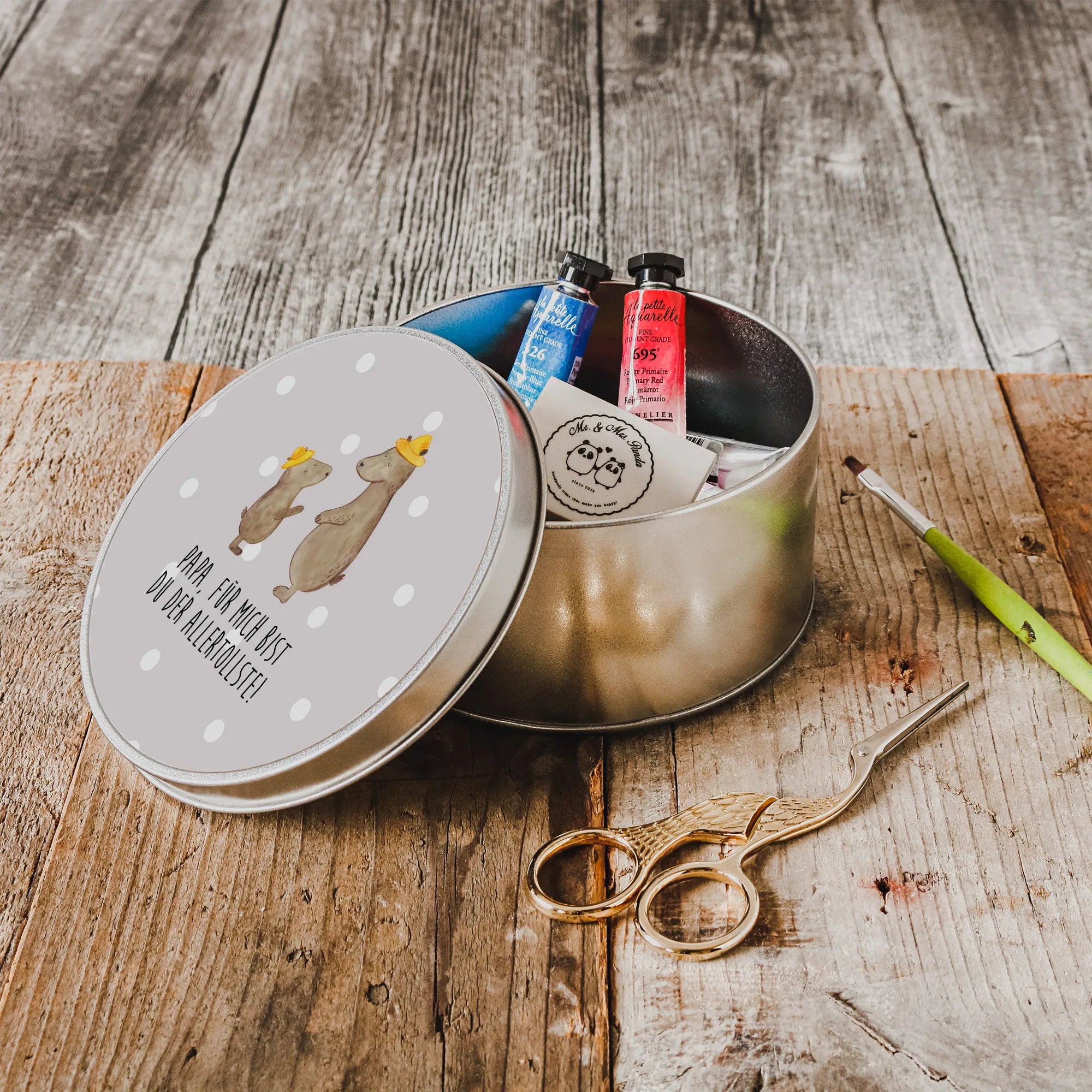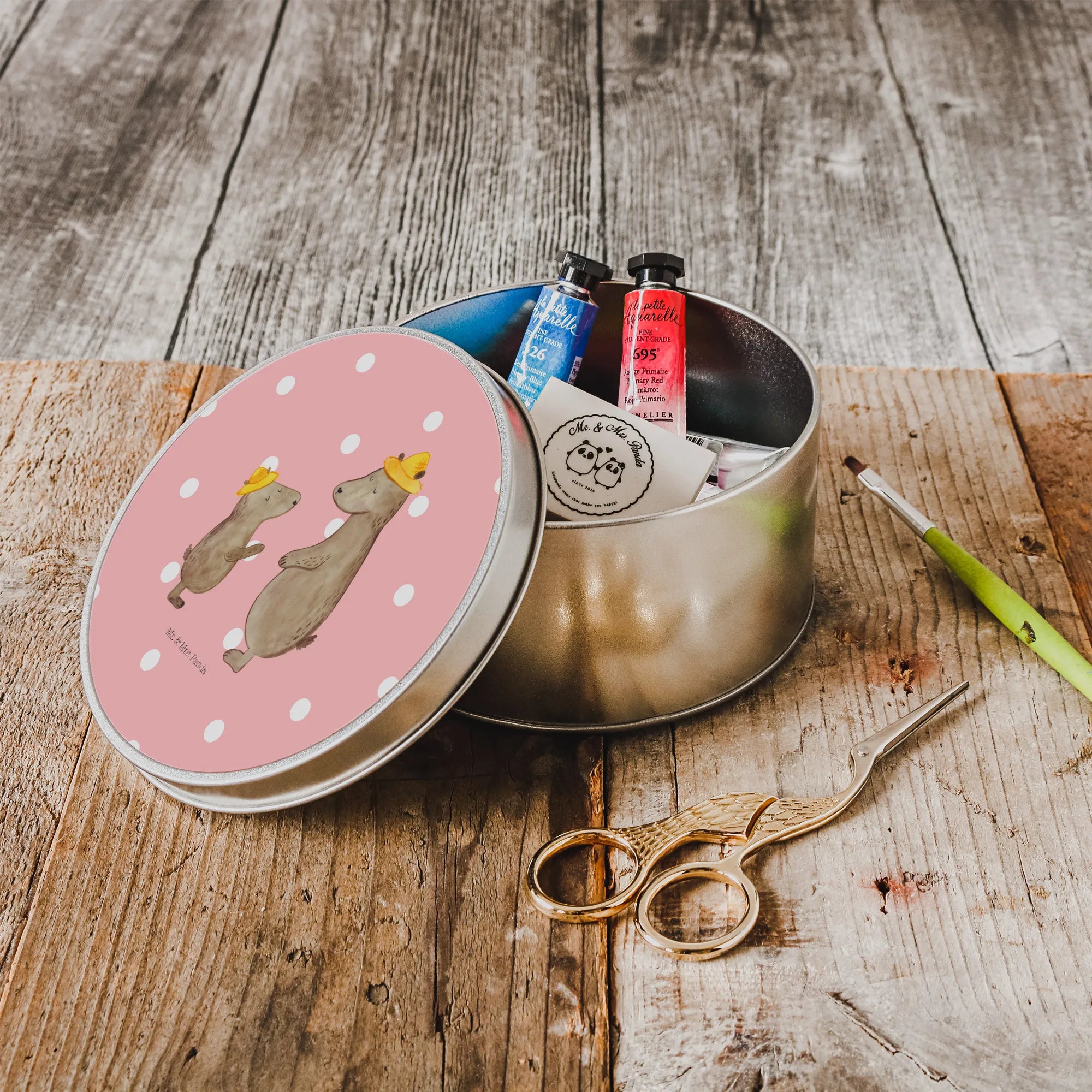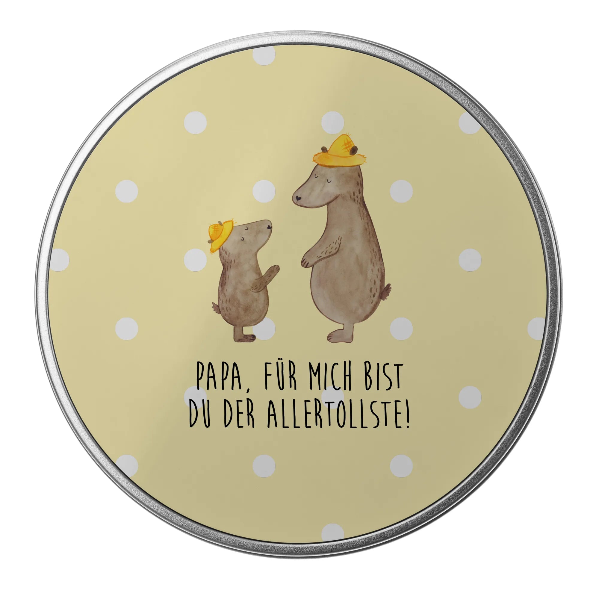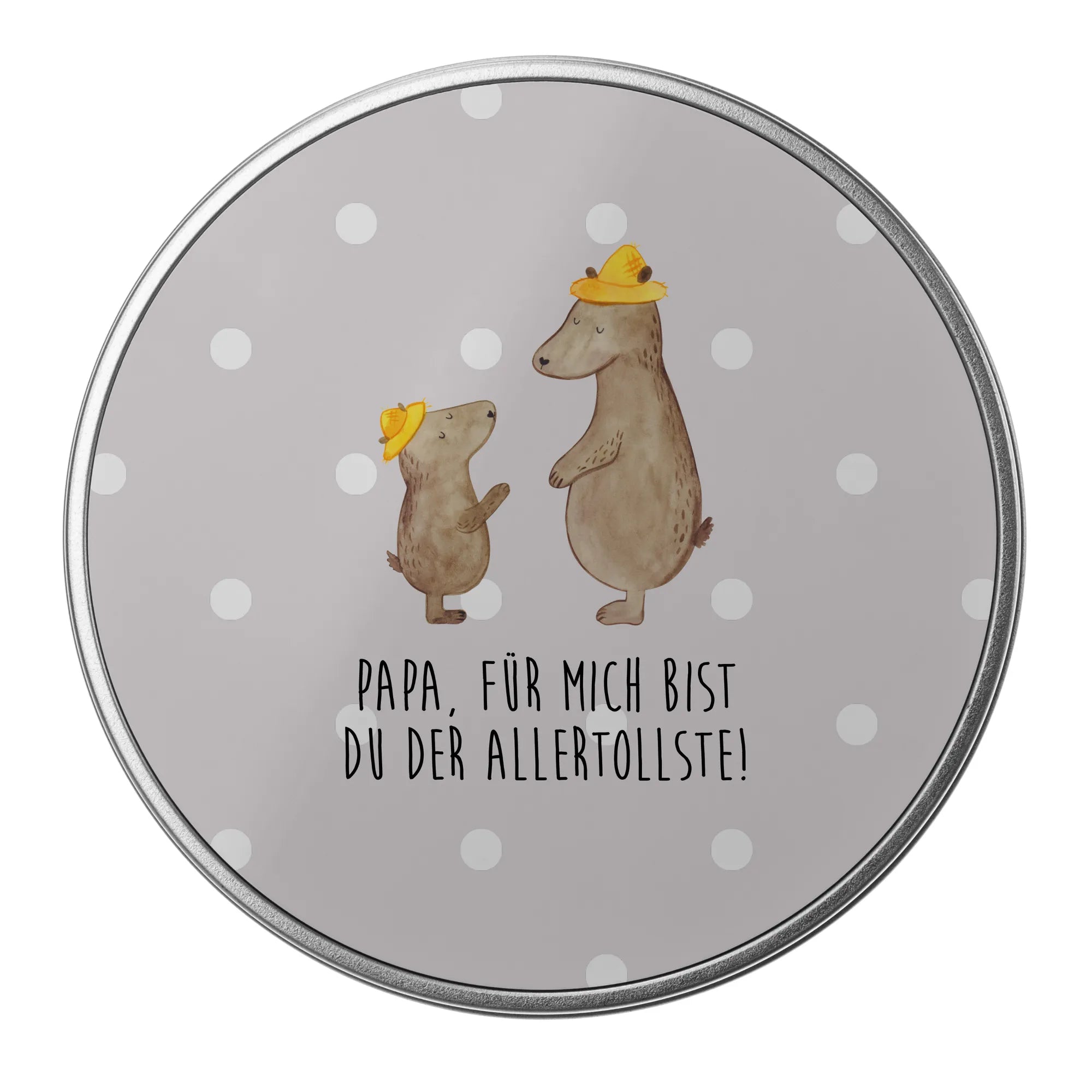 okrągła puszka z blachy Niedźwiedzie z kapeluszami - z napisem - Niebieski Pastel