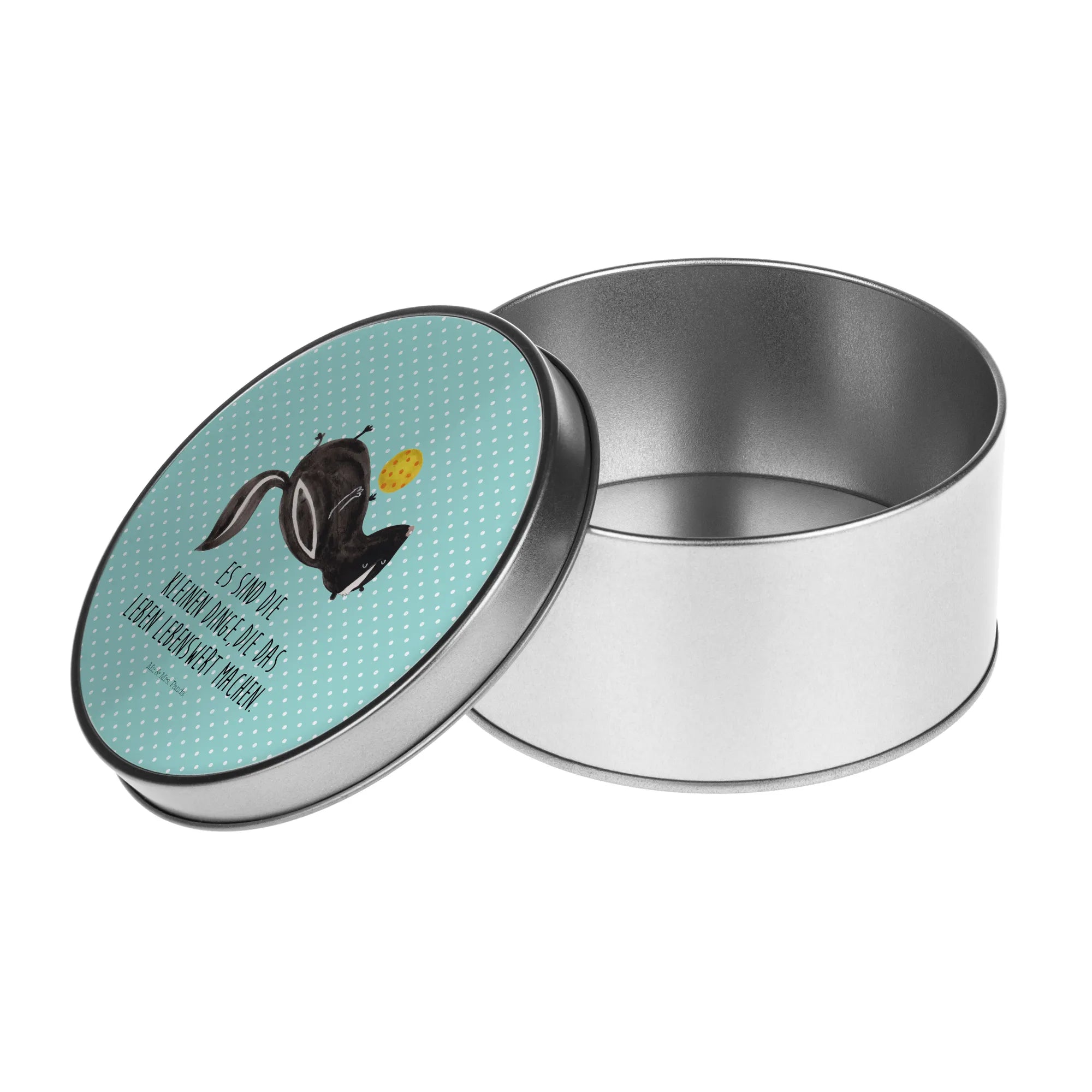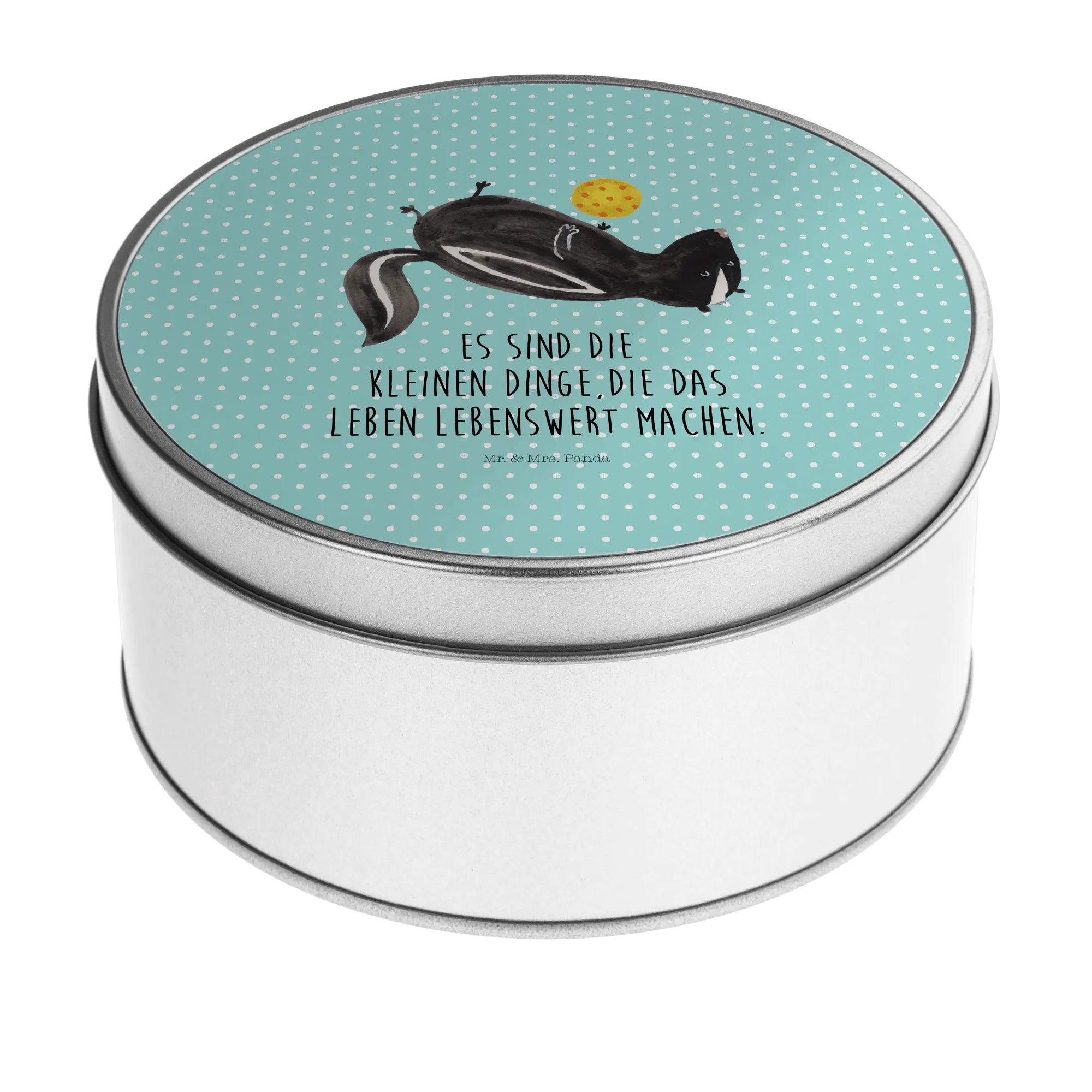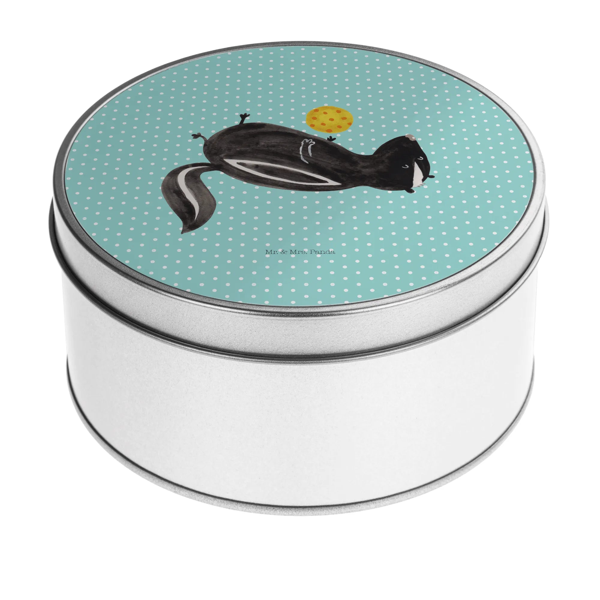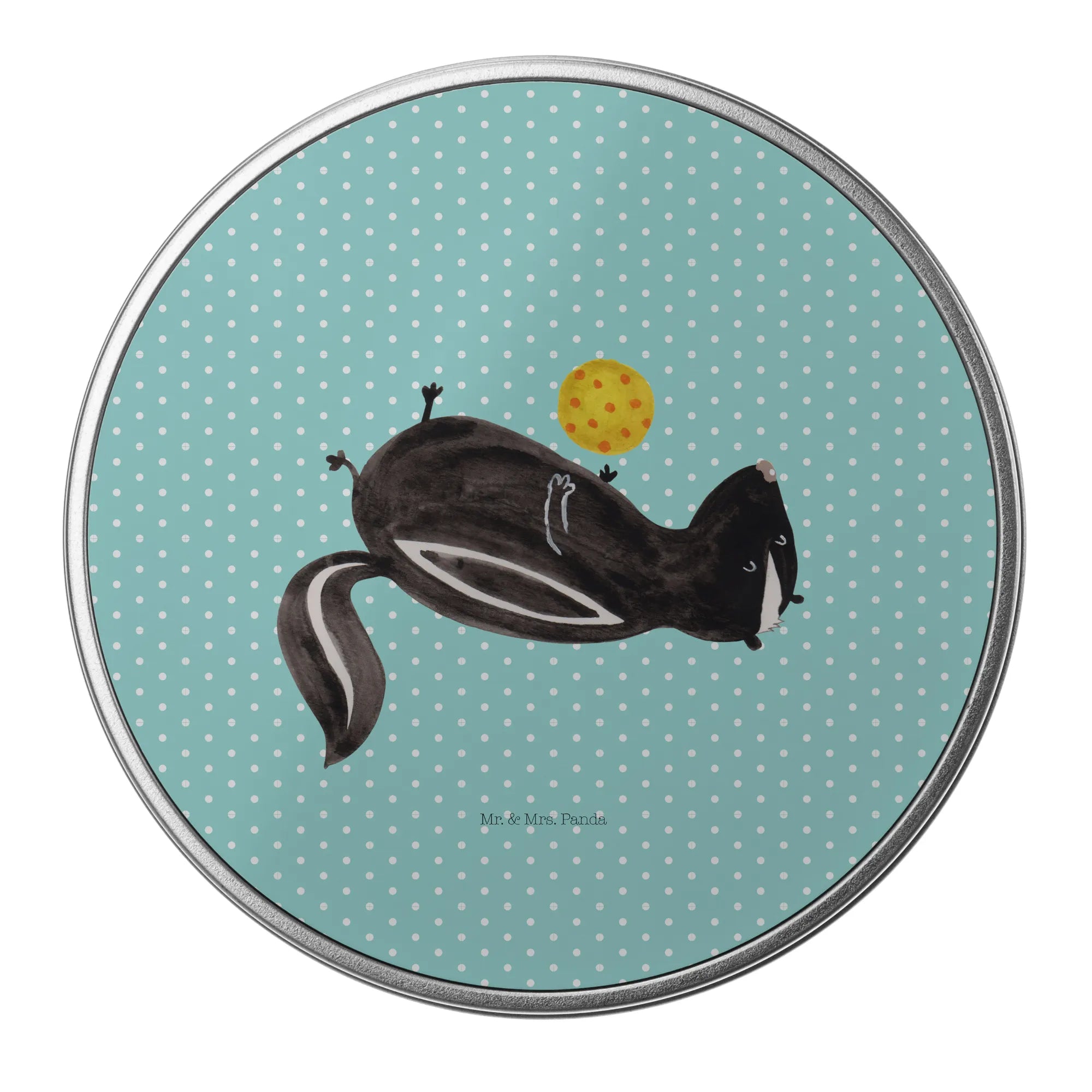 okrągła puszka z blachy skunks piłka - z napisem