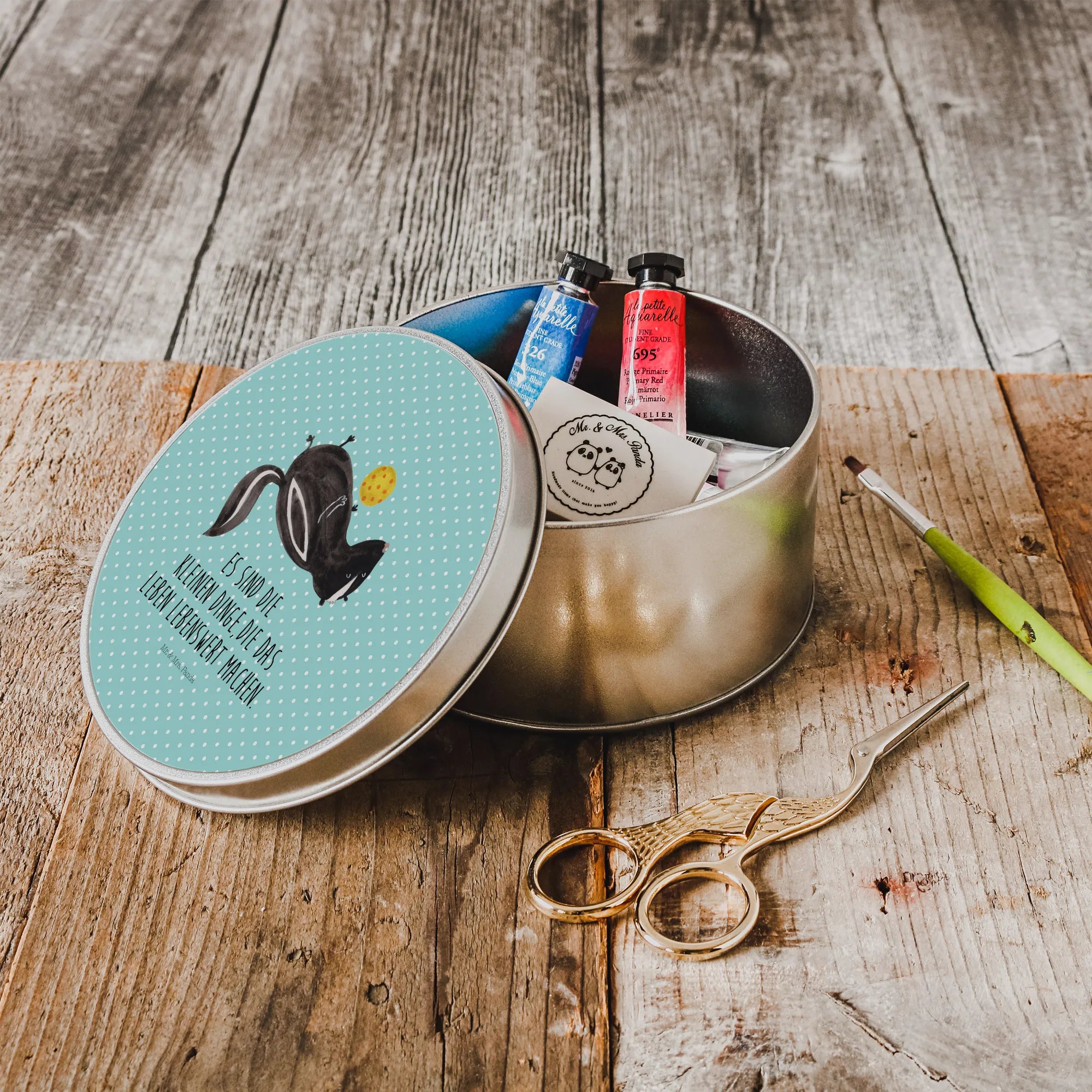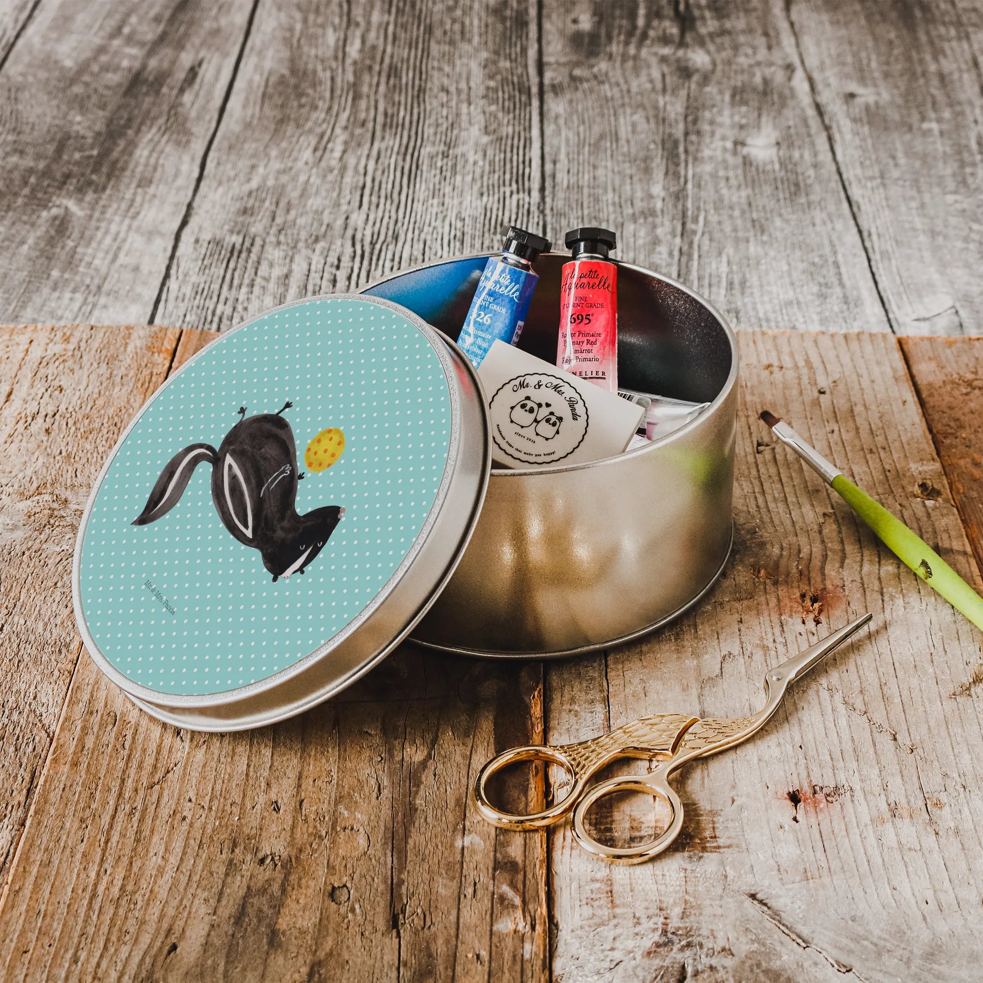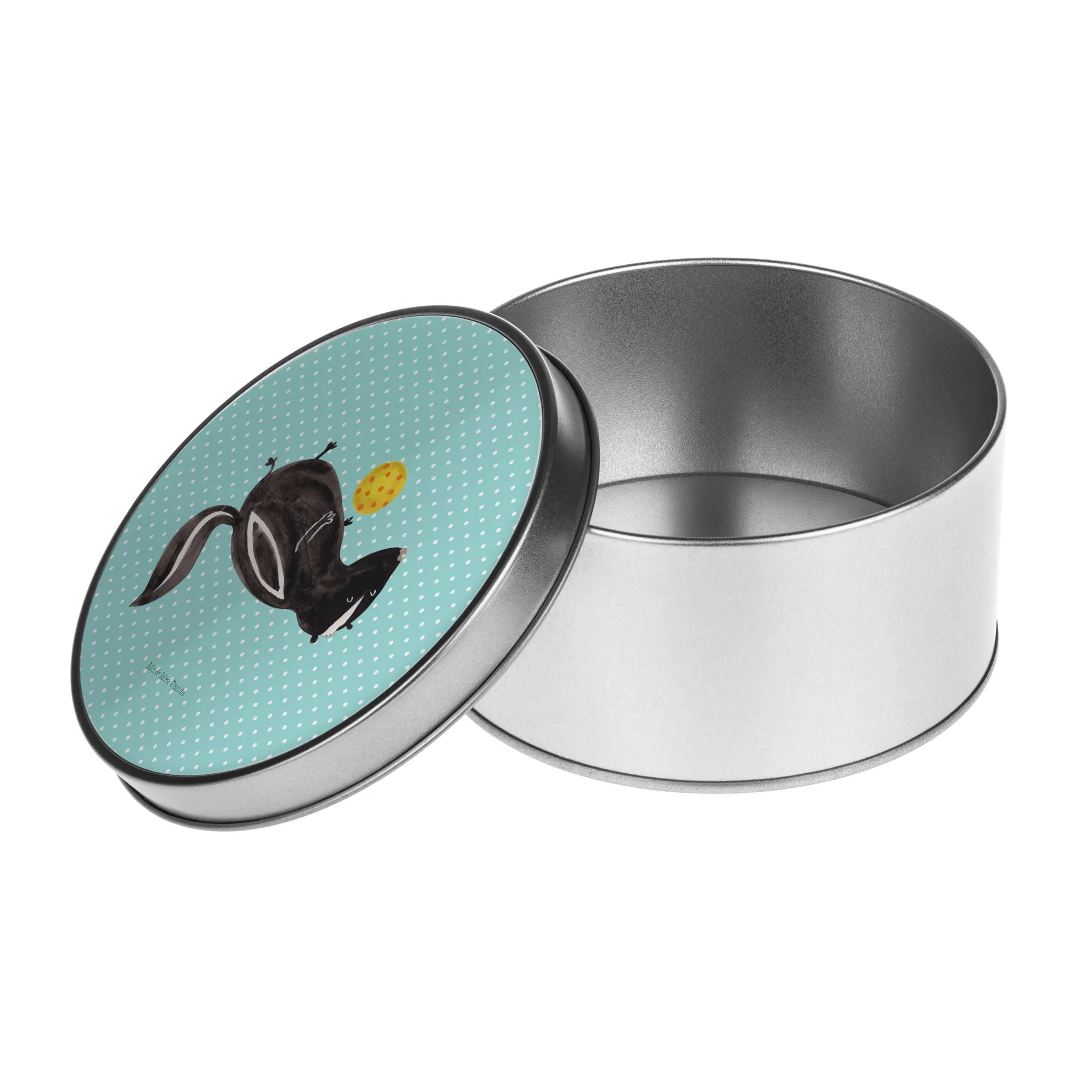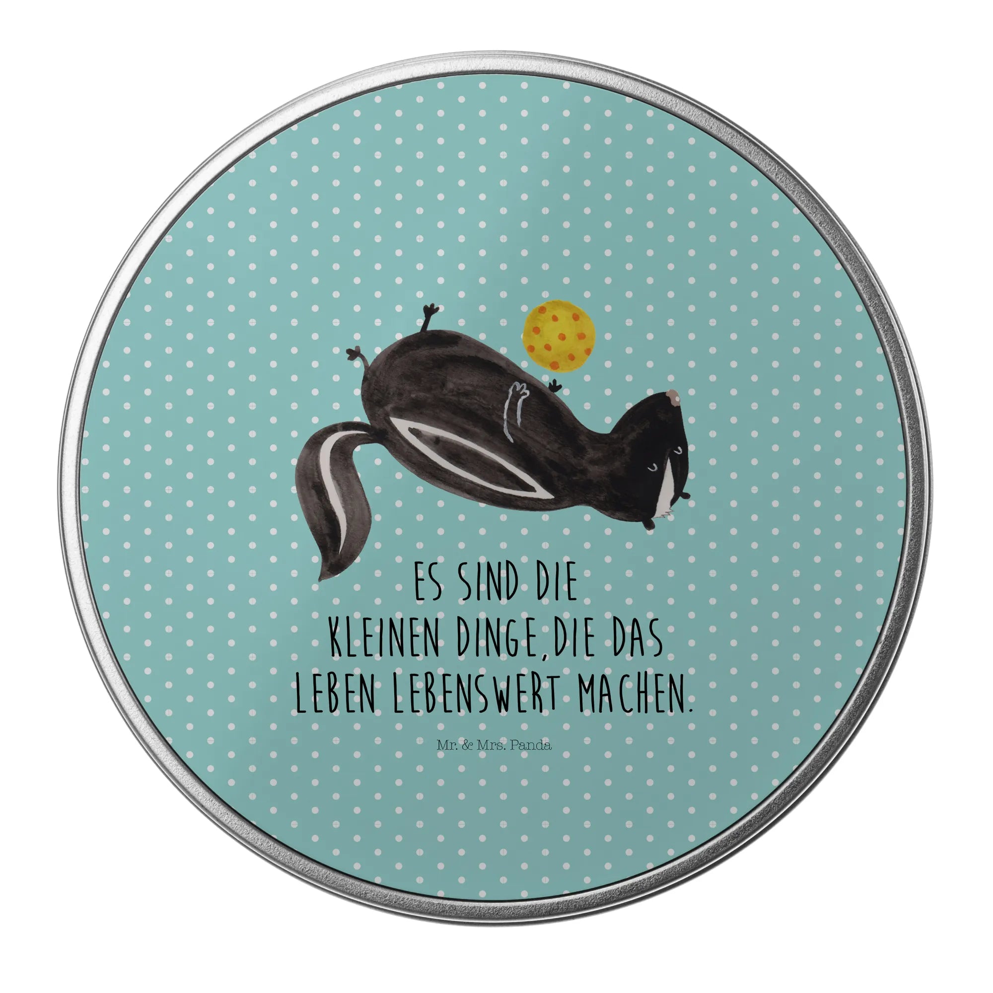 okrągła puszka z blachy skunks piłka - z napisem
