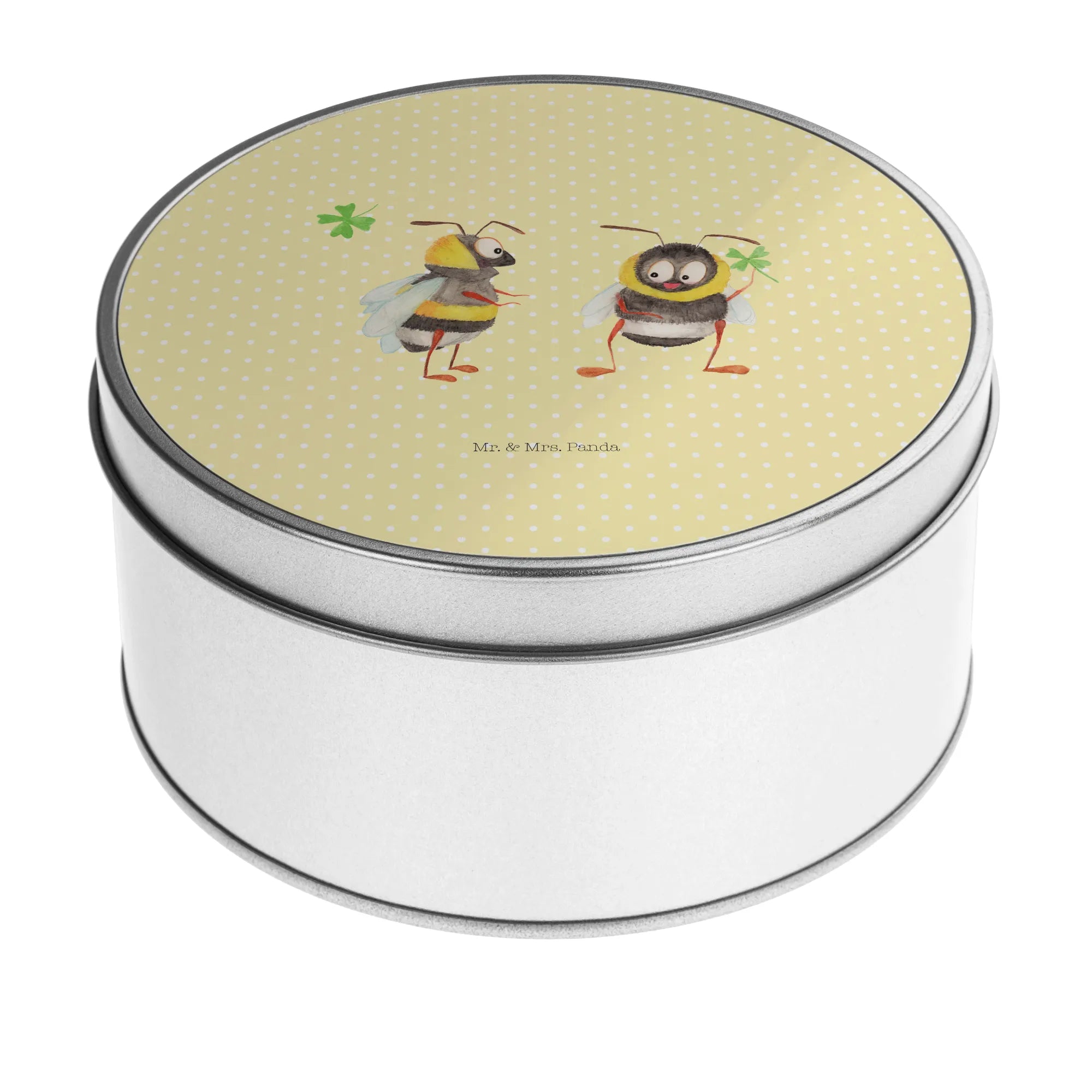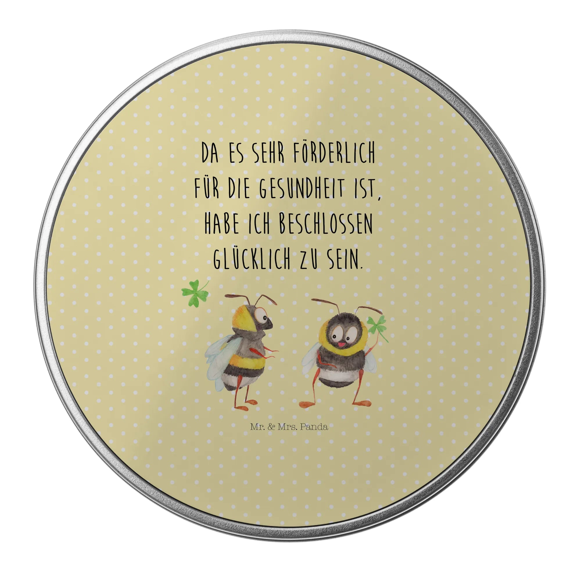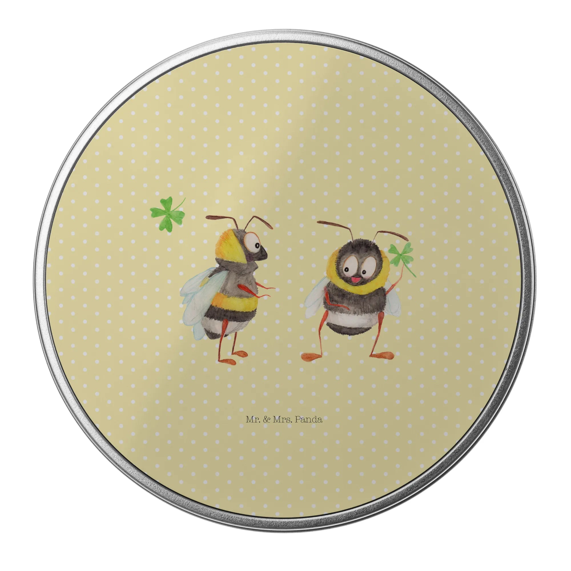 okrągła puszka z blachy Trzmiele koniczyna - z napisem