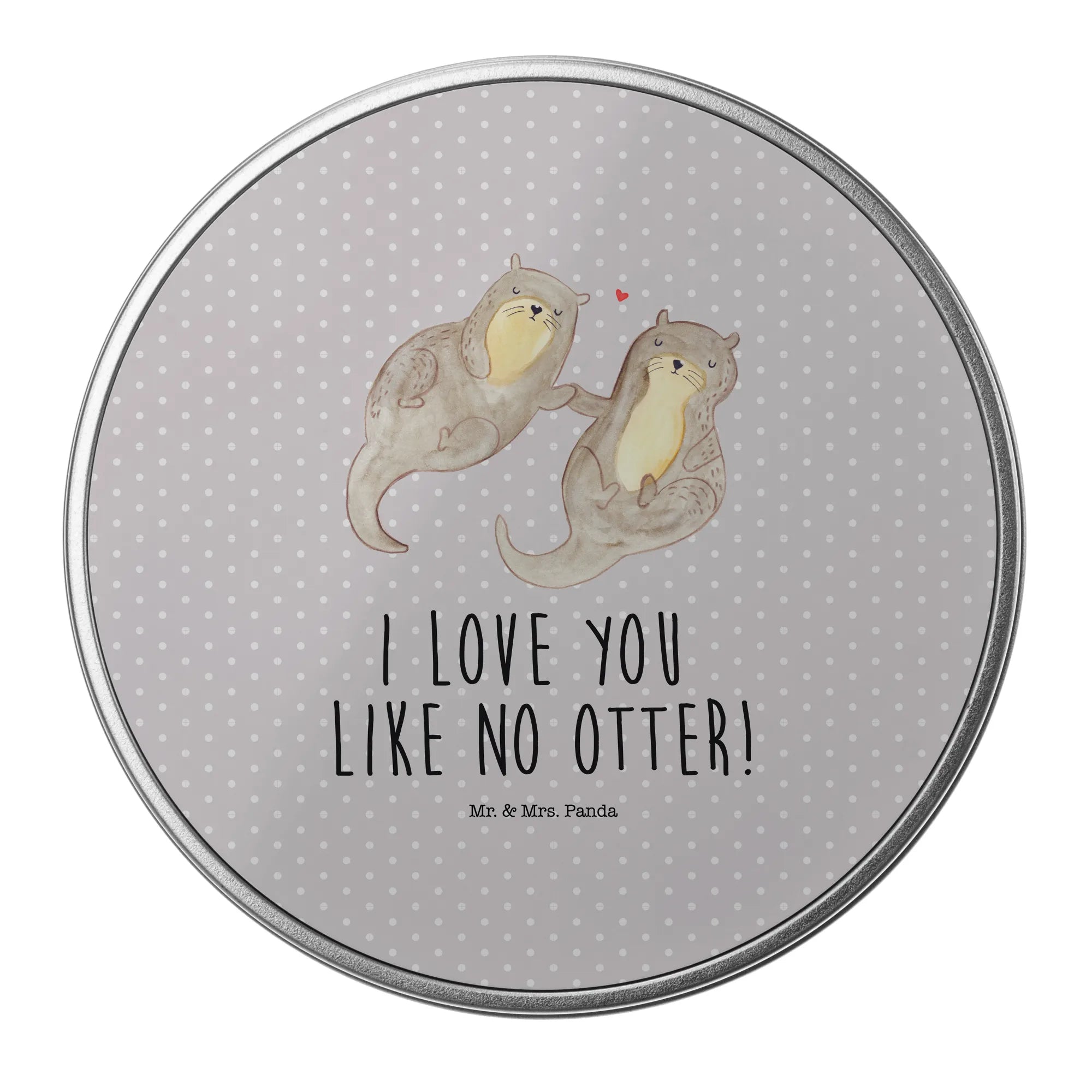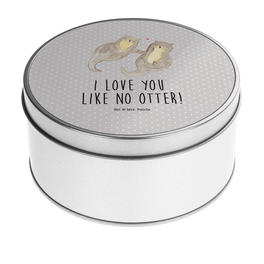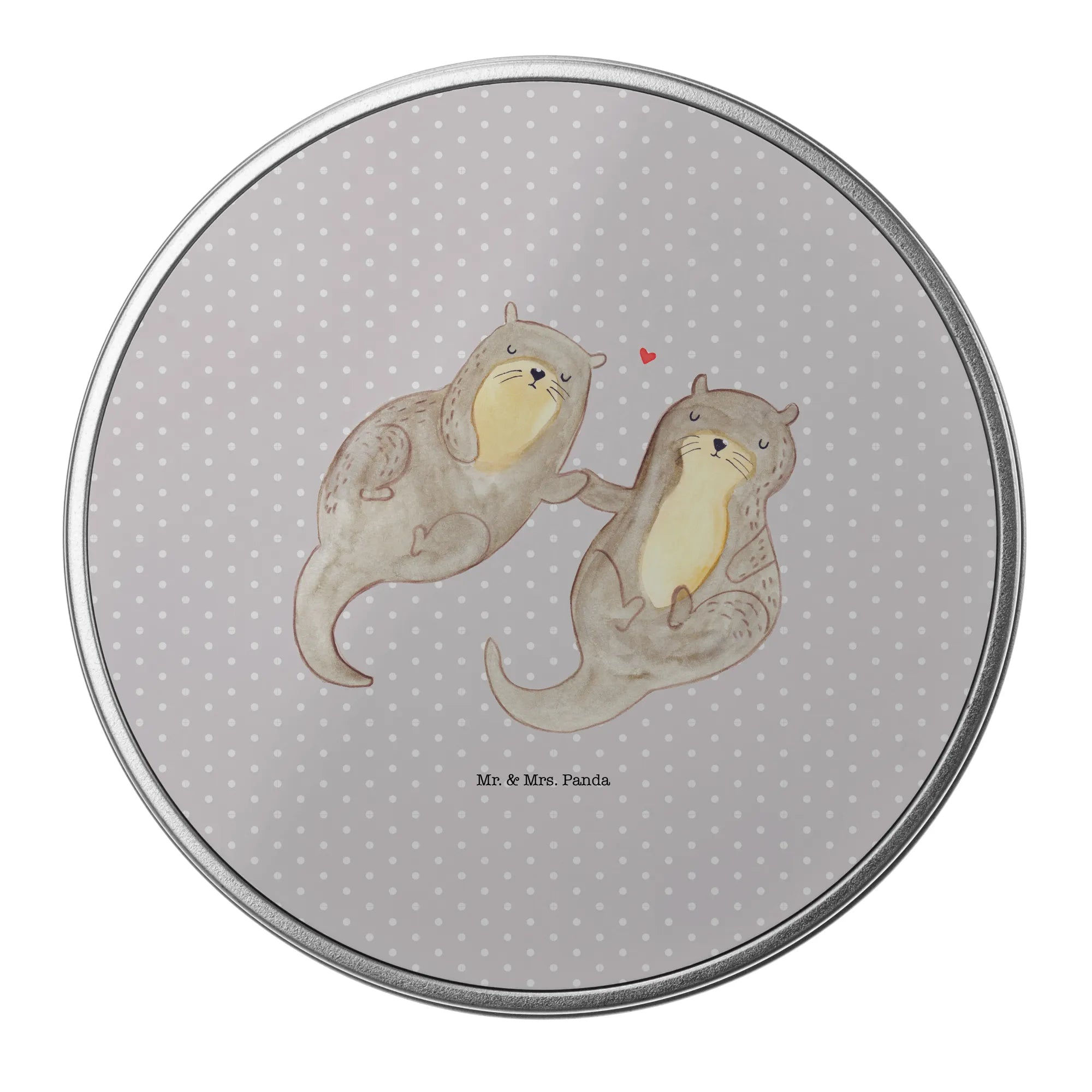 okrągła puszka z blachy wydra trzymać się za ręce - z napisem