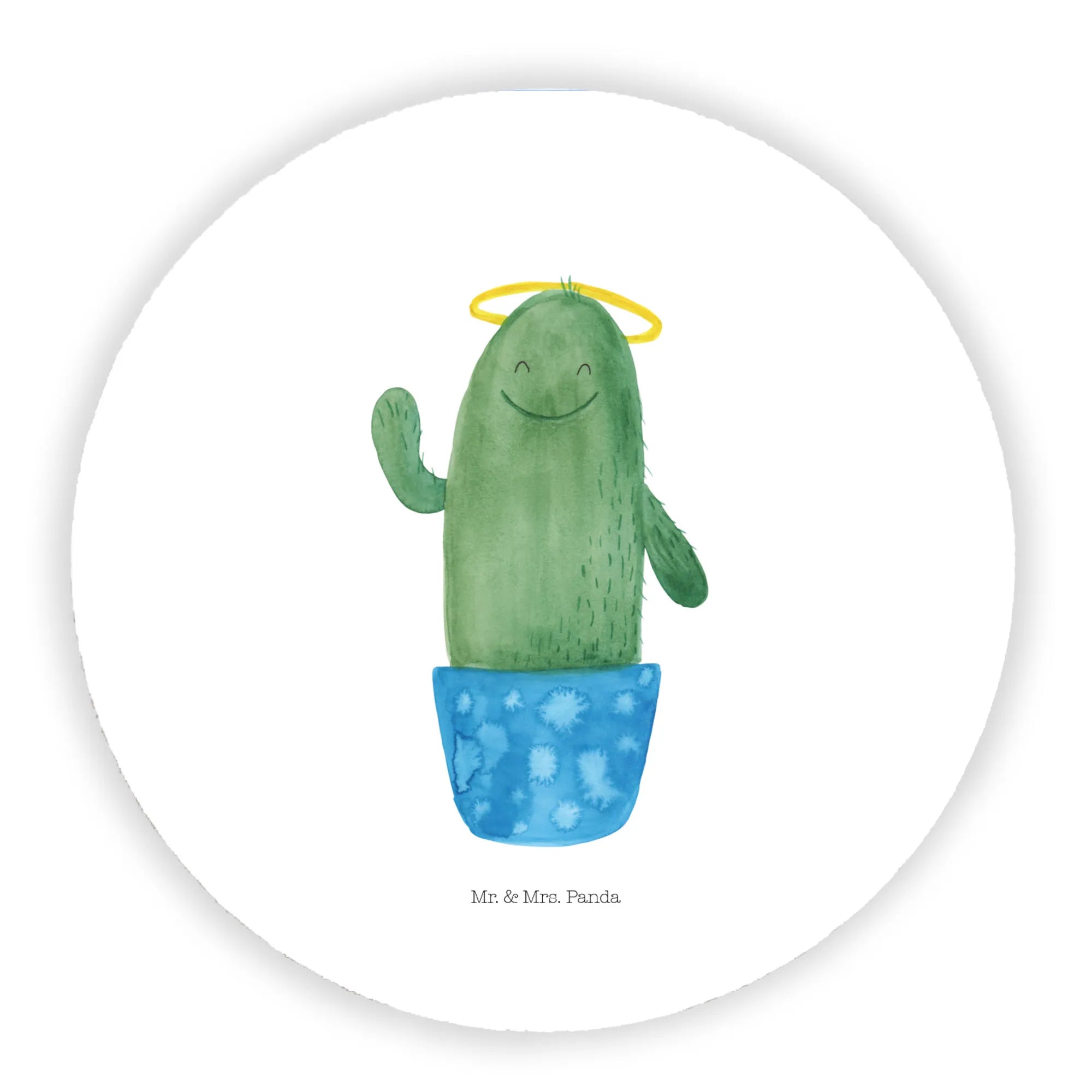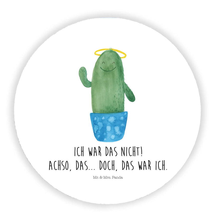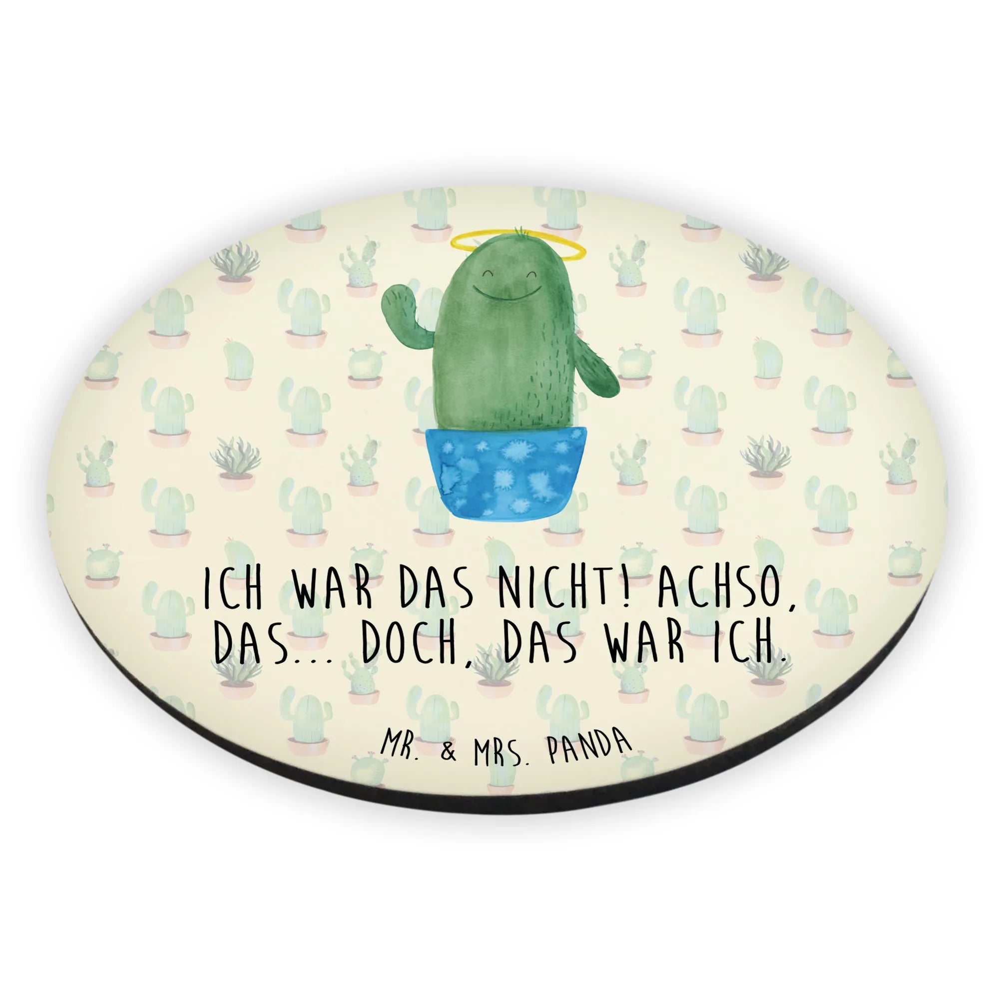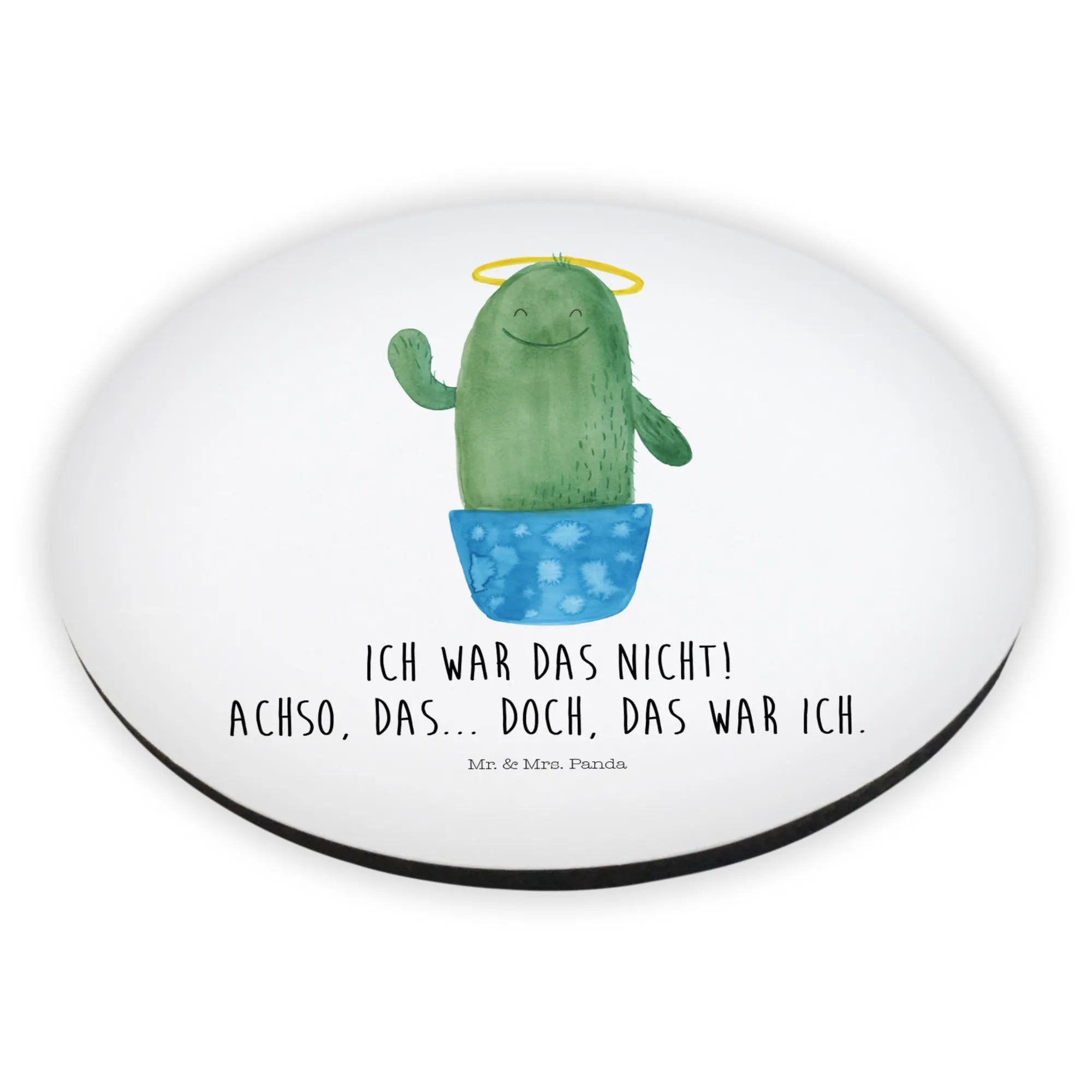 Okrągły magnes Kaktus Święty - z napisem - biały