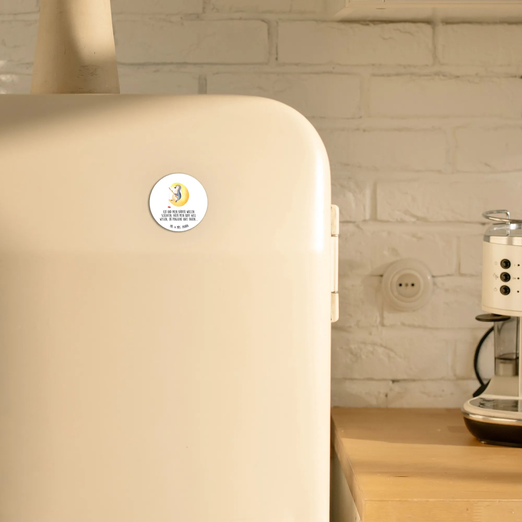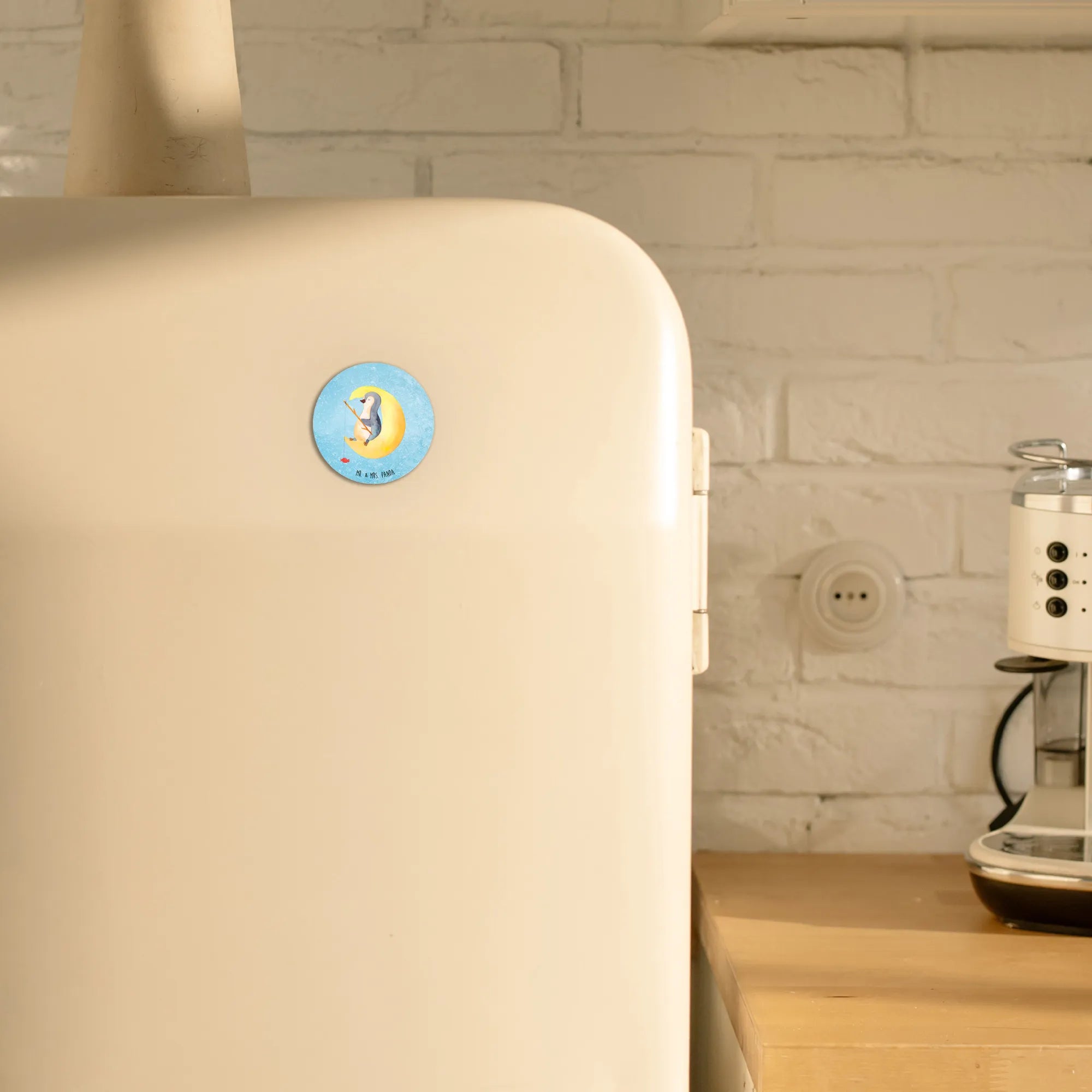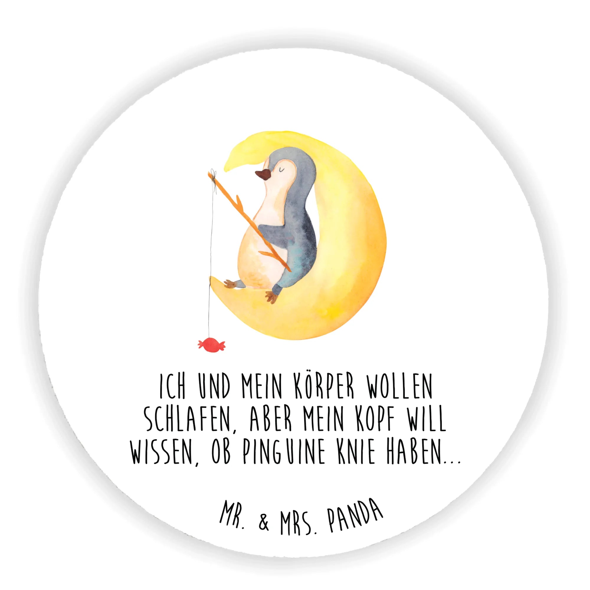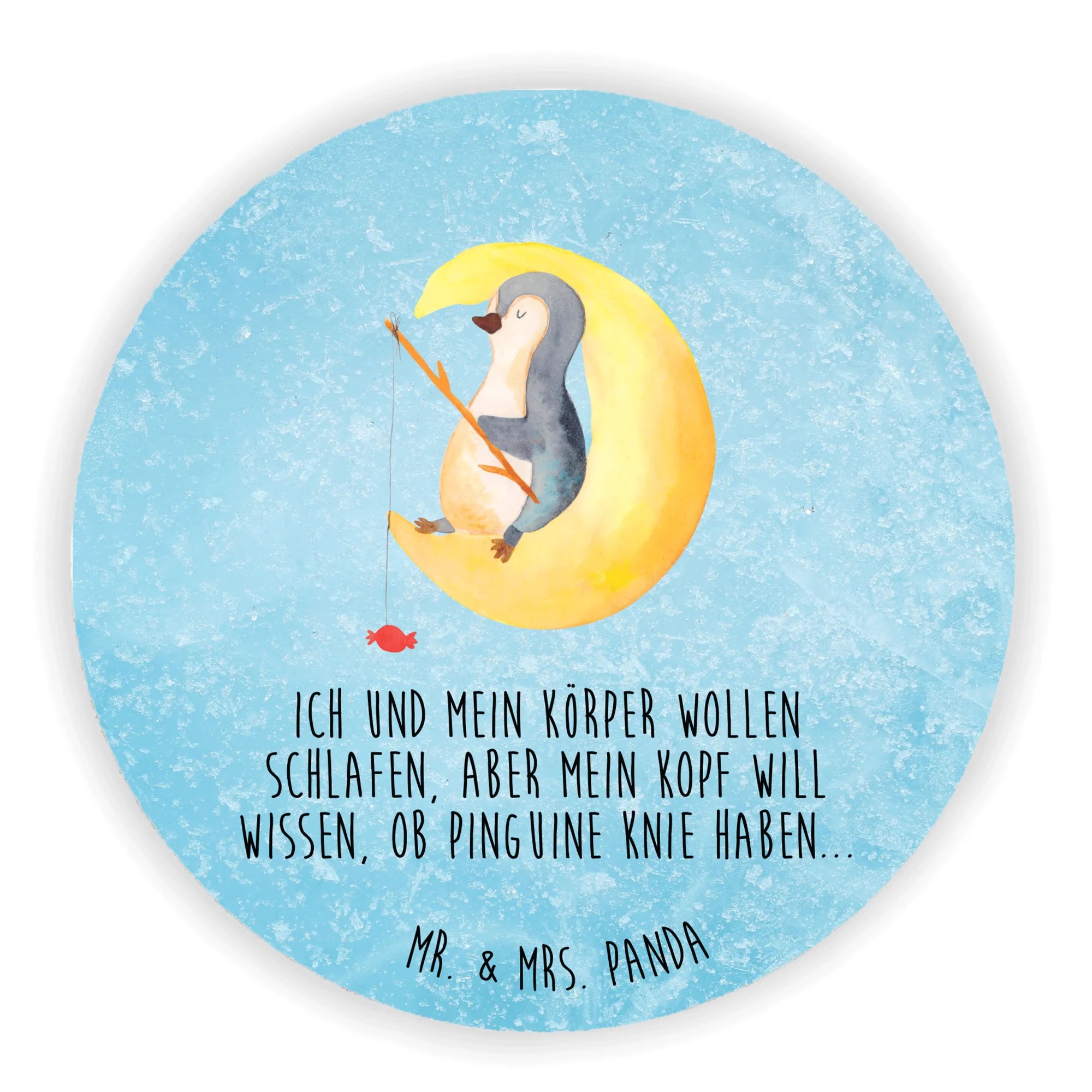 Okrągły magnes pingwin księżyc - z napisem - lodowoniebieski