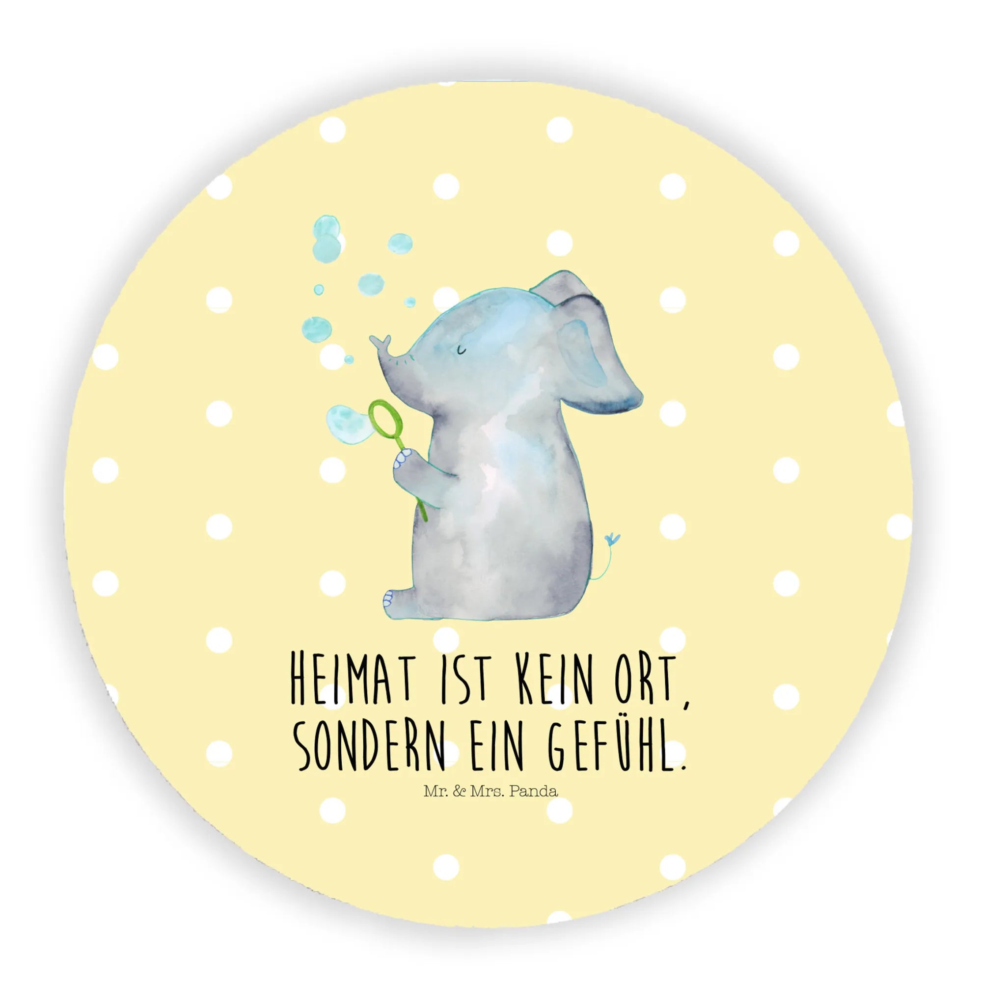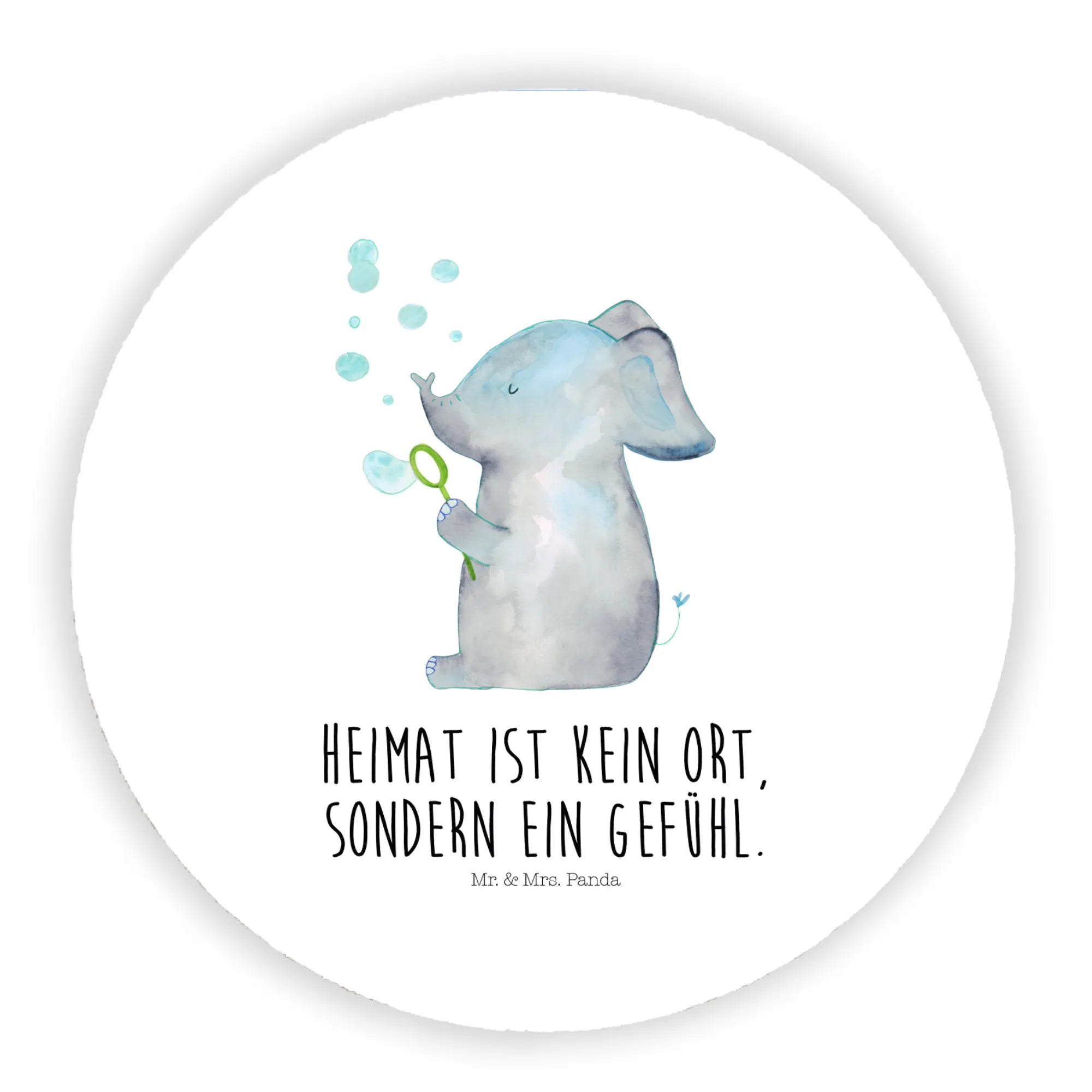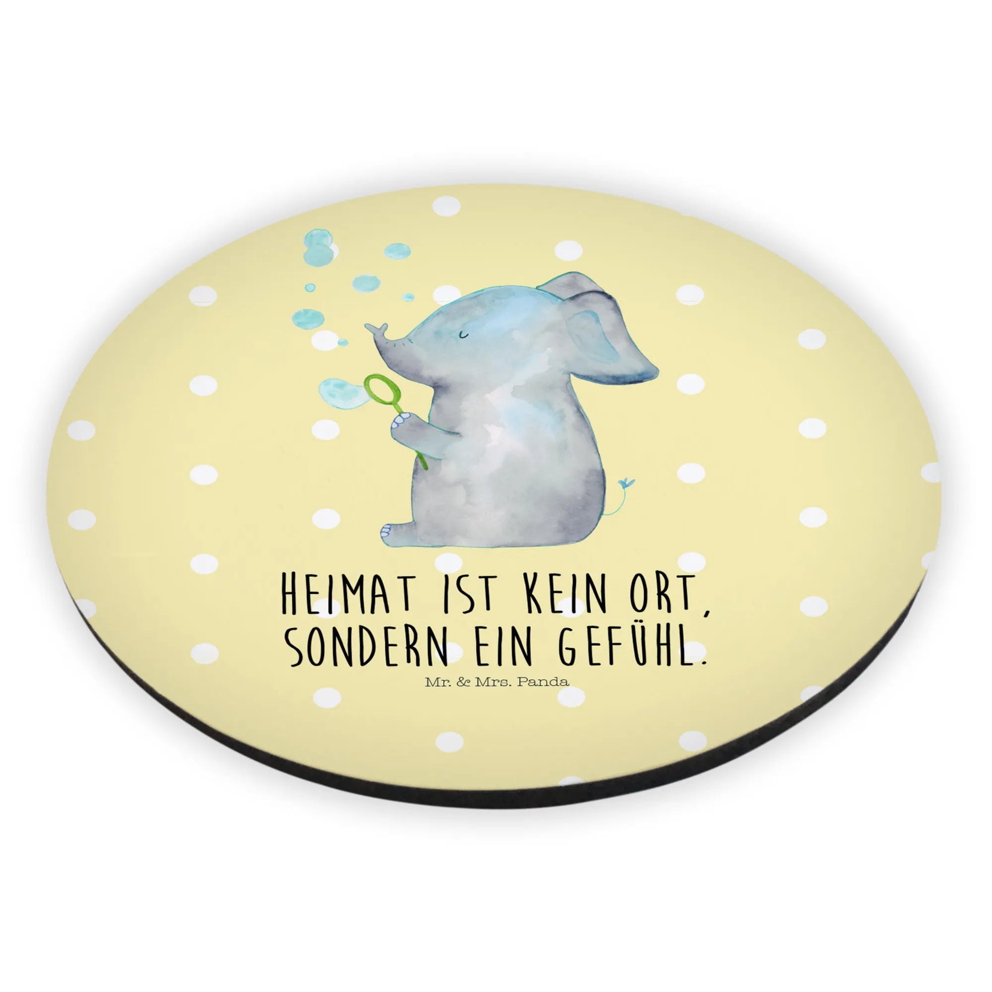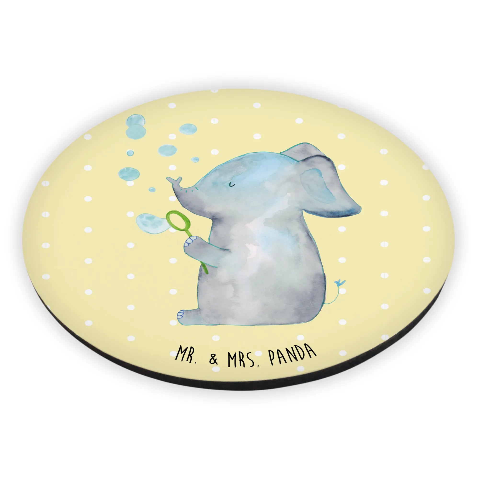 Okrągły magnes słoń bańki mydlane - z napisem - biały