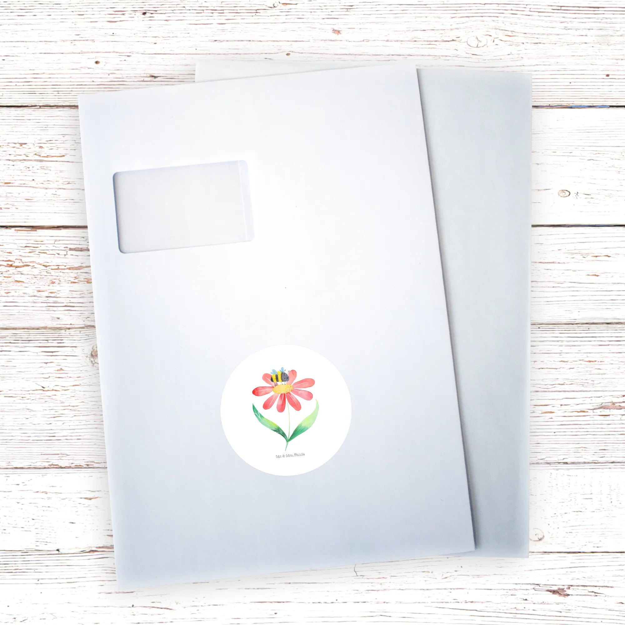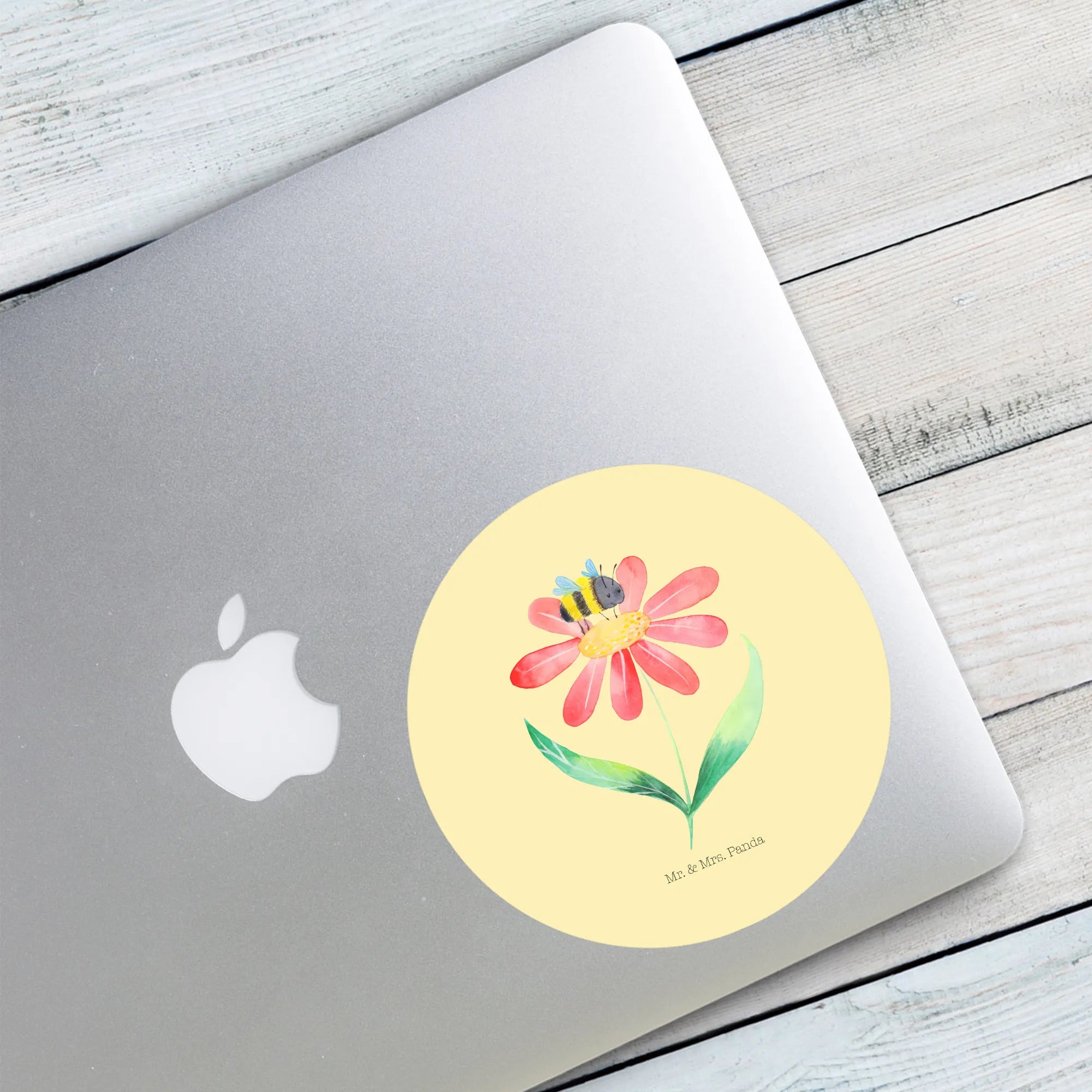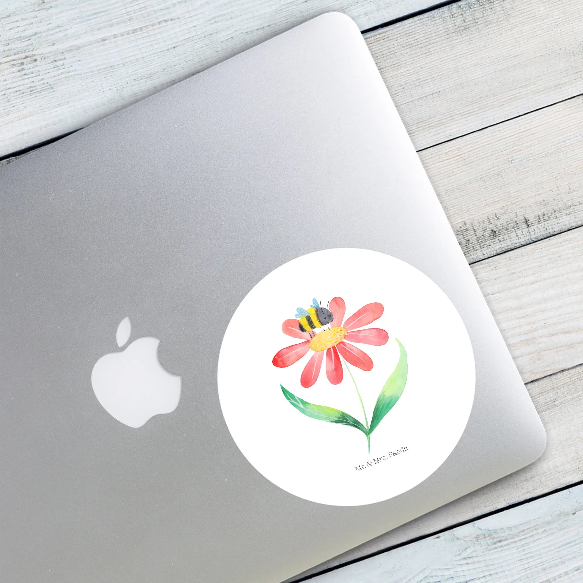120mm okrągła naklejka trzmiel kwiat - 120mm Rund Aufkleber - z napisem - Biały