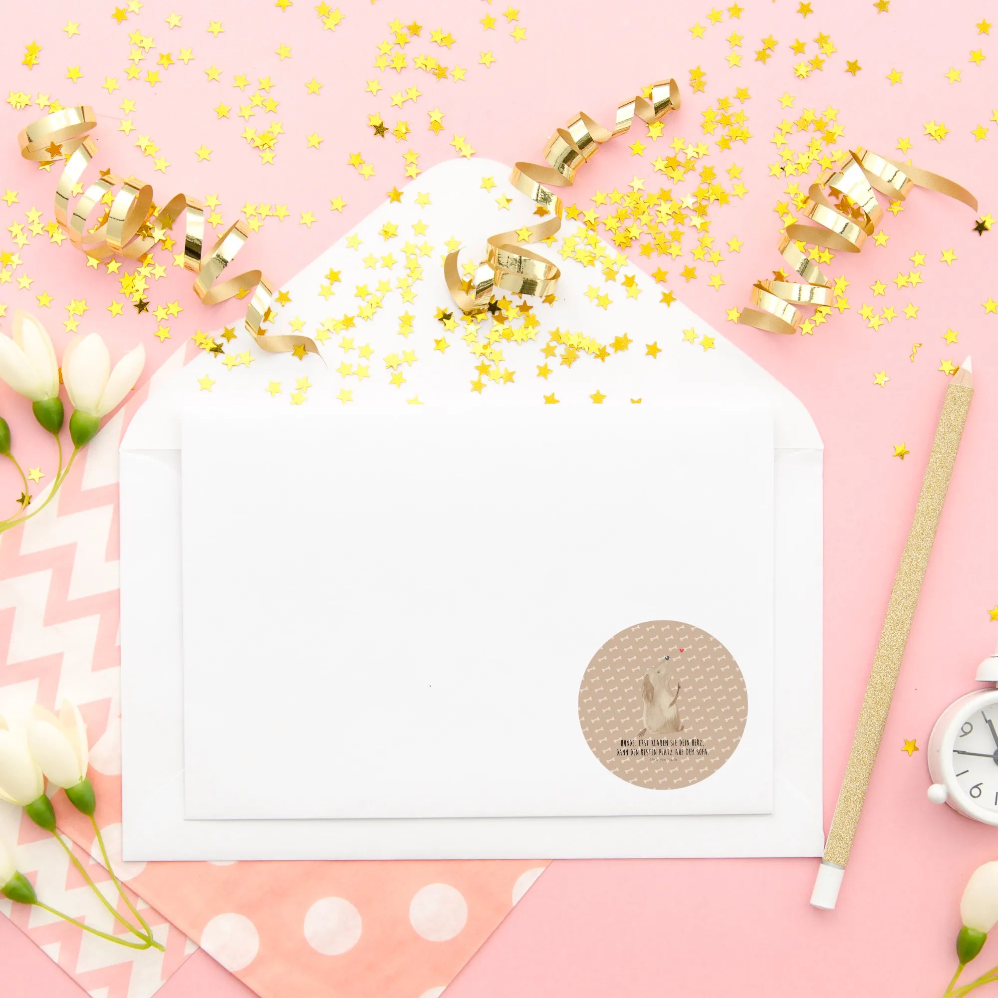 80mm okrągła naklejka Pies miłość - 80mm Rund Aufkleber - z napisem - Hundeglück