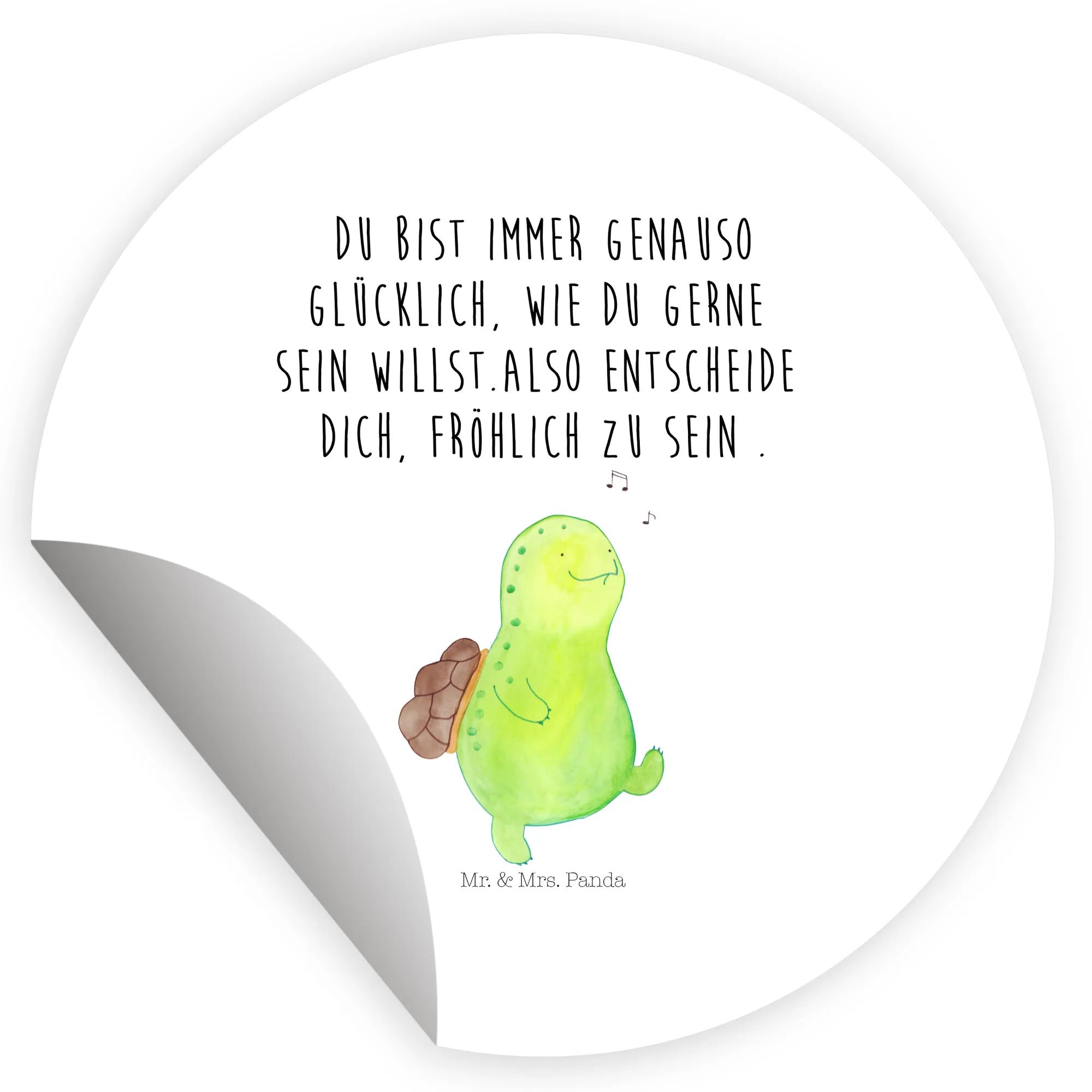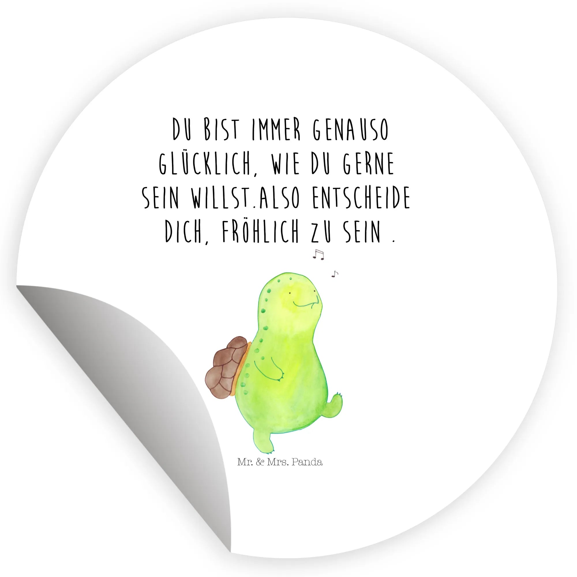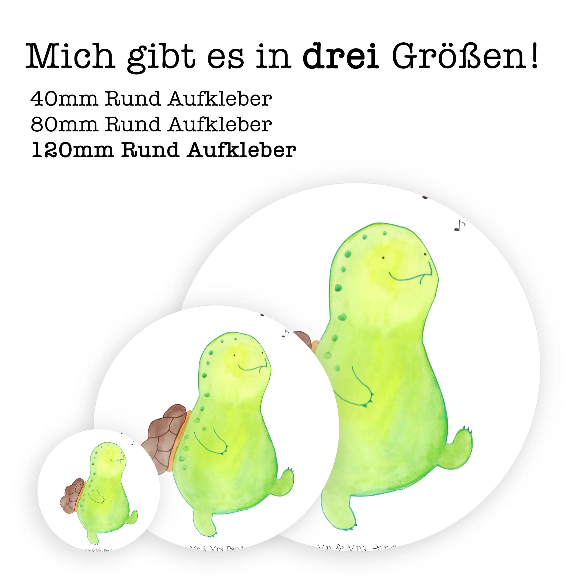 80mm okrągła naklejka żółw gwizdać - 80mm Rund Aufkleber - z napisem - biały