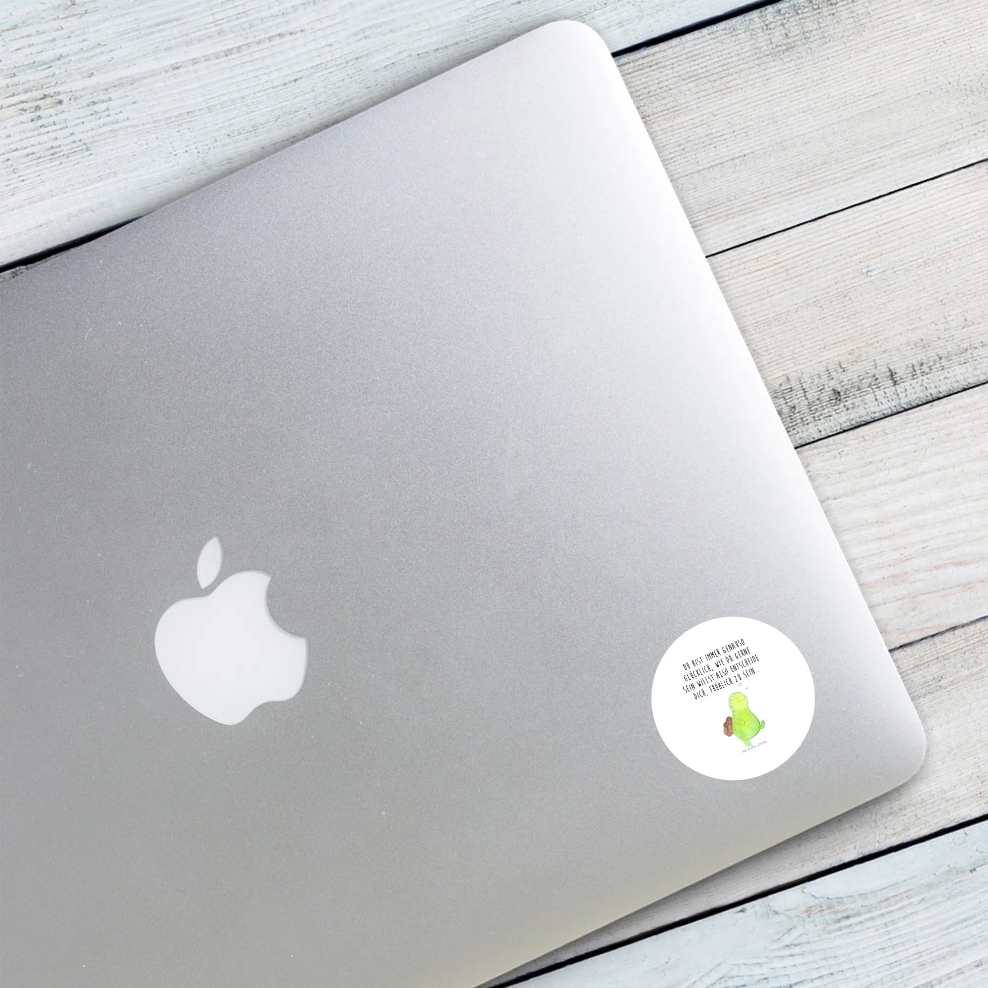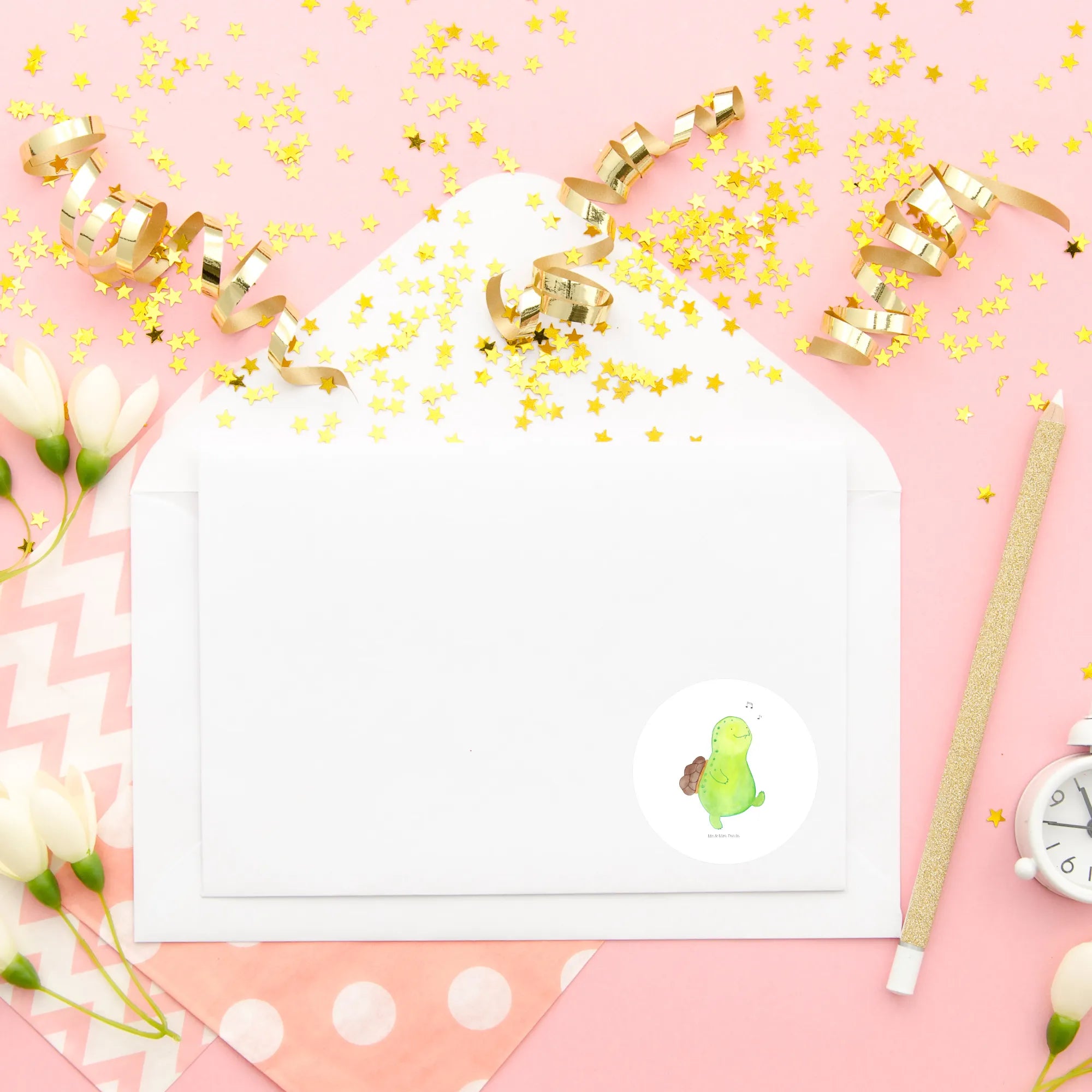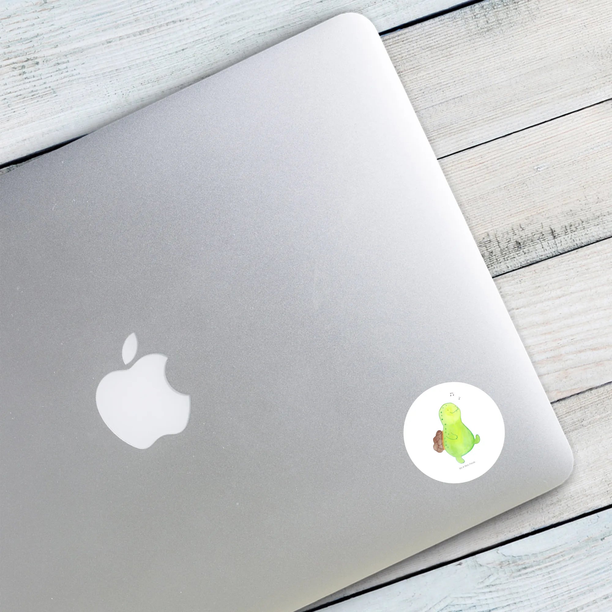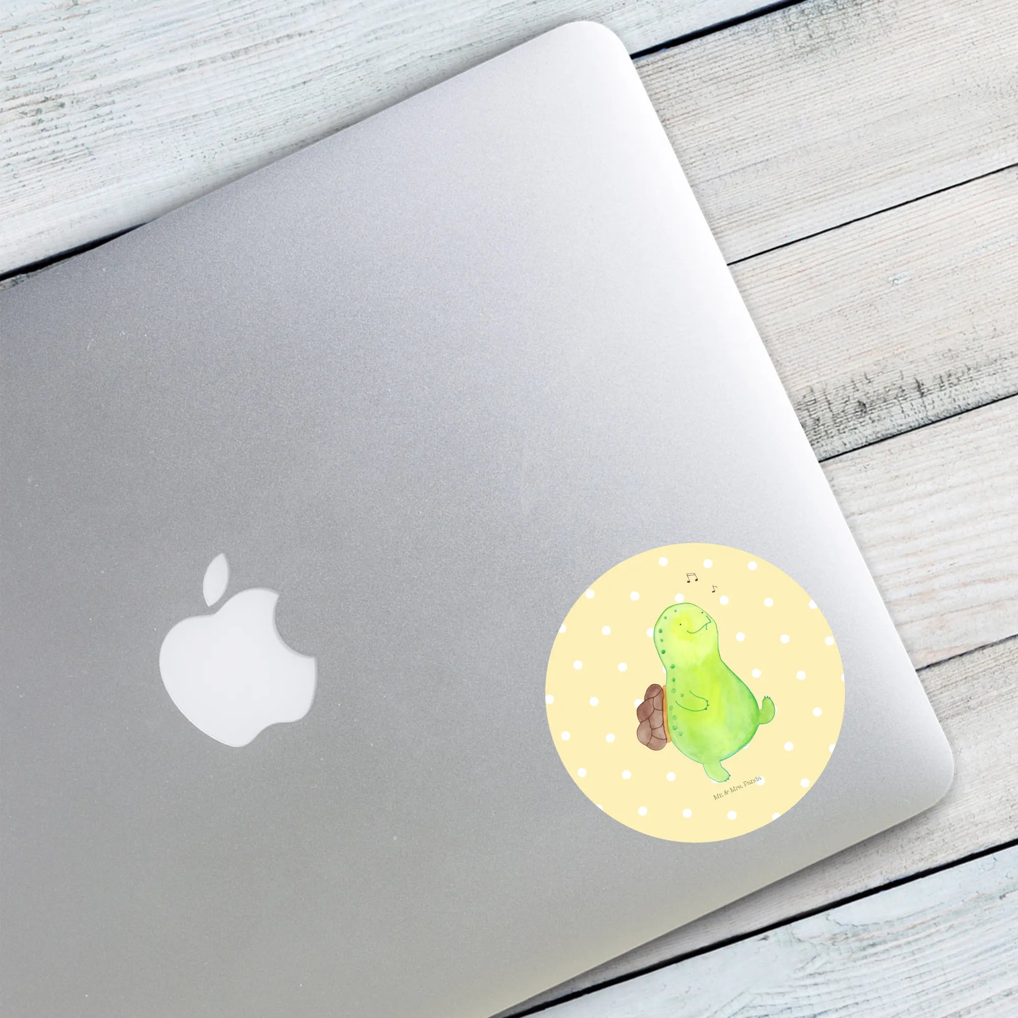 80mm okrągła naklejka żółw gwizdać - 80mm Rund Aufkleber - z napisem - biały