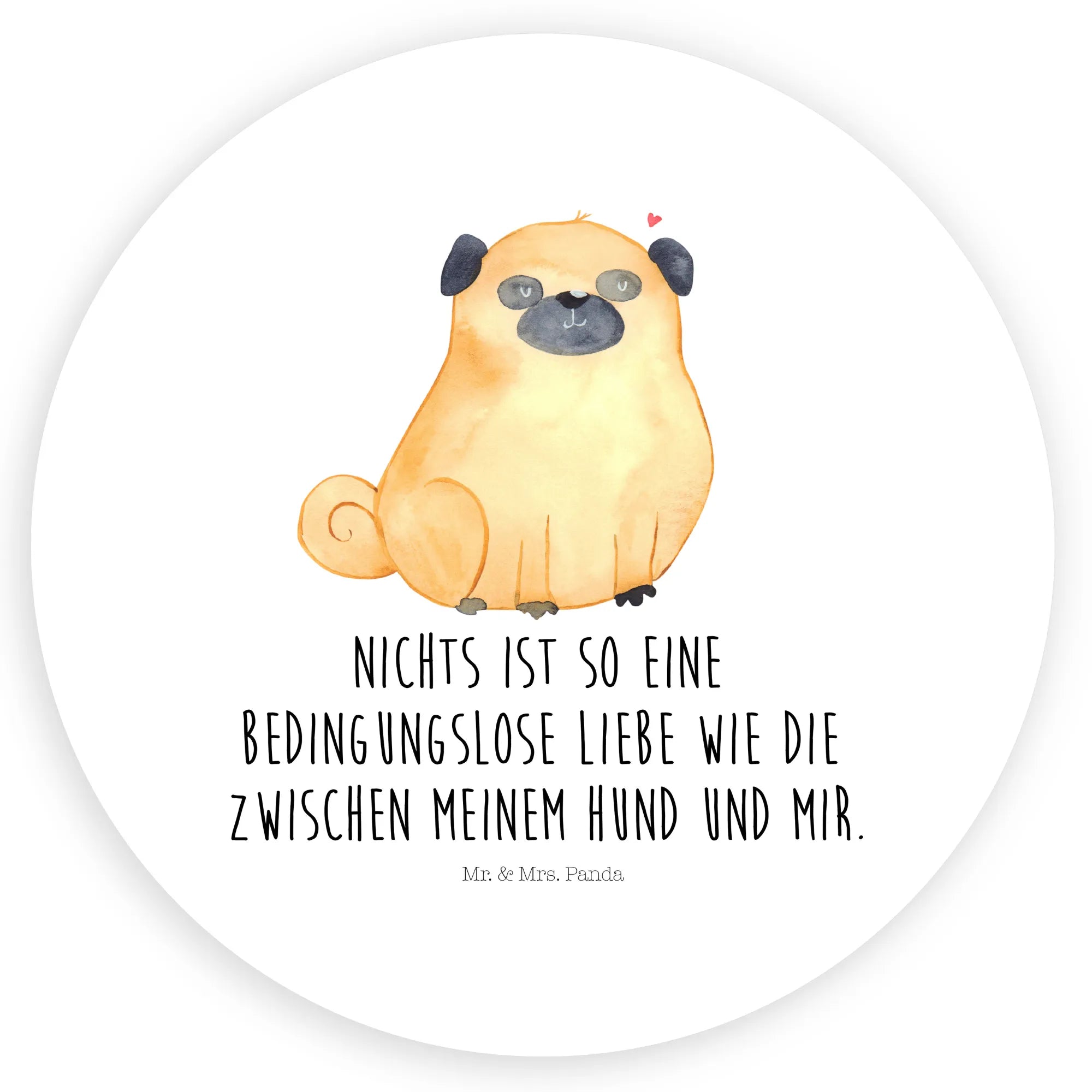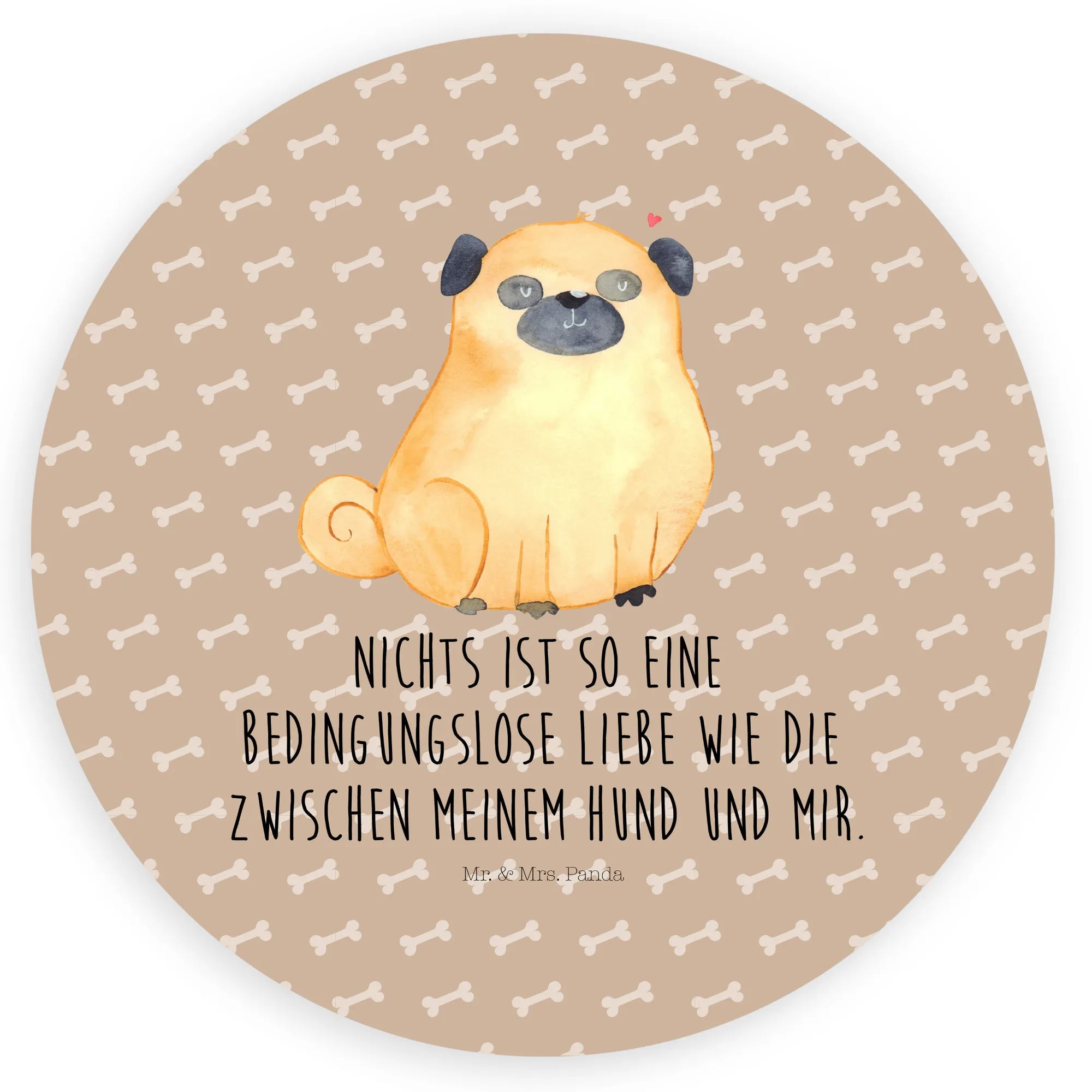 120mm okrągła naklejka Mops - 40mm okrągła naklejka - z napisem - Hundeglück