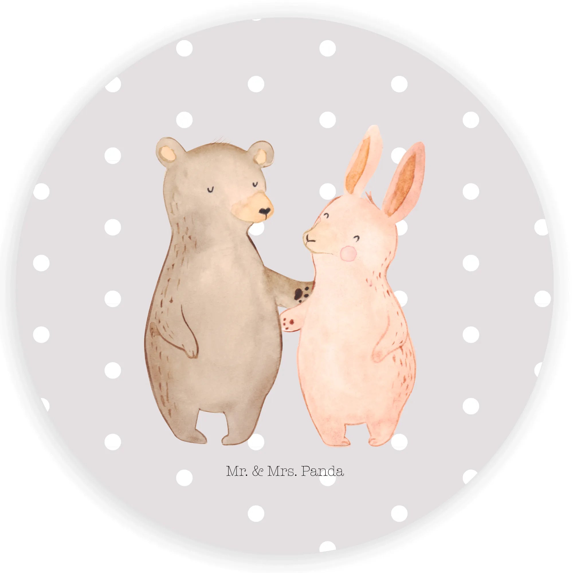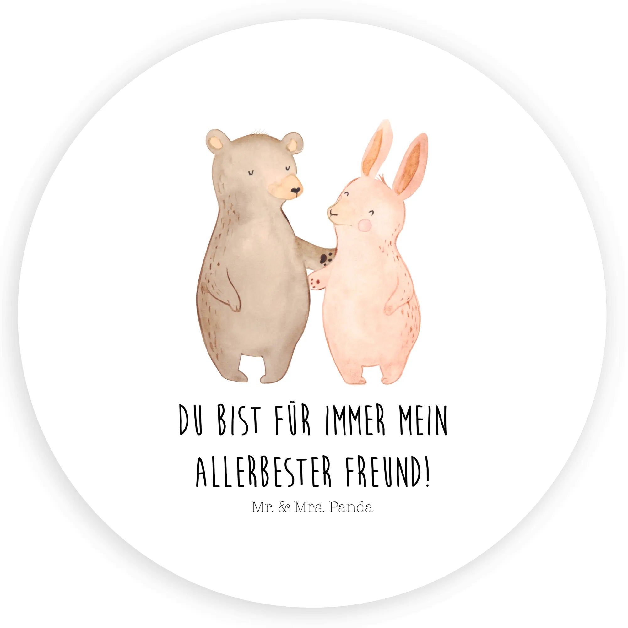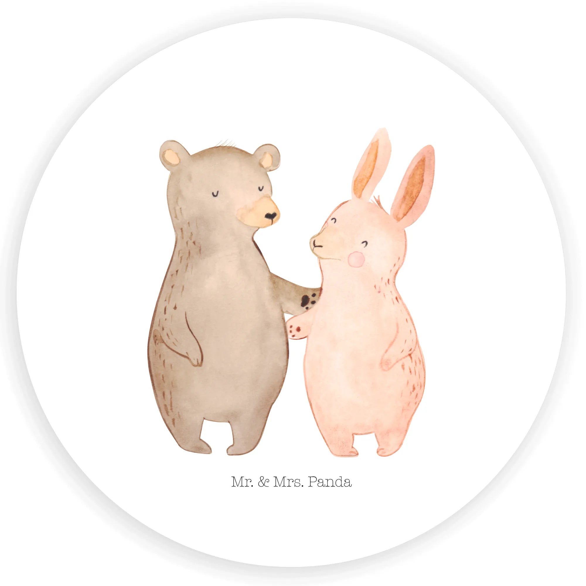 120mm okrągła naklejka Niedźwiedź i królik Przytulać - 80mm okrągła naklejka - z napisem - Biały