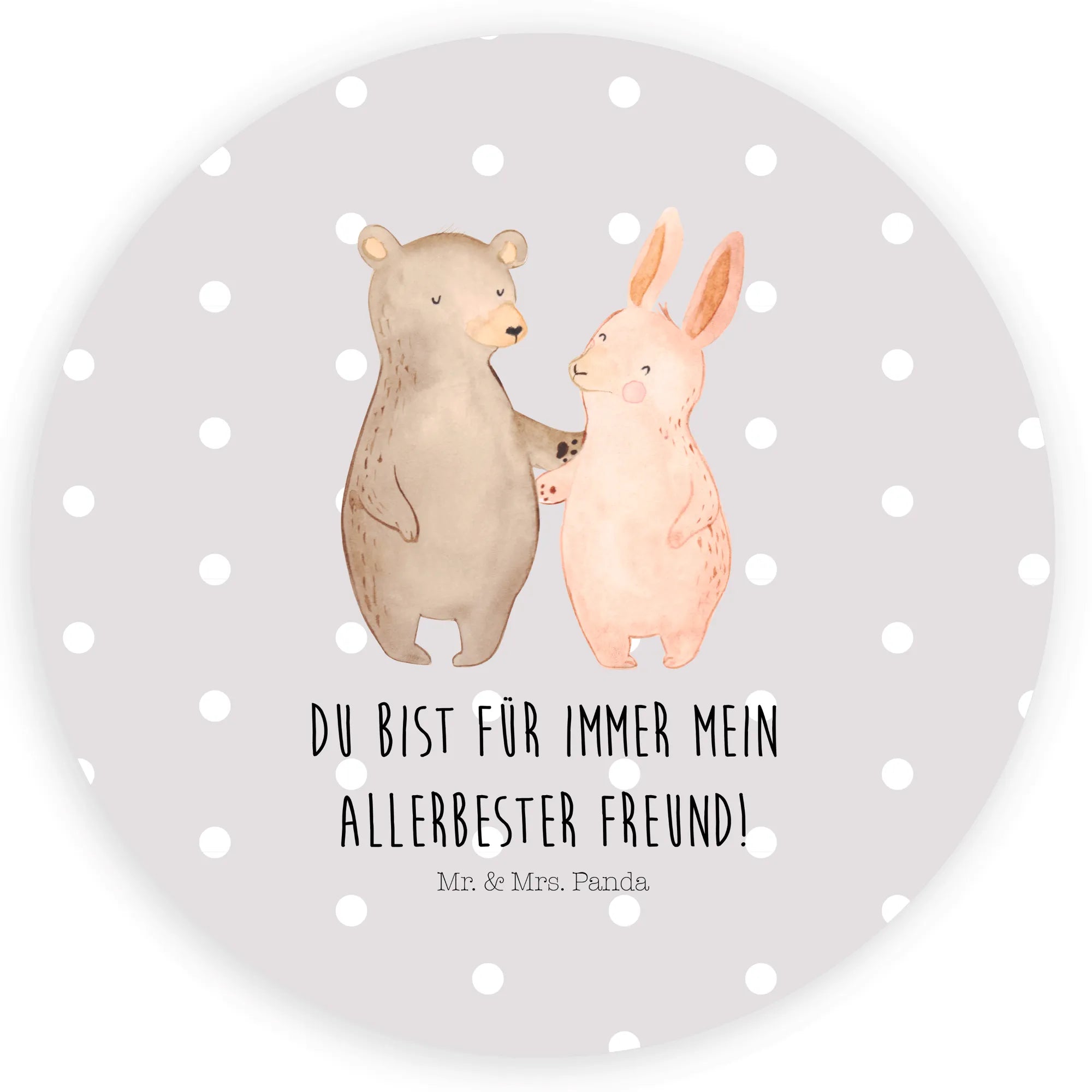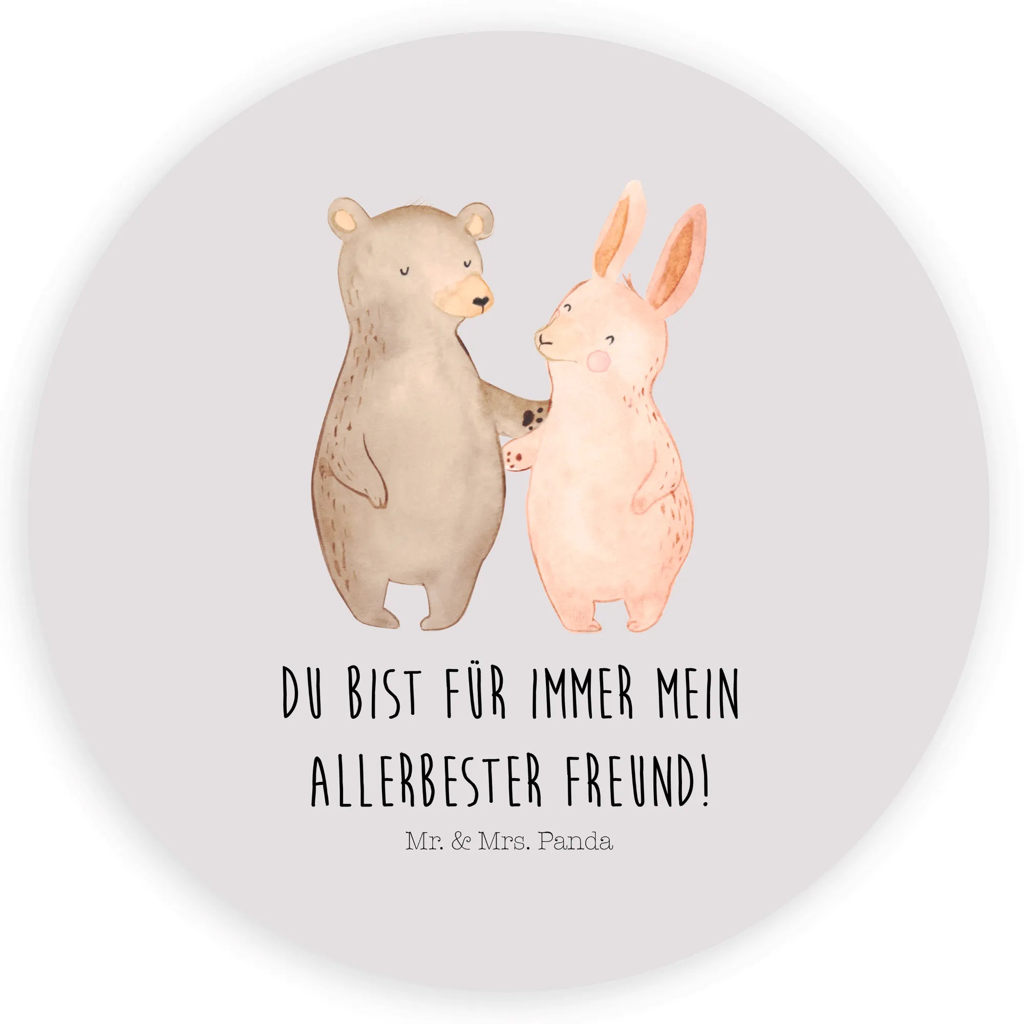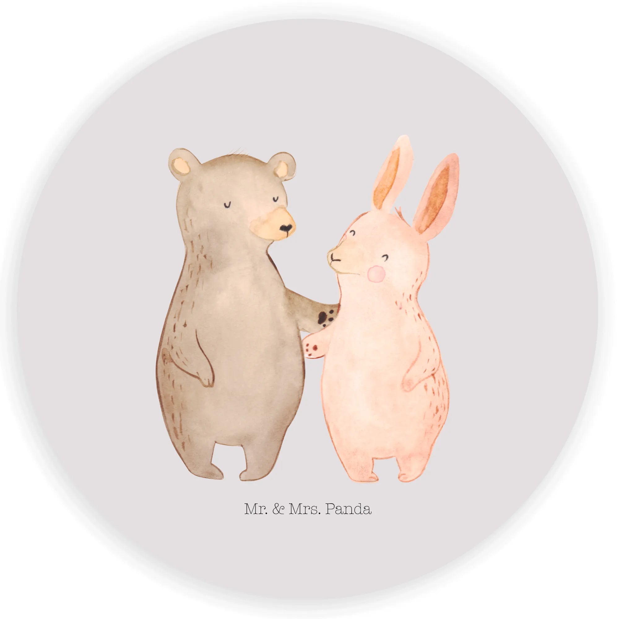 120mm okrągła naklejka Niedźwiedź i królik Przytulać - 80mm okrągła naklejka - z napisem - Biały