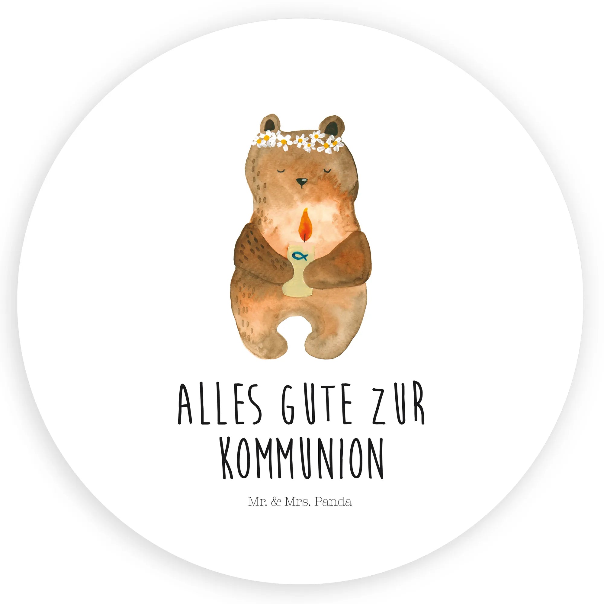 120mm okrągła naklejka Niedźwiedź Komunia - 80mm okrągła naklejka - z napisem